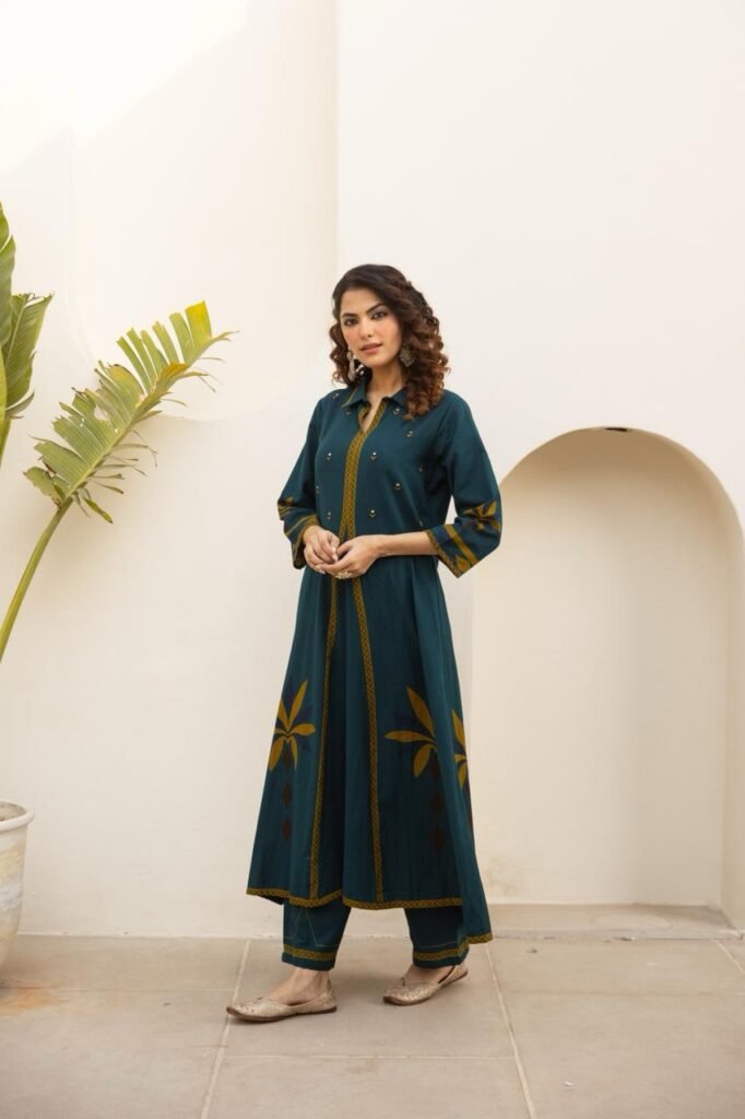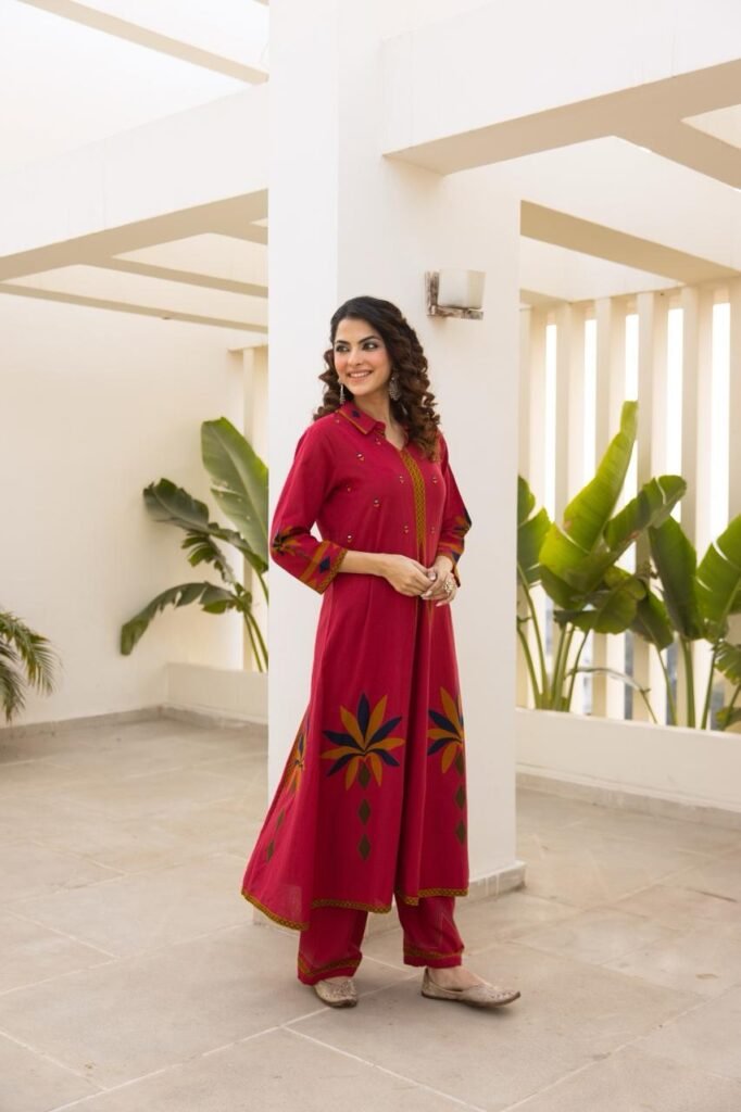 A-Line Cotton 2PC Set with Embroidered Panel