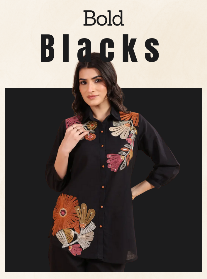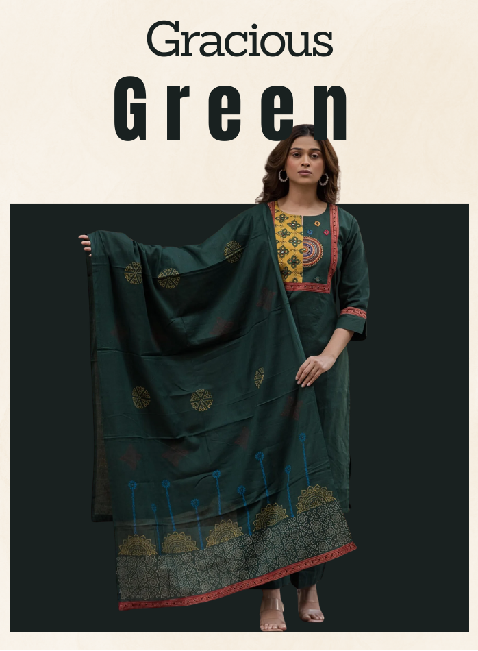 Cotton 2PC Set with Embroidered Yoke, Ajrakh Patch Pockets & Threadwork Detailing