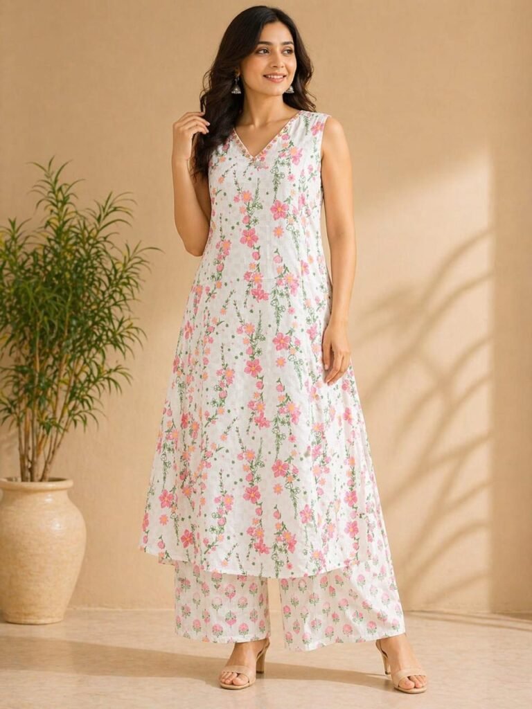 🎀 A-Line Cotton 2PC Set with Embroidered Kurta & Palazzo
