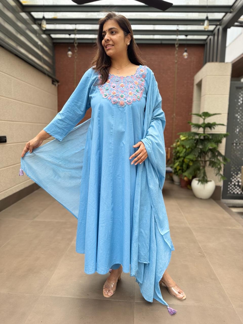 The AK-002 14 Kali Anarkali 3PC Set is a graceful ethnic outfit designed to reflect traditional elegance with modern comfort. Crafted from high-quality cotton fabric, the ensemble offers breathability and a comfortable fit.