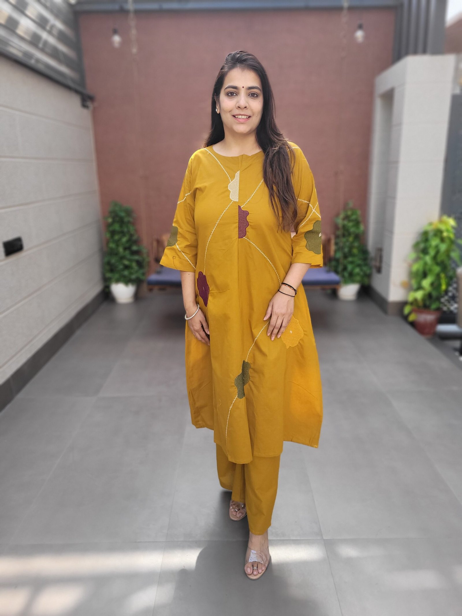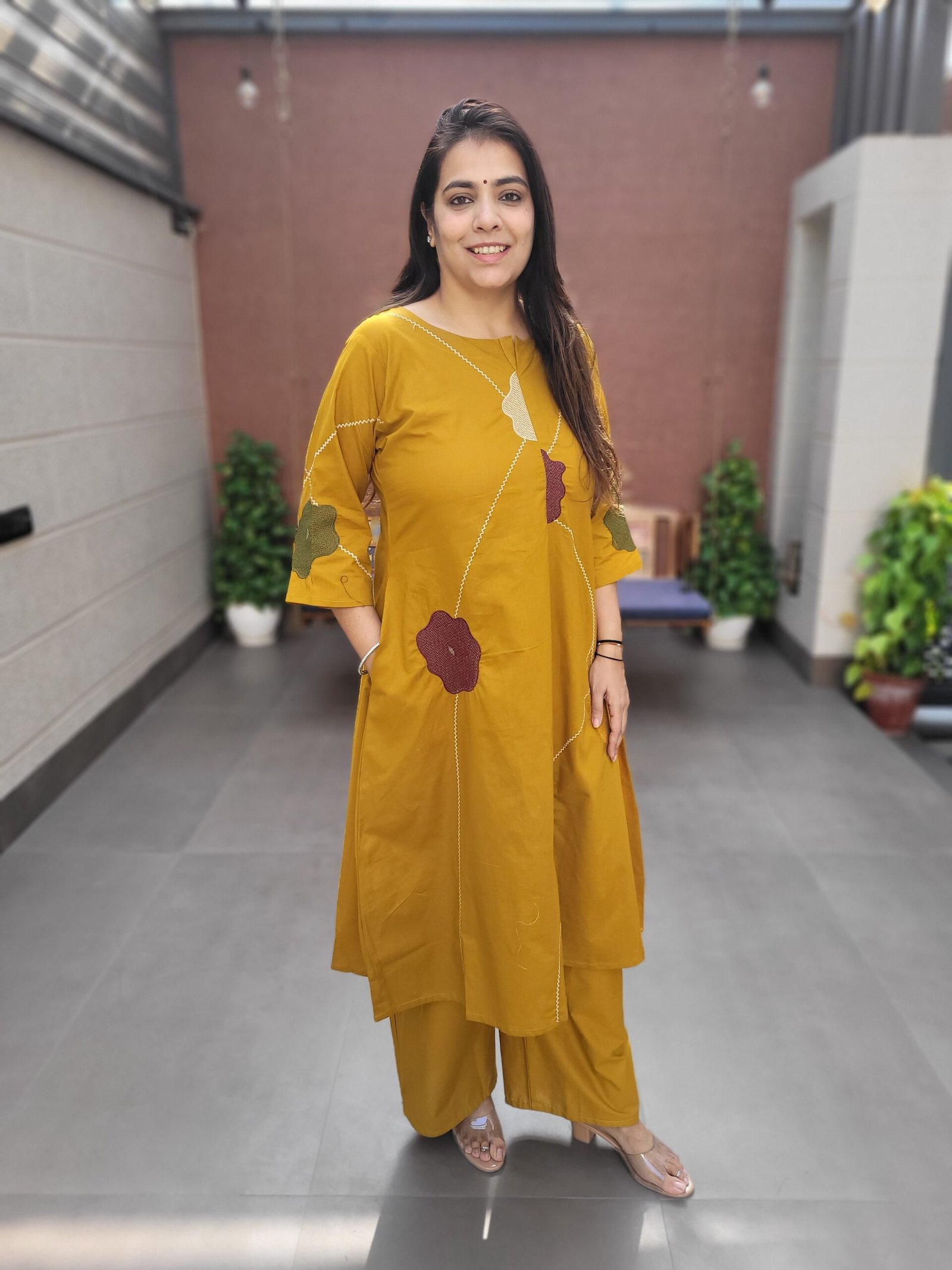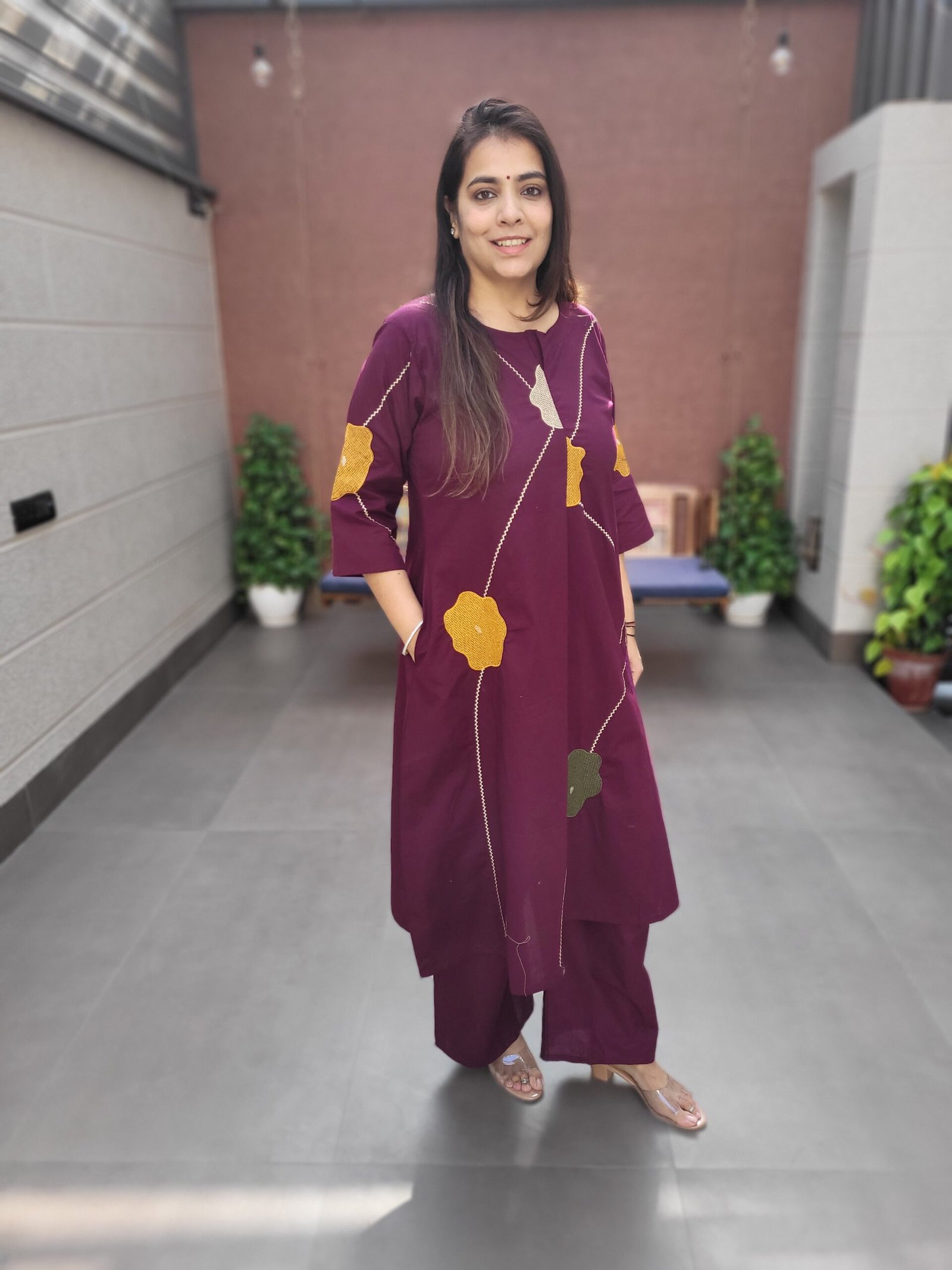 The kurta features a beautifully embroidered panel, adding visual interest and elegance, while the single pocket adds practicality. Designed for everyday versatility, this set is perfect for workwear, casual outings, and relaxed ethnic styling.