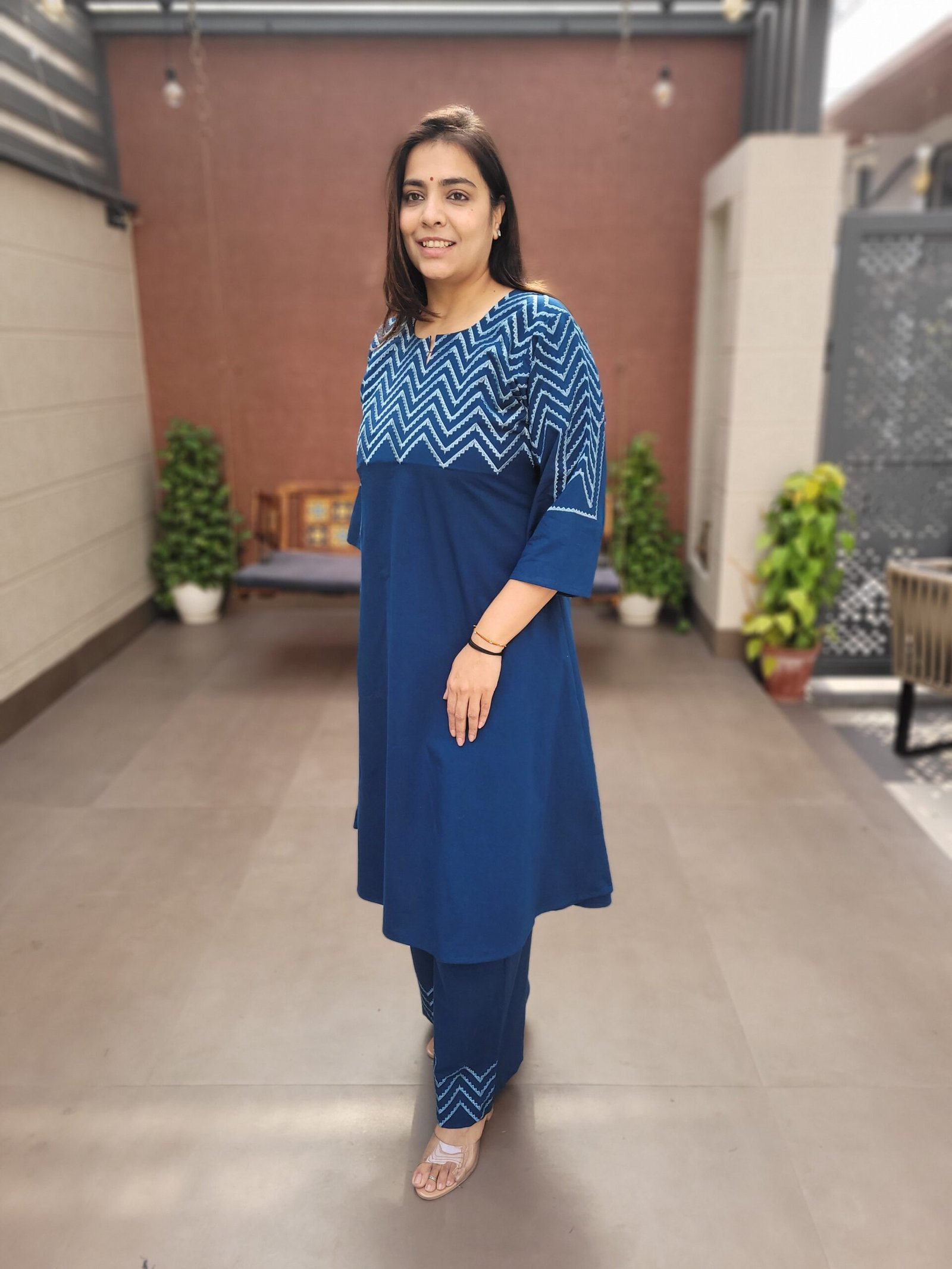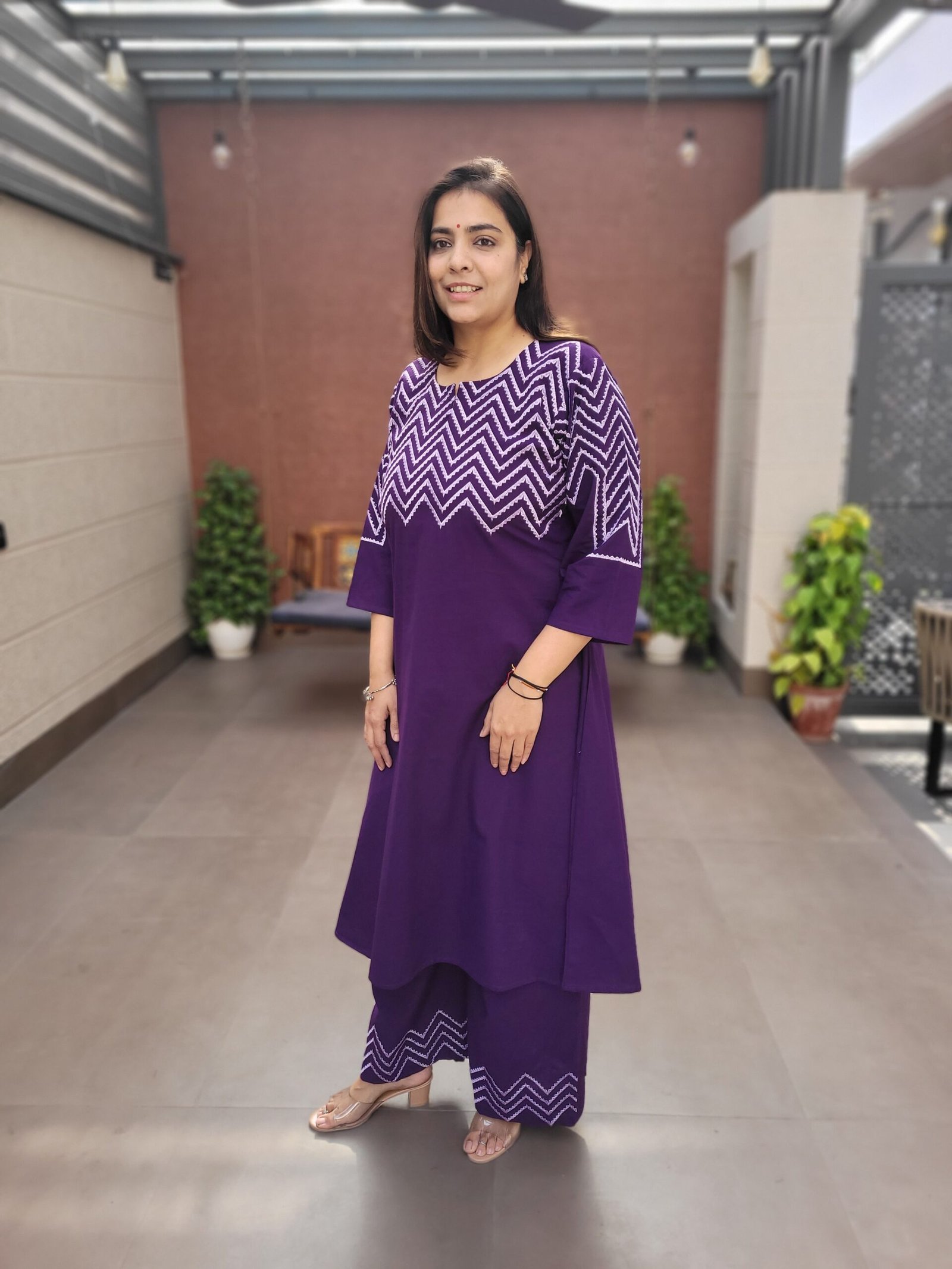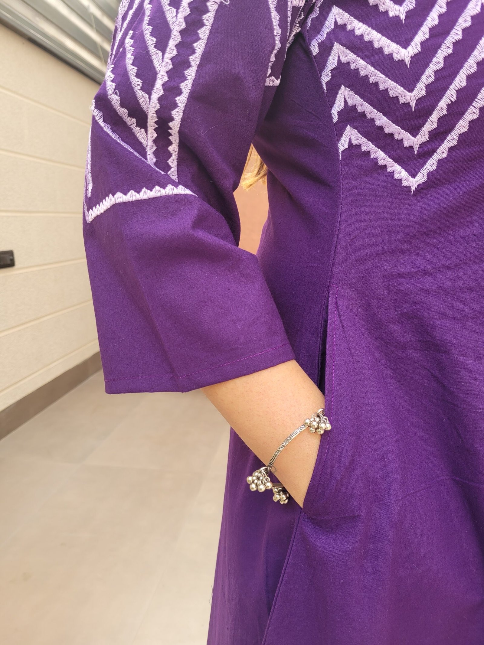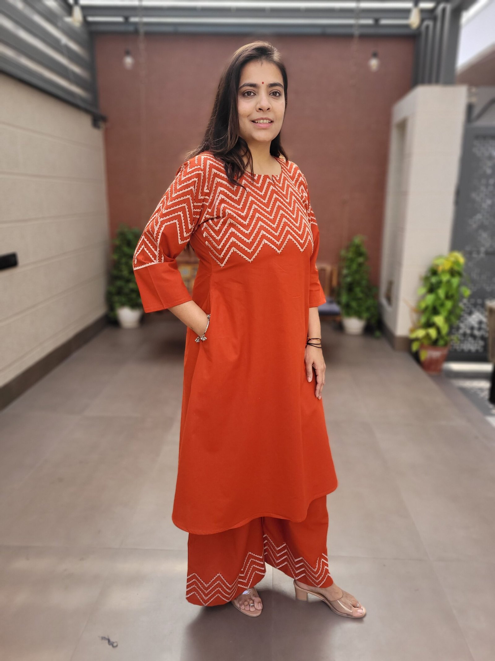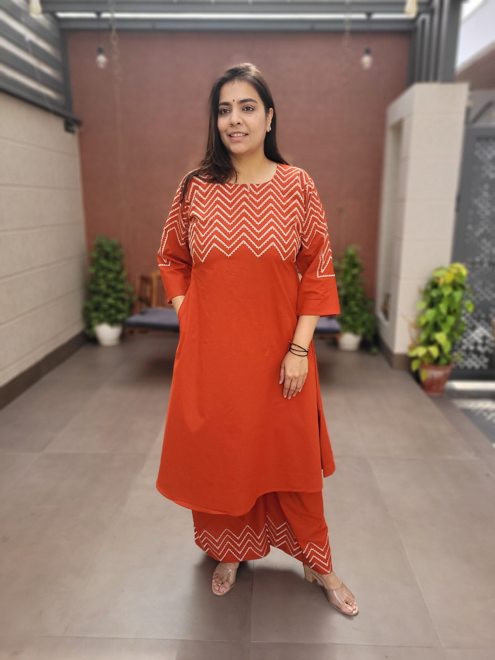 The kurta features a beautifully embroidered panel and a functional pocket, paired with an embroidered palazzo that enhances the coordinated ethnic look. Its A-line silhouette ensures a flattering fit, making it ideal for daily wear, office styling, and casual occasions.