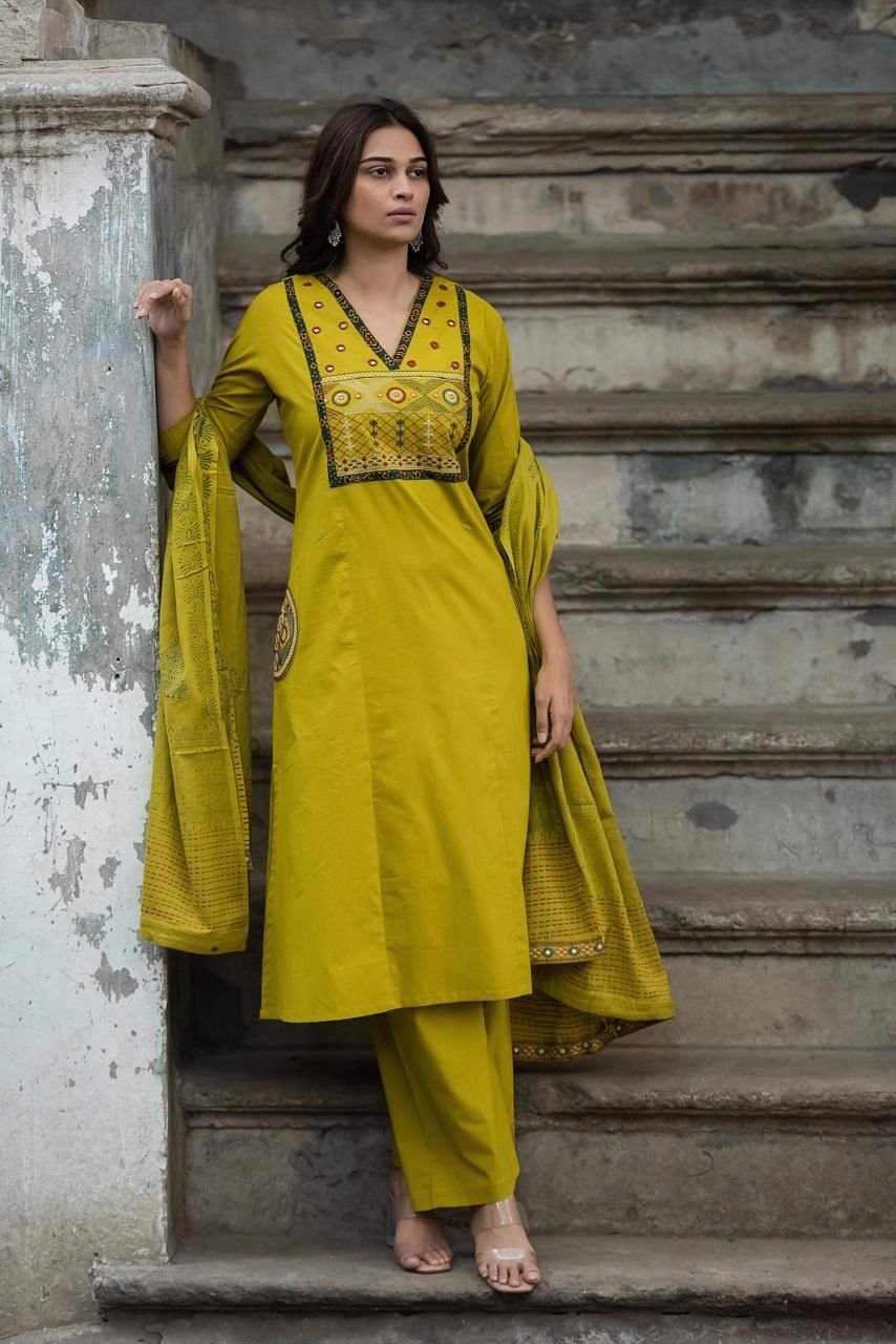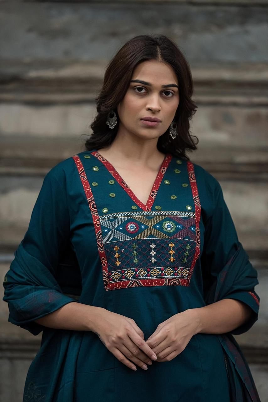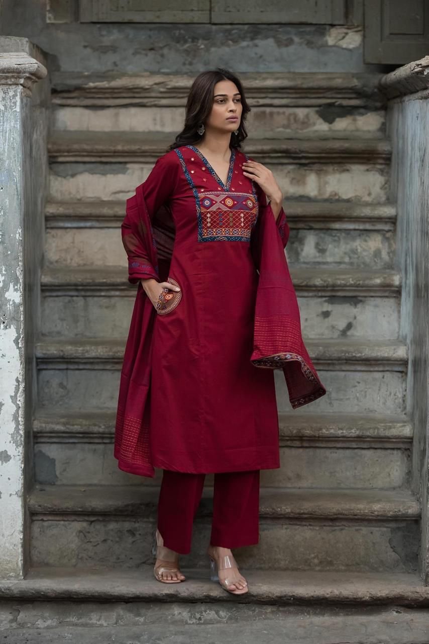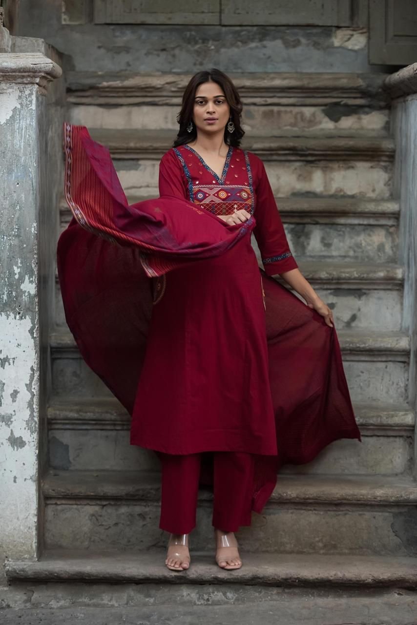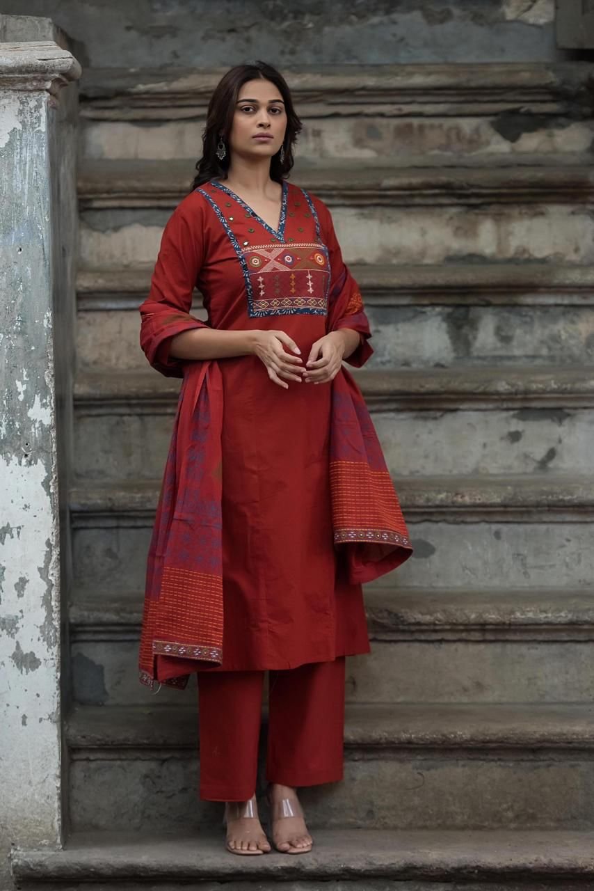 The handcrafted charm is further elevated with a handblock printed dupatta, showcasing traditional printing techniques passed down through generations. This combination of ethnic detailing and modern fit makes DU-408 perfect for office wear, festive gatherings, cultural events, or everyday elegance.