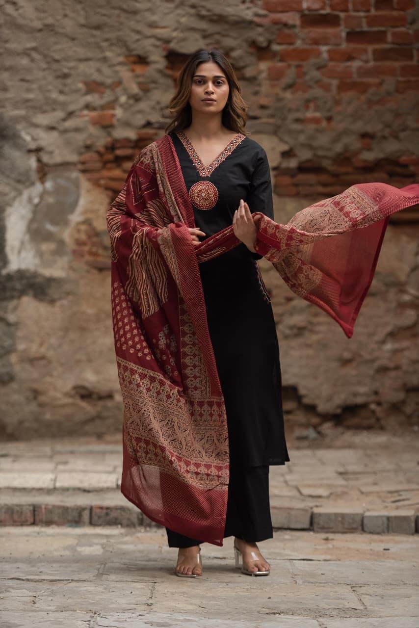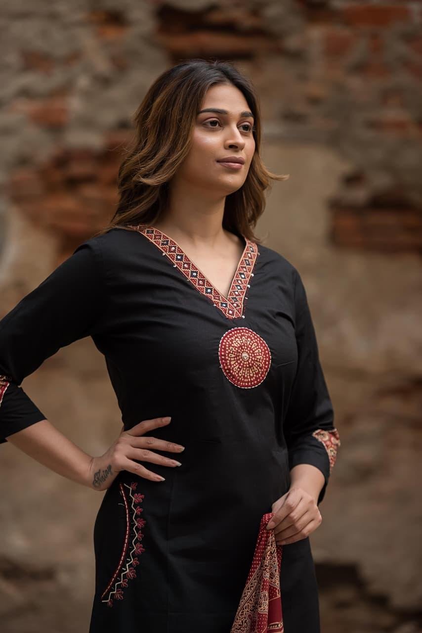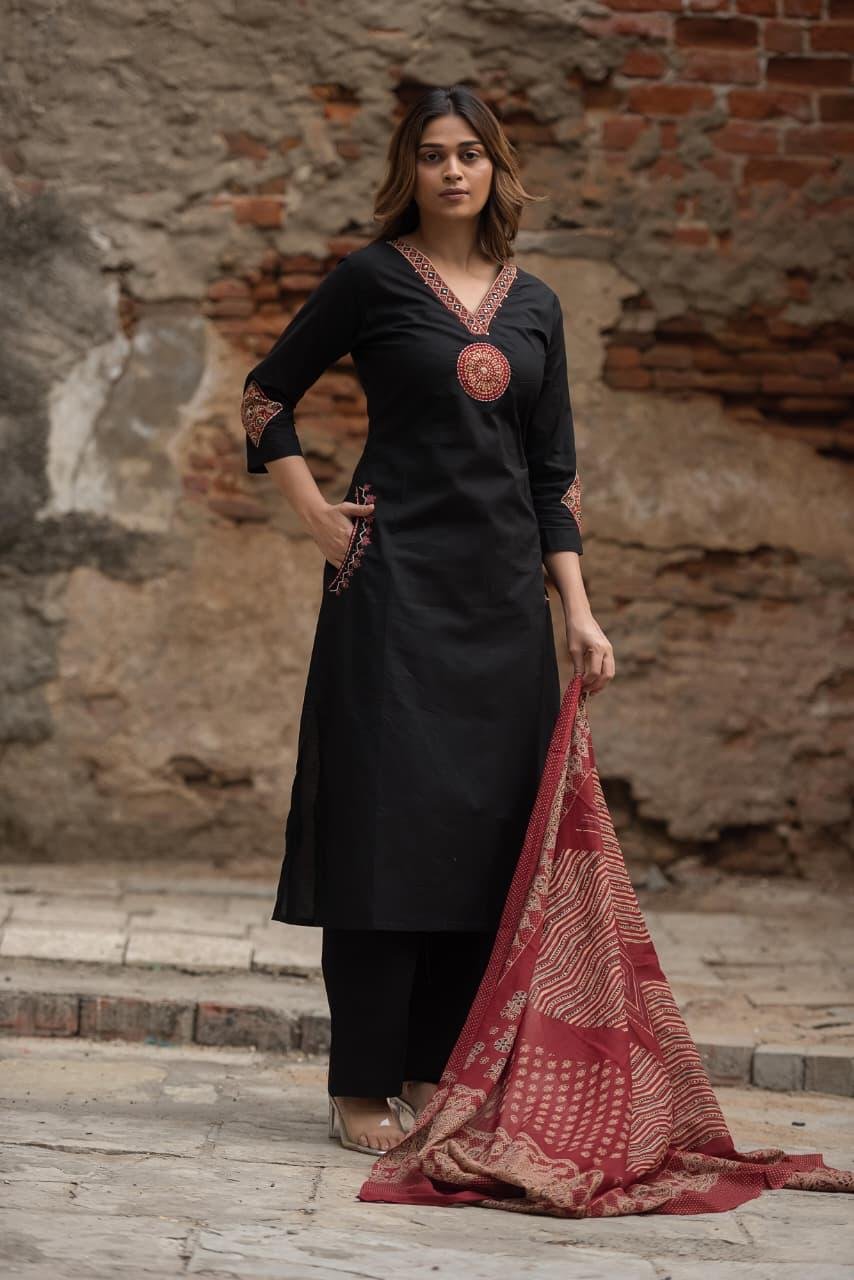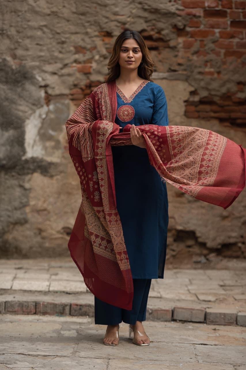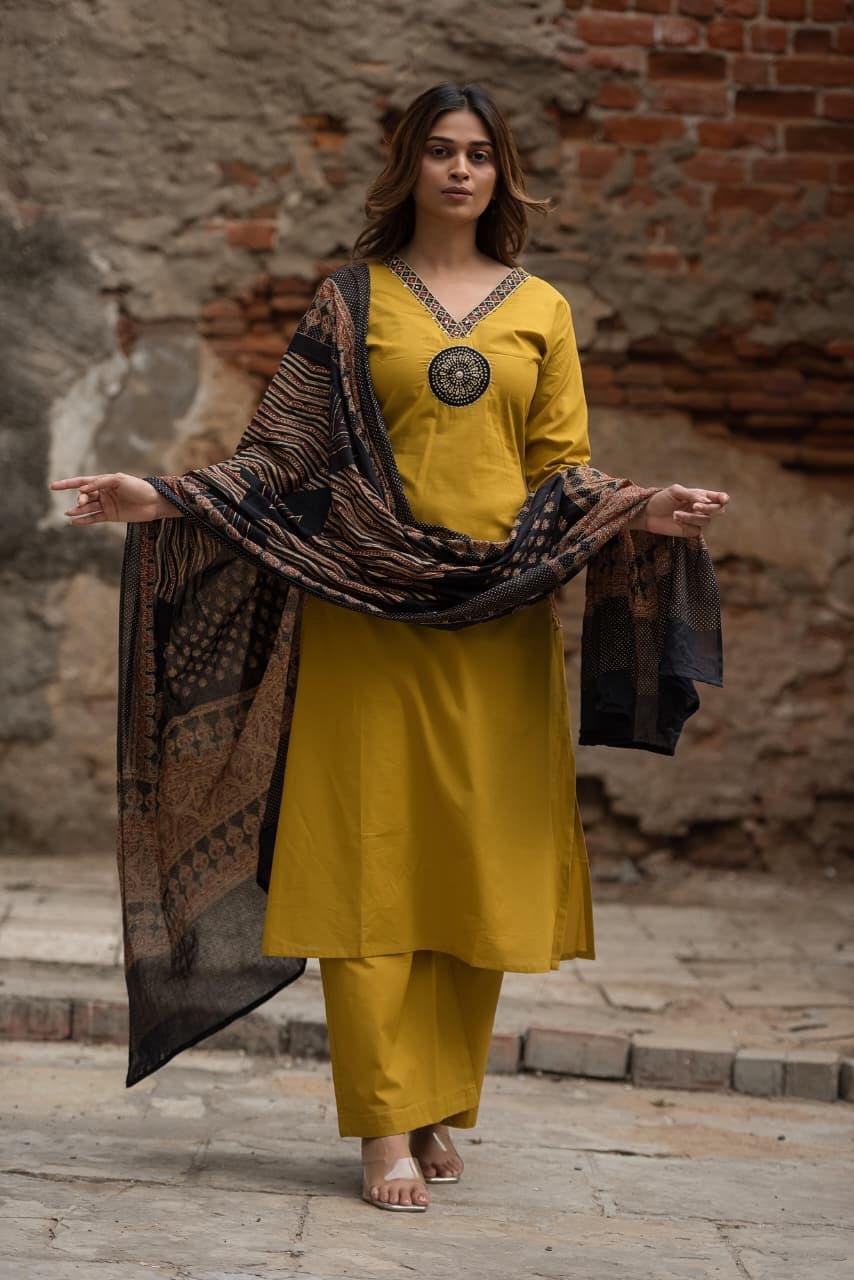 A-Line Dabu Cotton 3PC Set with Embroidered Pockets