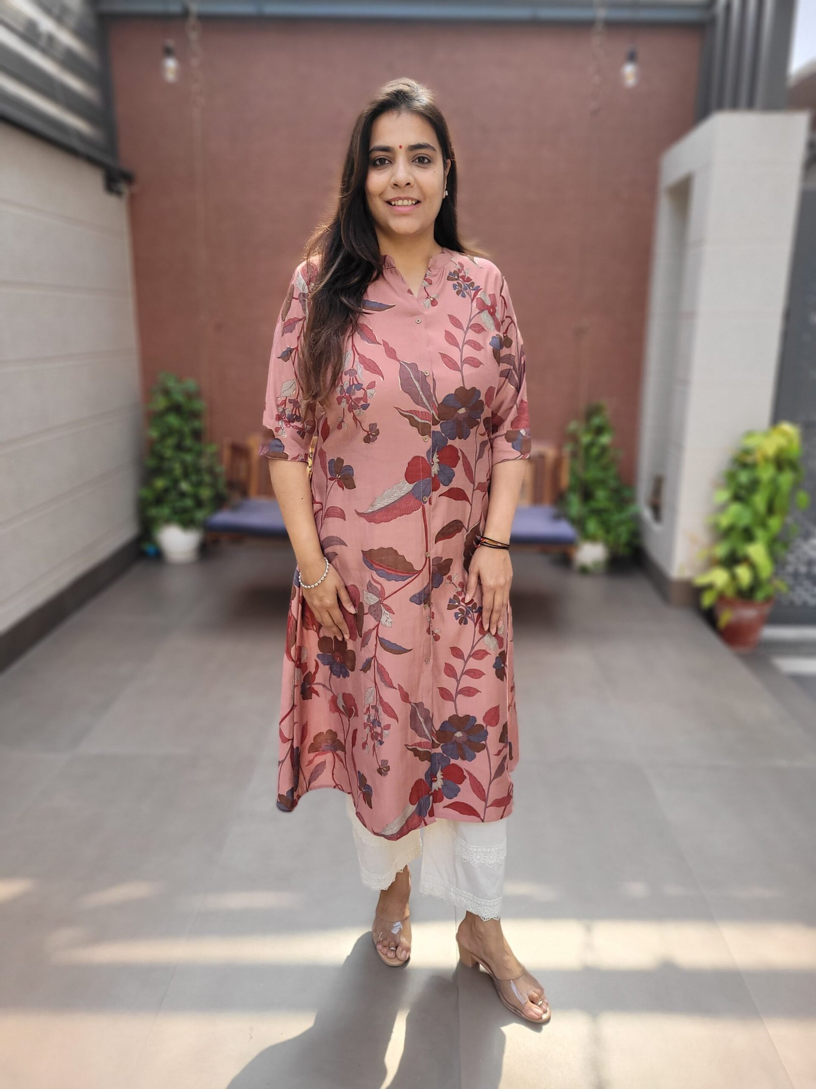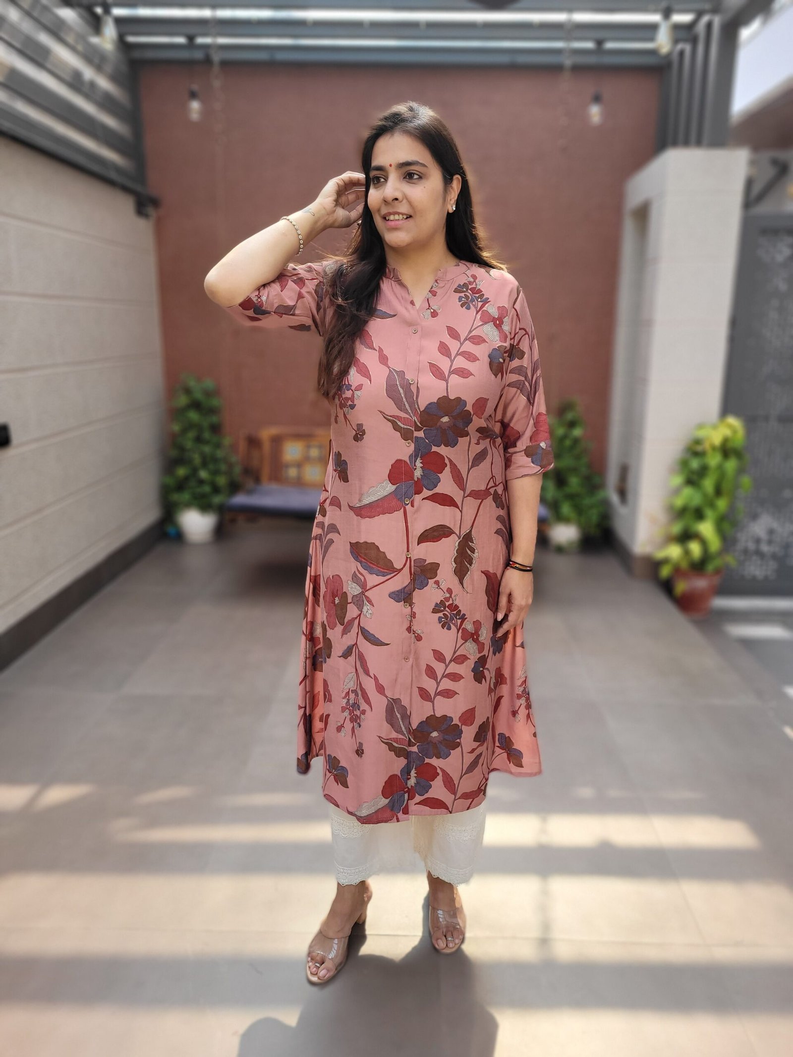 The A-line cut offers a flattering fall, while the digital print adds a subtle yet stylish touch. Ideal for casual outings, office wear, or relaxed ethnic styling, this kurta pairs beautifully with leggings, palazzos, or straight pants.