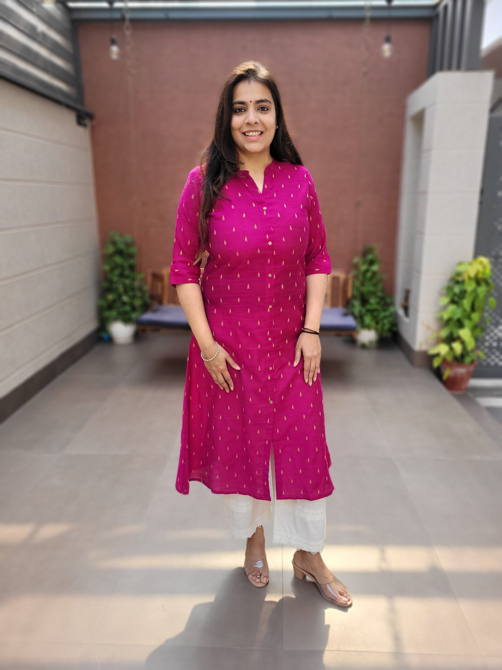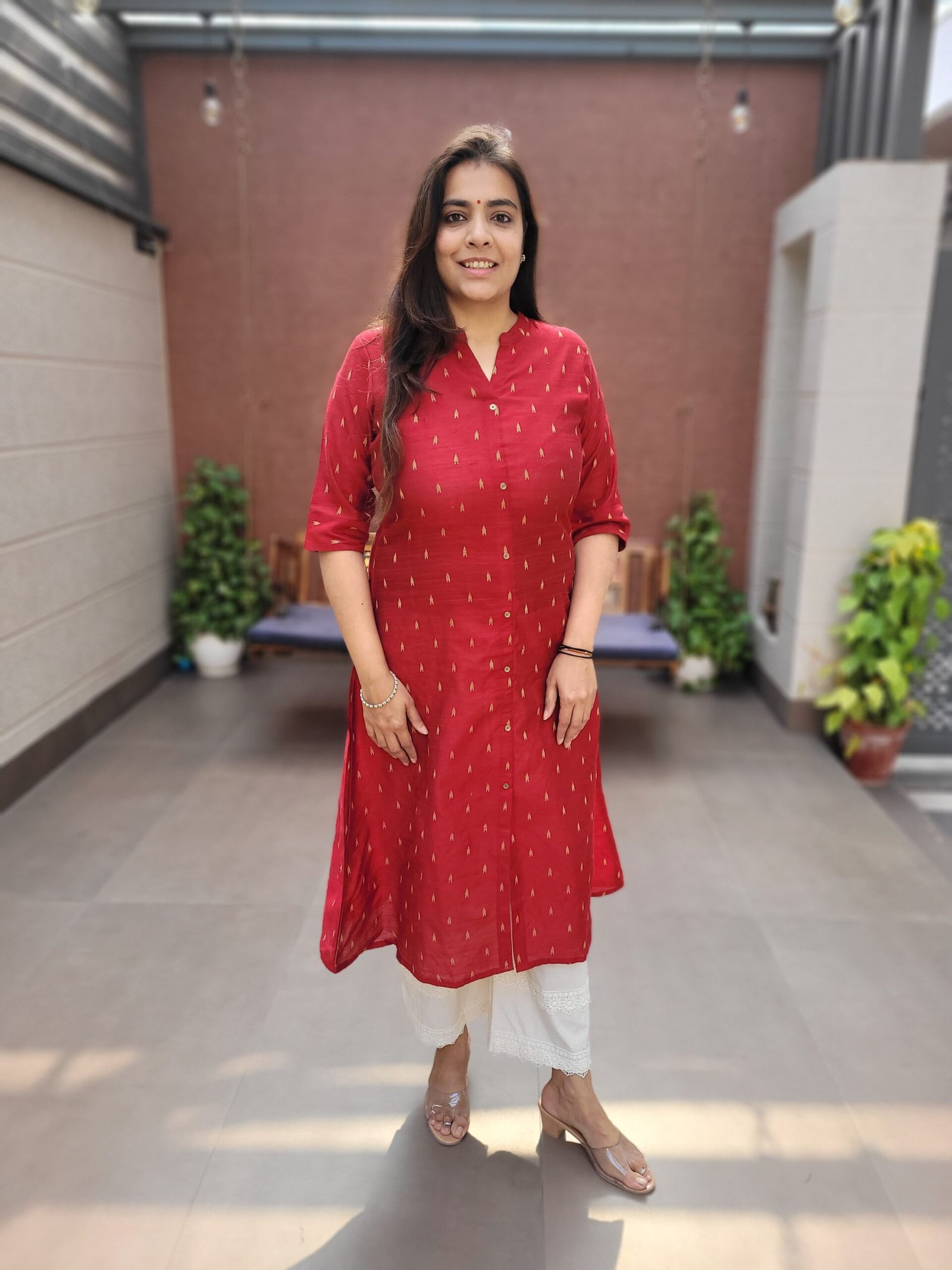 Designed with a flattering A-line cut, it enhances the silhouette while ensuring comfort. The front slit detail adds a contemporary touch, allowing ease of movement and effortless styling. Pair it with straight pants, palazzos, or festive bottoms for a refined ethnic look.