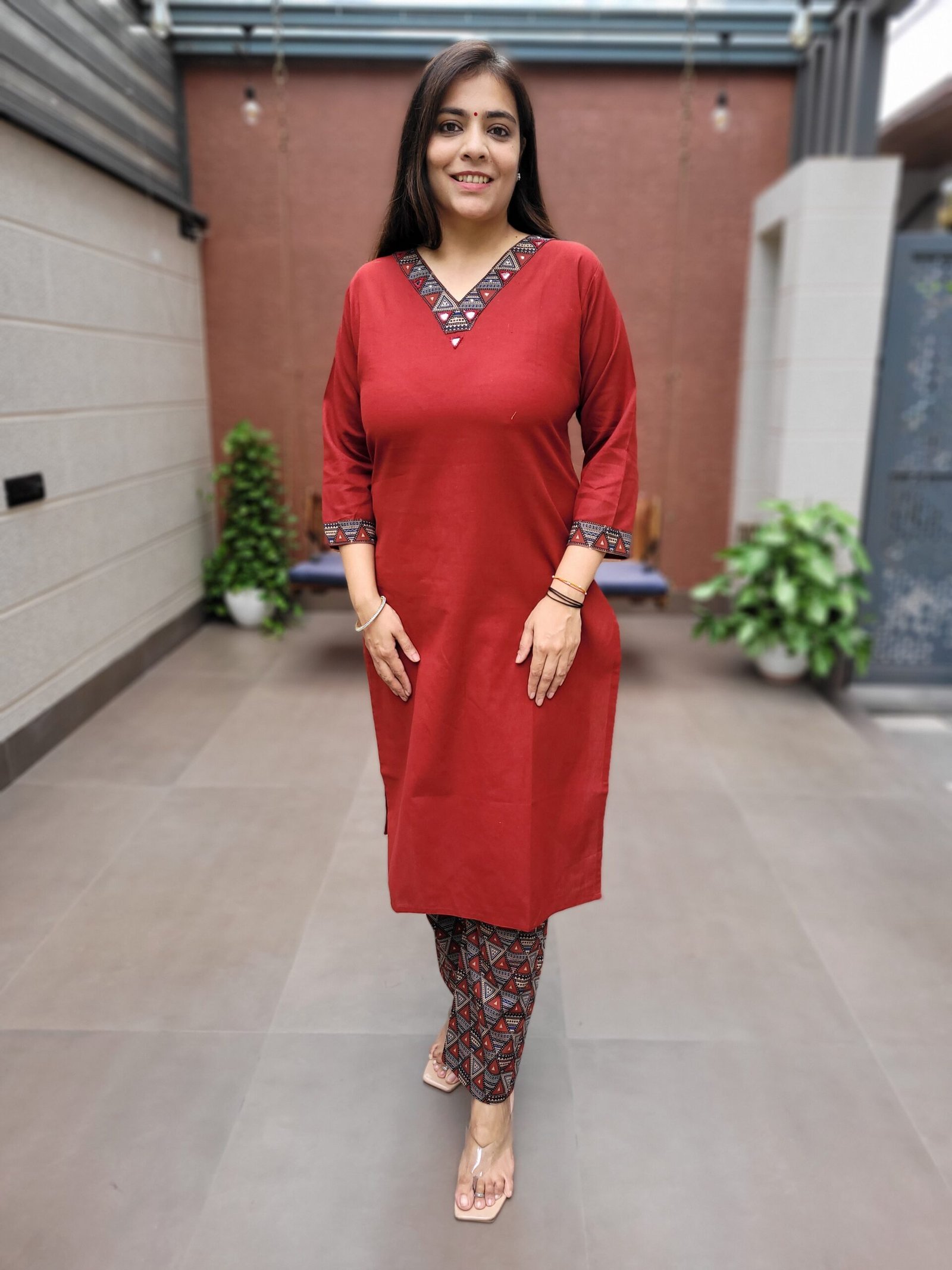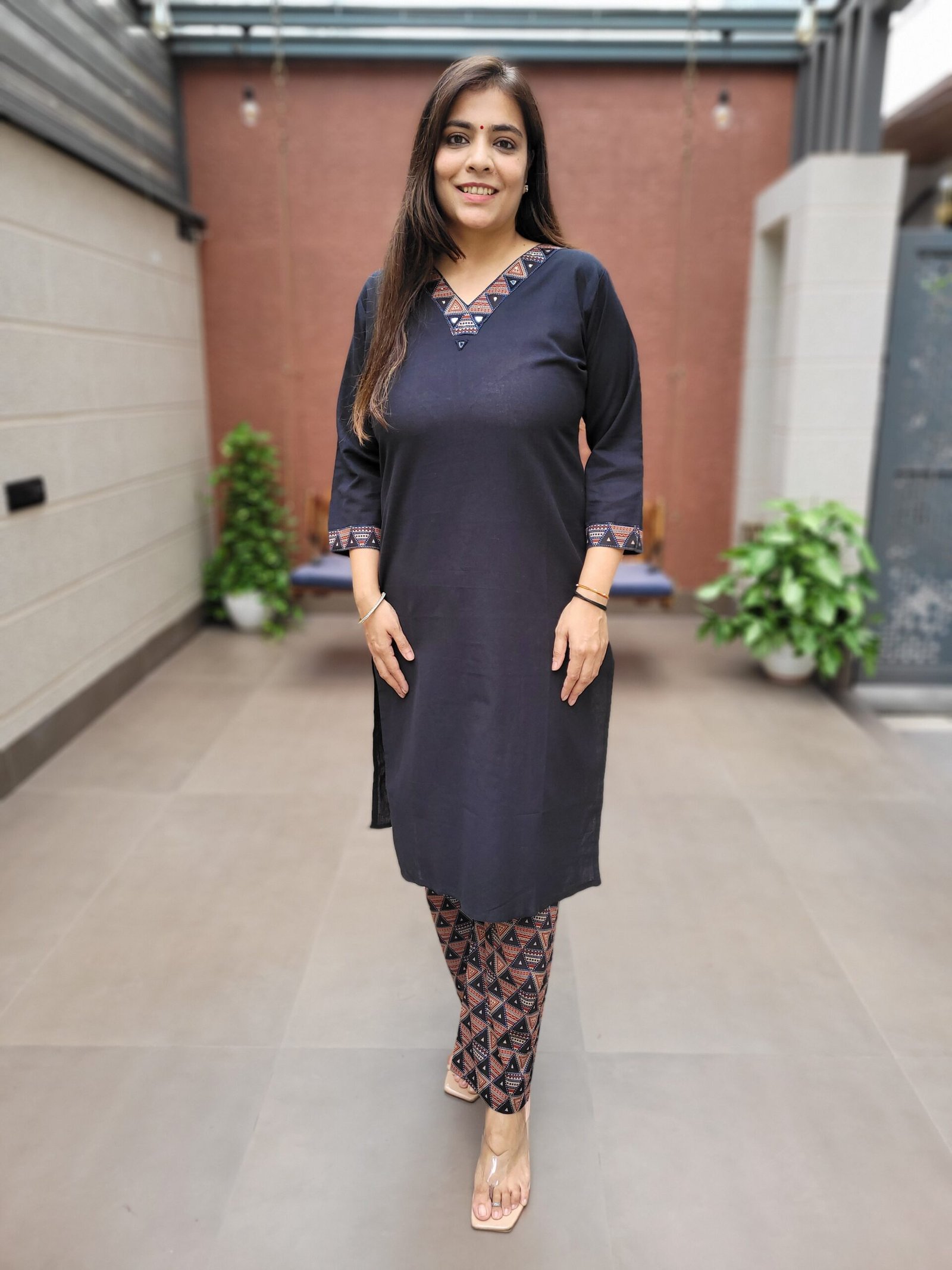 The PS-034 Ajrakh 2PC Set is crafted from soft, breathable cotton flex, offering lightweight comfort and ease of movement. The kurta features intricate mirror and sequin work, adding a touch of artisanal charm, while the Ajrakh print palazzo completes the ensemble with traditional elegance.