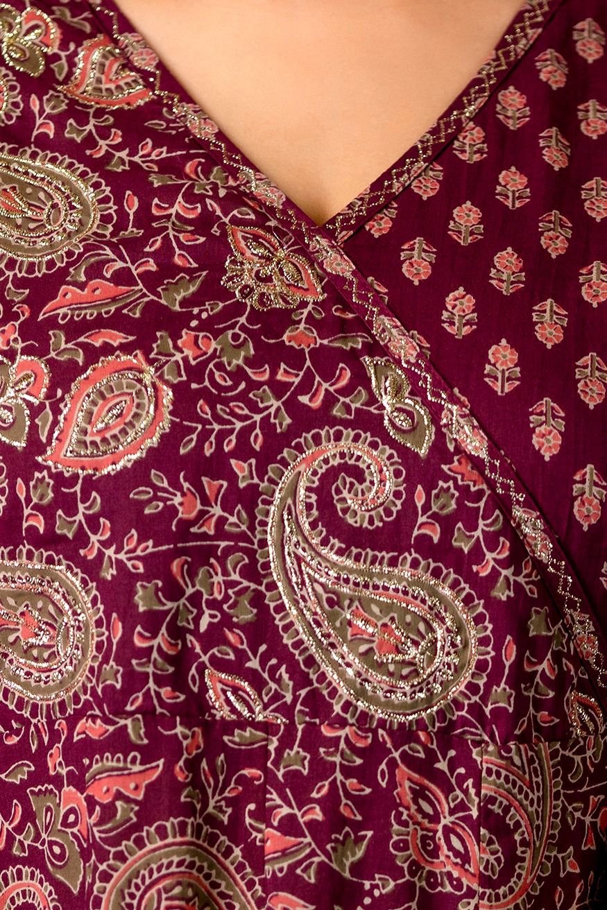 The AK-003 Angrakha Anarkali 3PC Set beautifully blends traditional craftsmanship with modern comfort. Made from pure cotton fabric, this outfit ensures breathability and a comfortable fit.