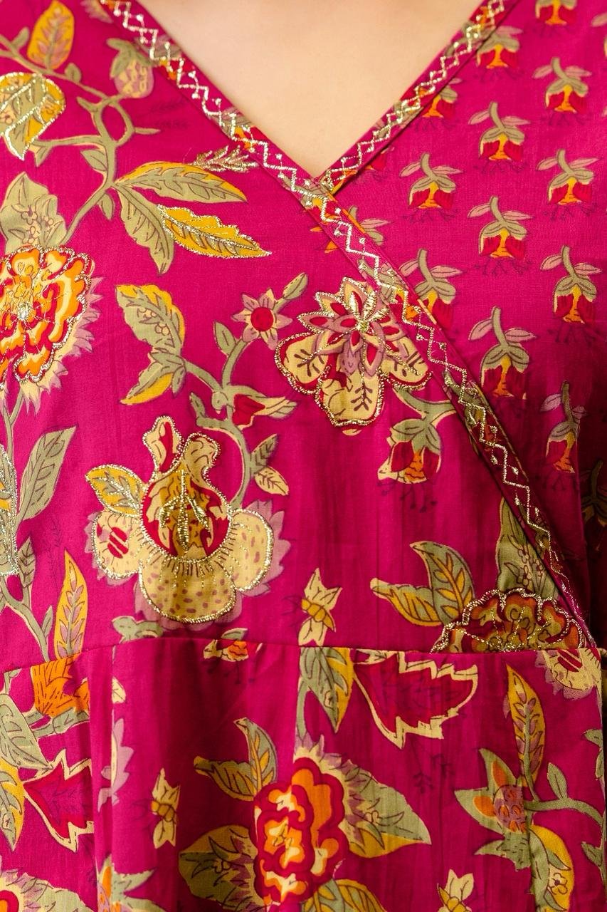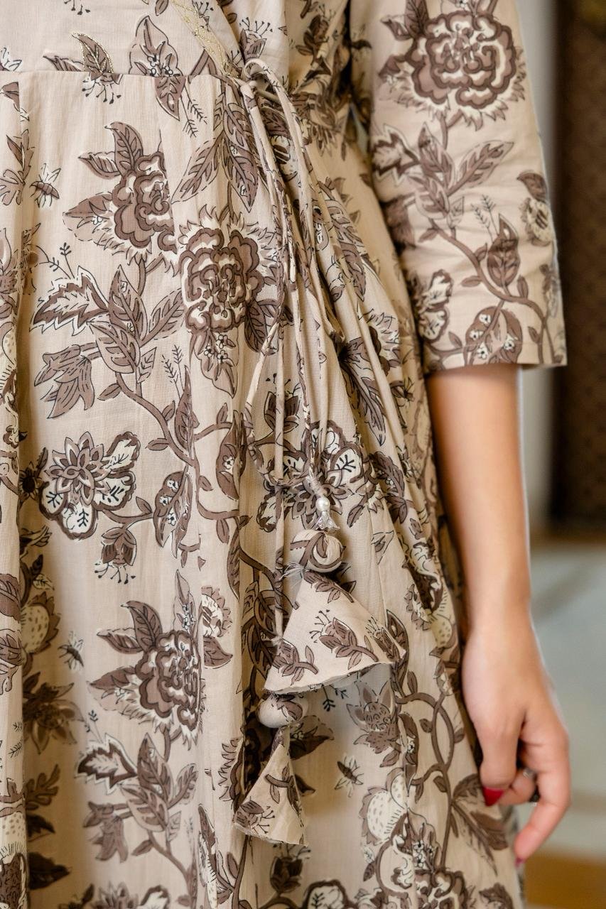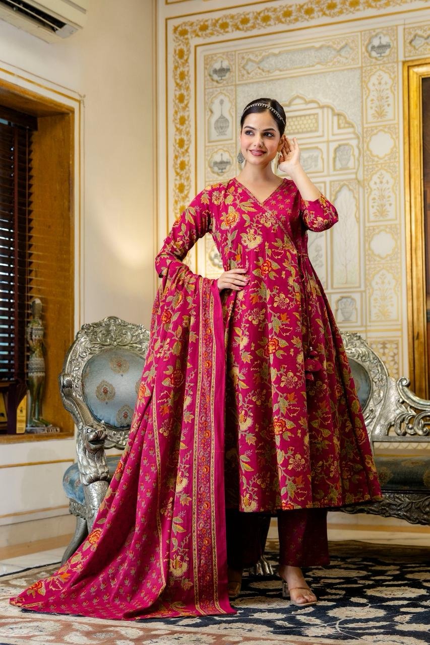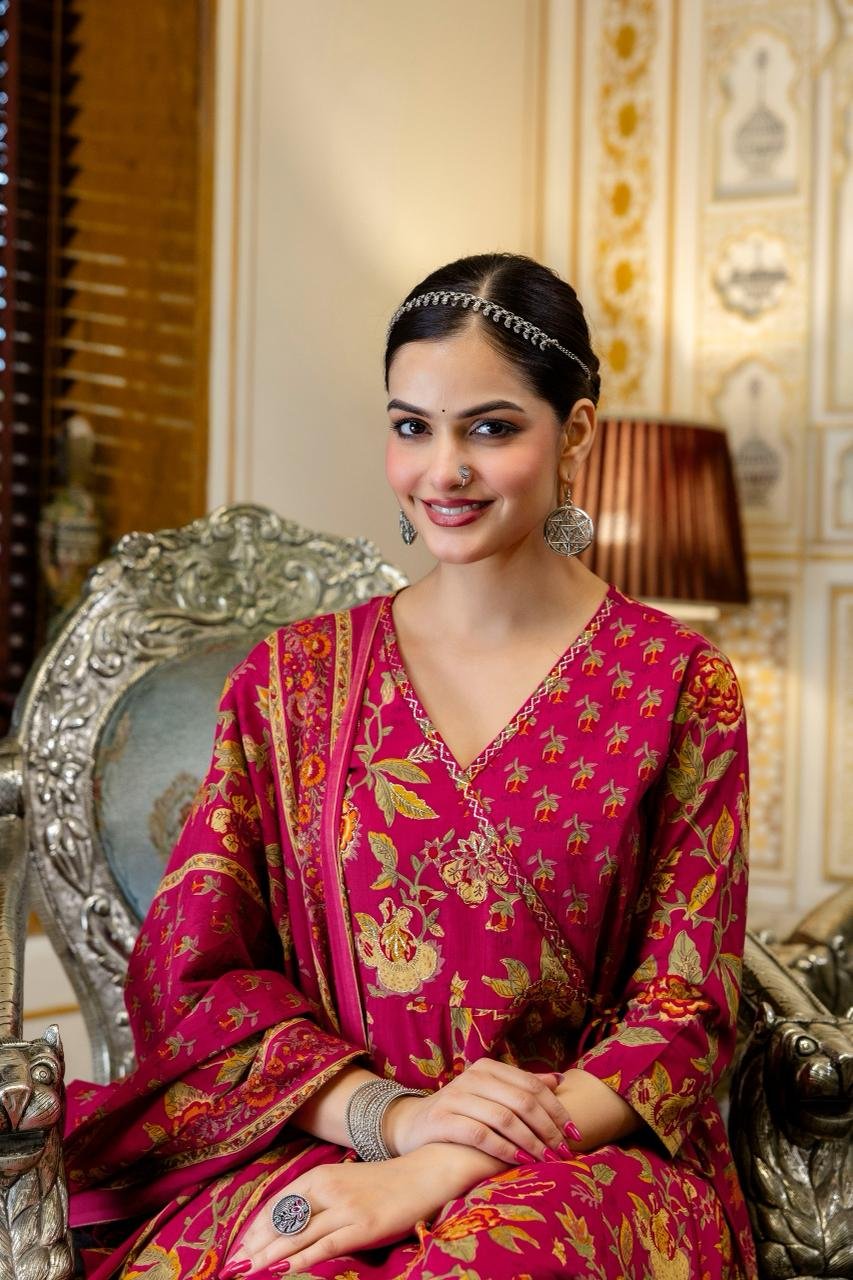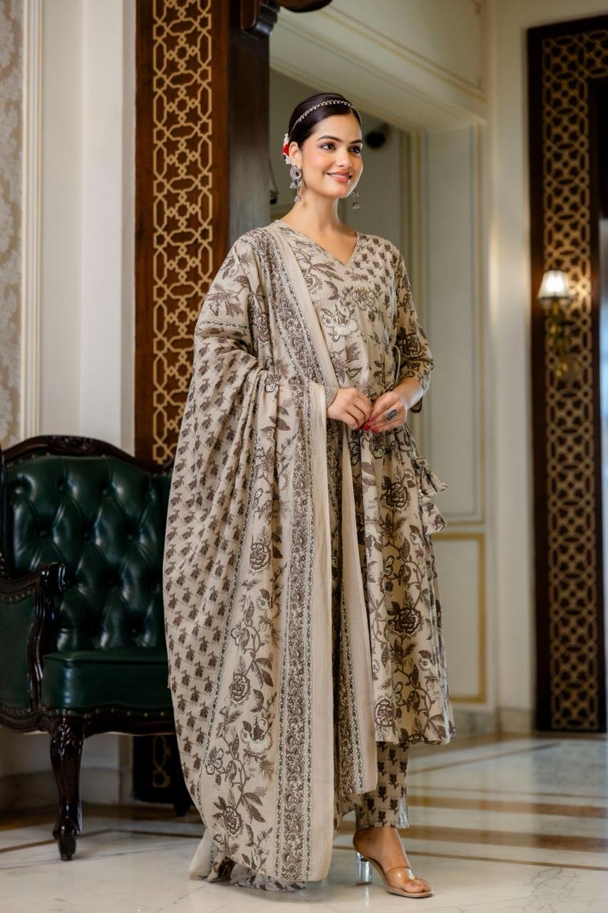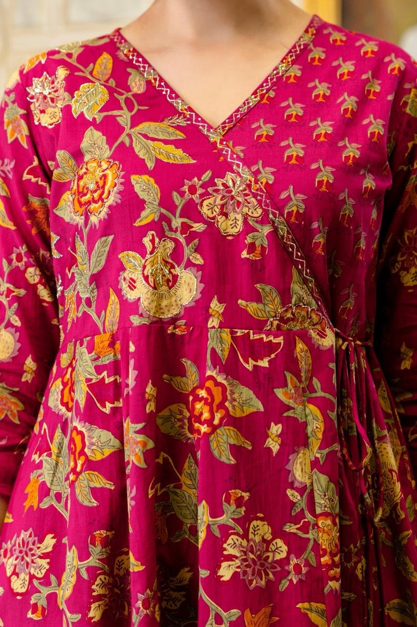 The AK-103 Angrakha Anarkali 3PC Set is designed for women who appreciate traditional elegance blended with comfort. Crafted from pure cotton fabric, this ensemble ensures breathability and ease, making it suitable for long hours of wear.