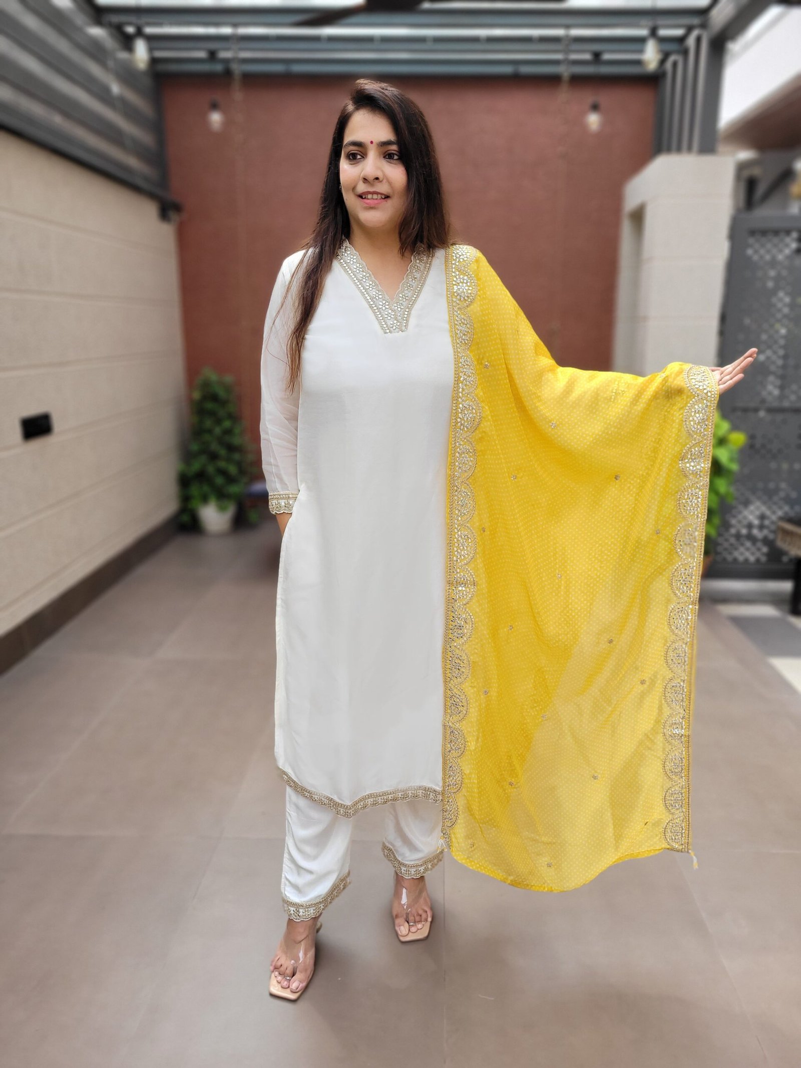 The PW-024 Bollywood Outfit is crafted for those who love a touch of glamour and sophistication. Made from premium Russian silk, it offers a fluid, elegant fall and a subtle sheen. The digital organza dupatta adds charm and finesse to the entire ensemble.