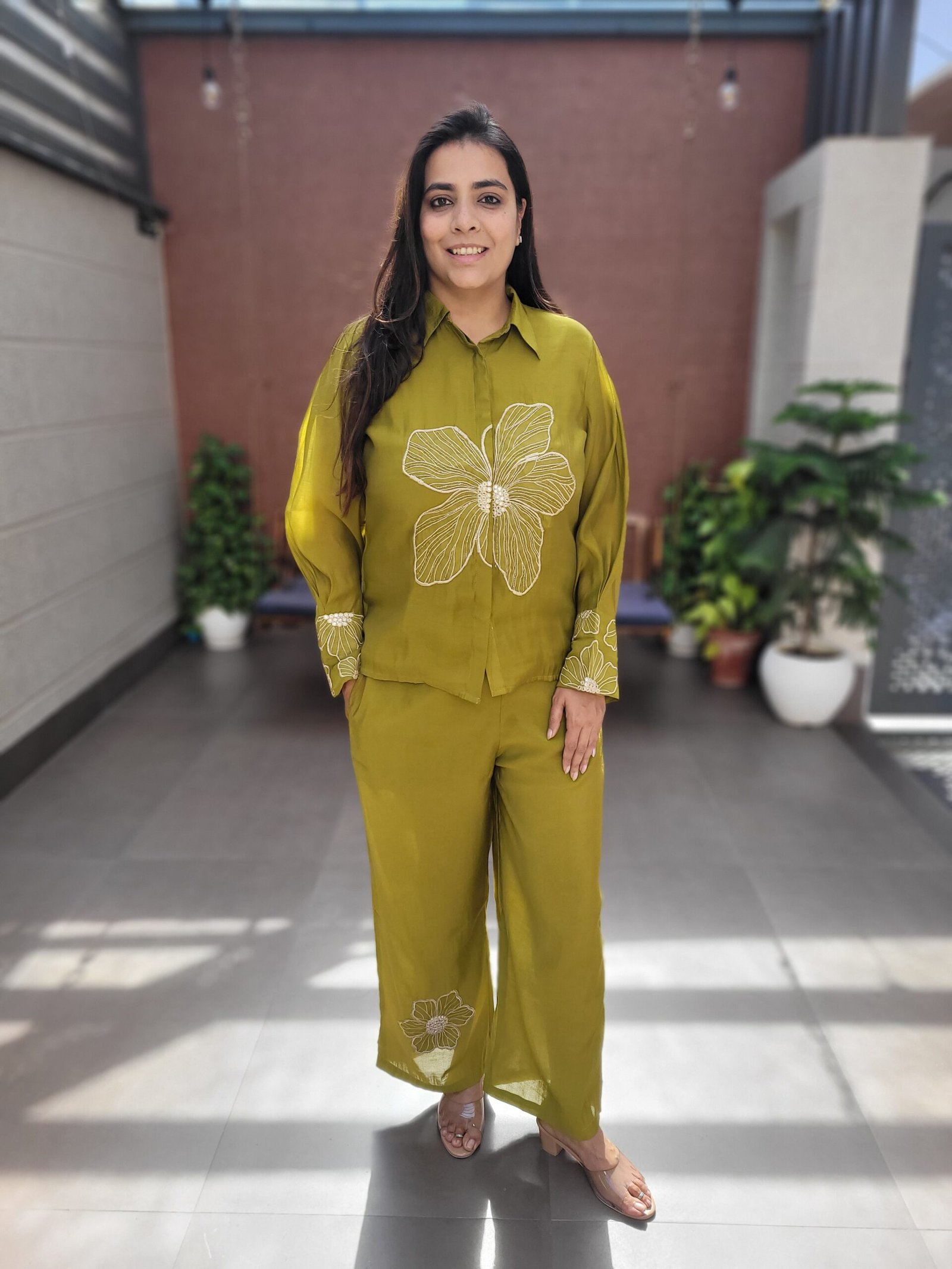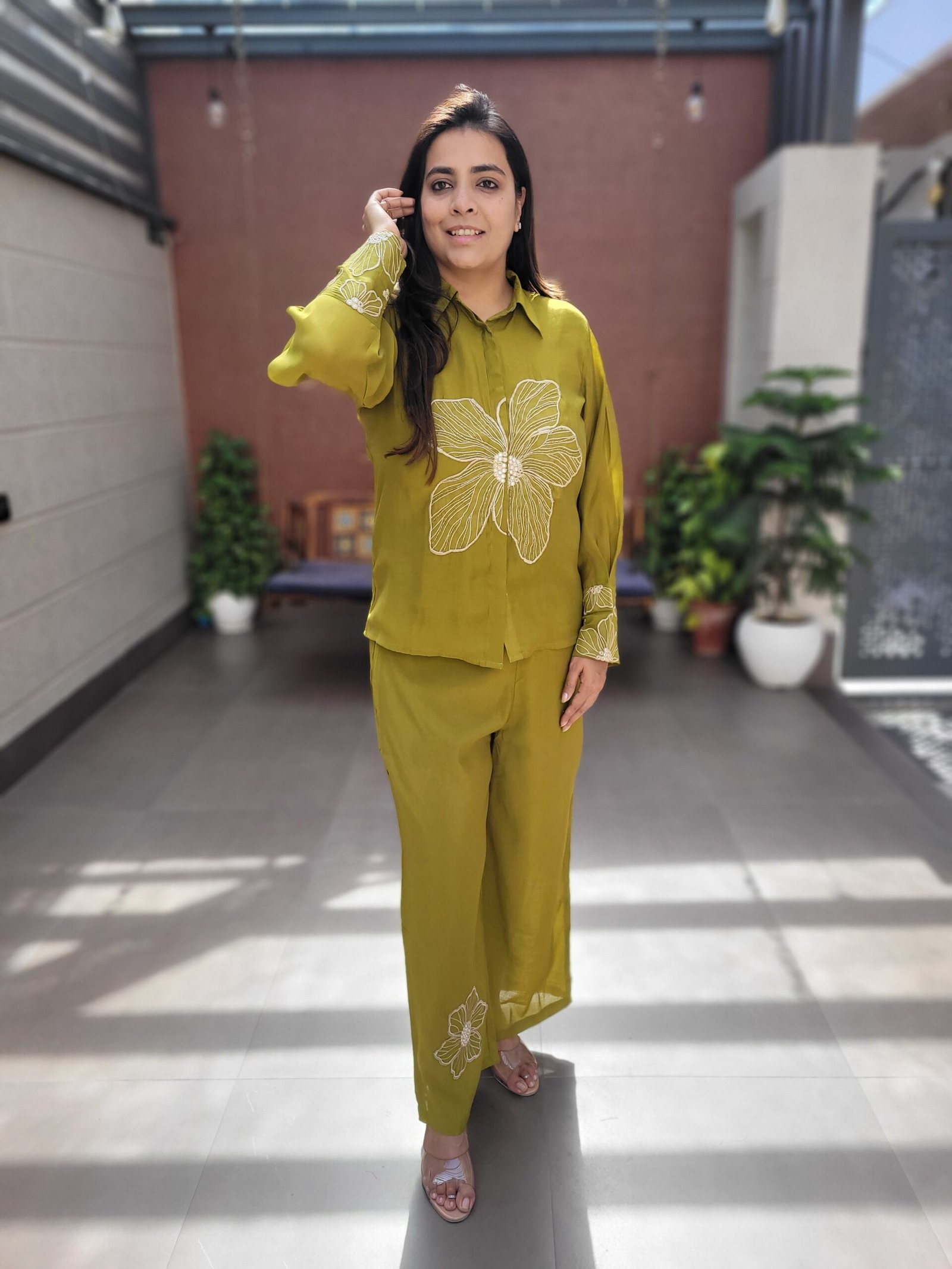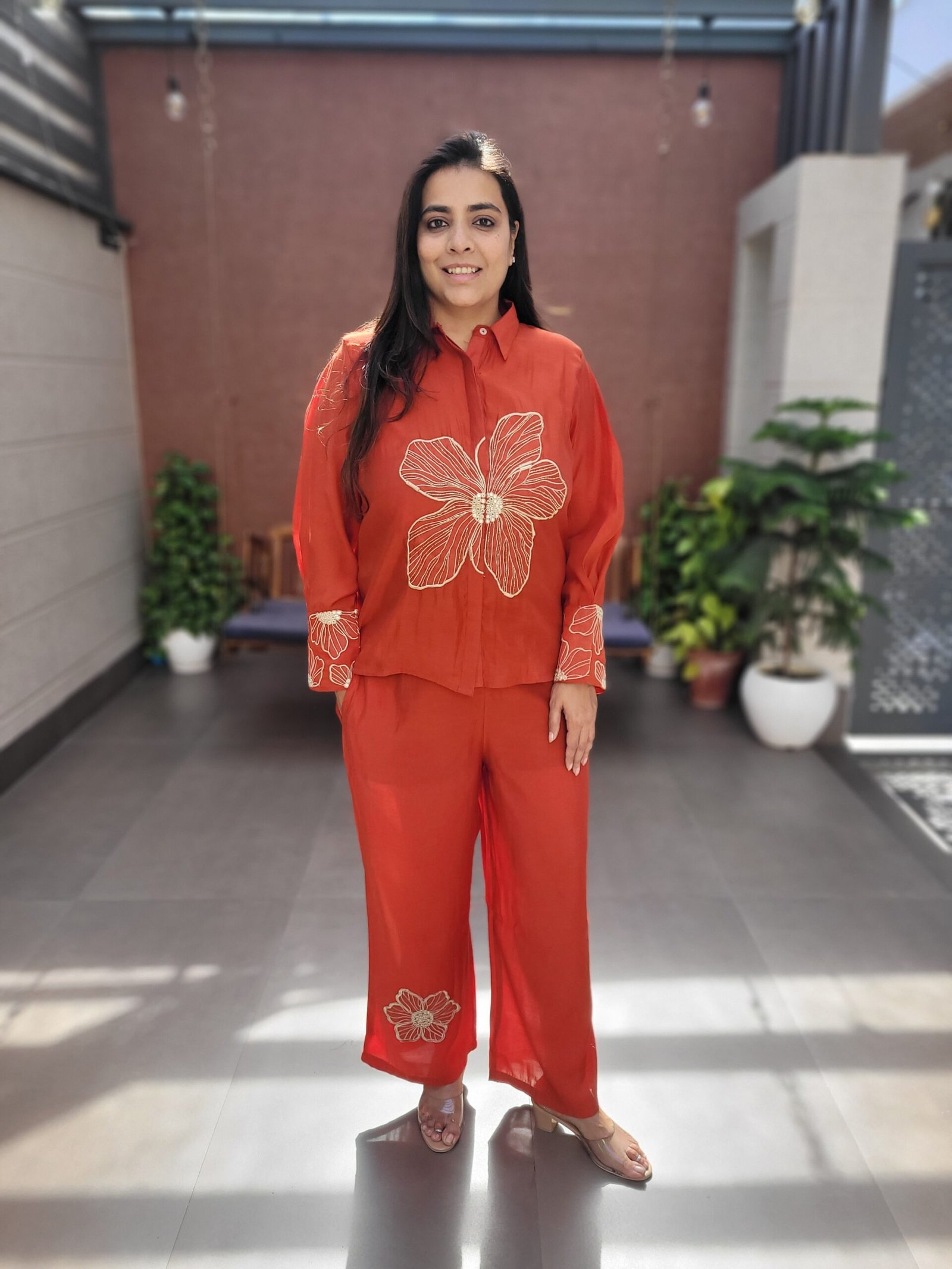 This Boutique Style Co-Ord Set is crafted from luxurious Mul Chanderi fabric, offering a soft, lightweight, and effortlessly elegant feel. Designed with intricate embroidery and beadwork, it brings a premium handcrafted touch ideal for both festive and semi-formal occasions.