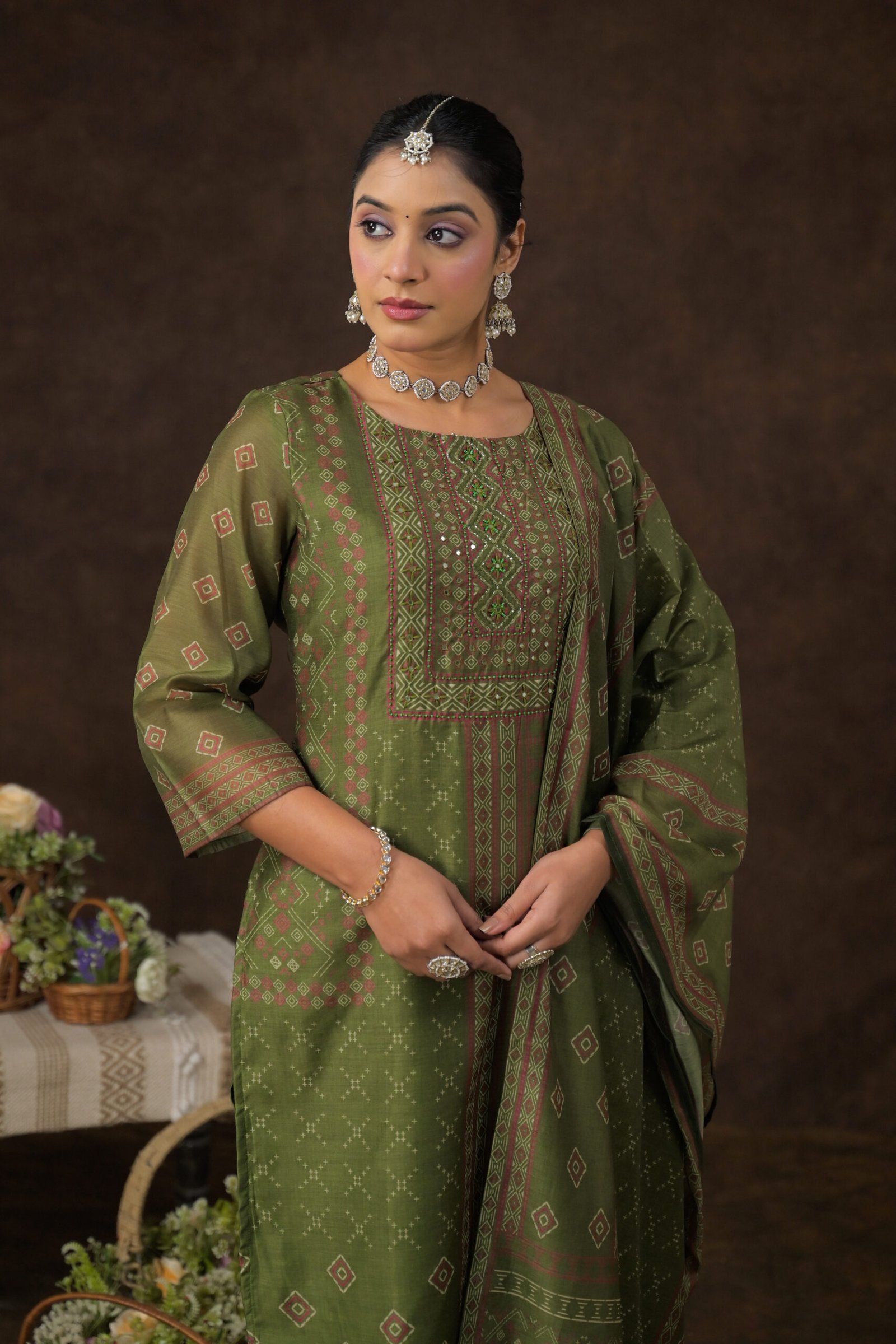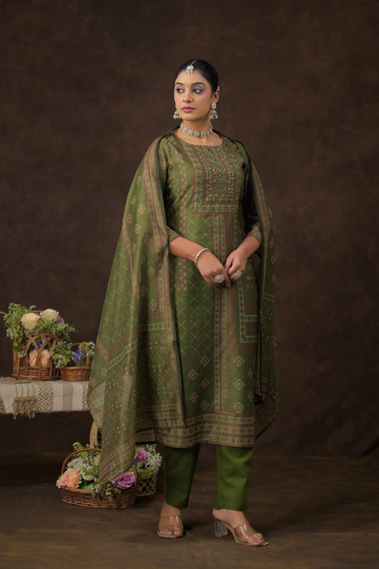 The DU-241 Chanderi 3PC Suit Set is a perfect blend of traditional grace and modern sophistication. Crafted from premium-quality Chanderi fabric, this suit set features a smooth texture and subtle sheen that instantly elevates your look. The heavy handwork on the kurta adds richness and intricate detailing, making it ideal for festive occasions, family gatherings, pooja ceremonies, and elegant day outings.