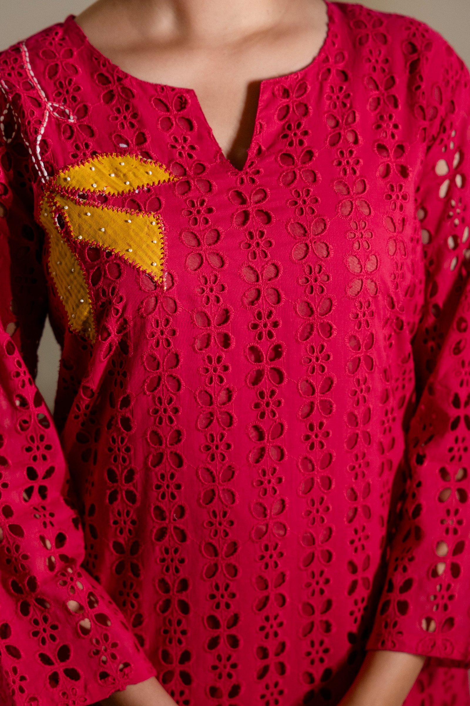 Care Instructions: Gentle hand wash separately in cold water; line dry in shade to preserve fabric texture and detailed embroidery.