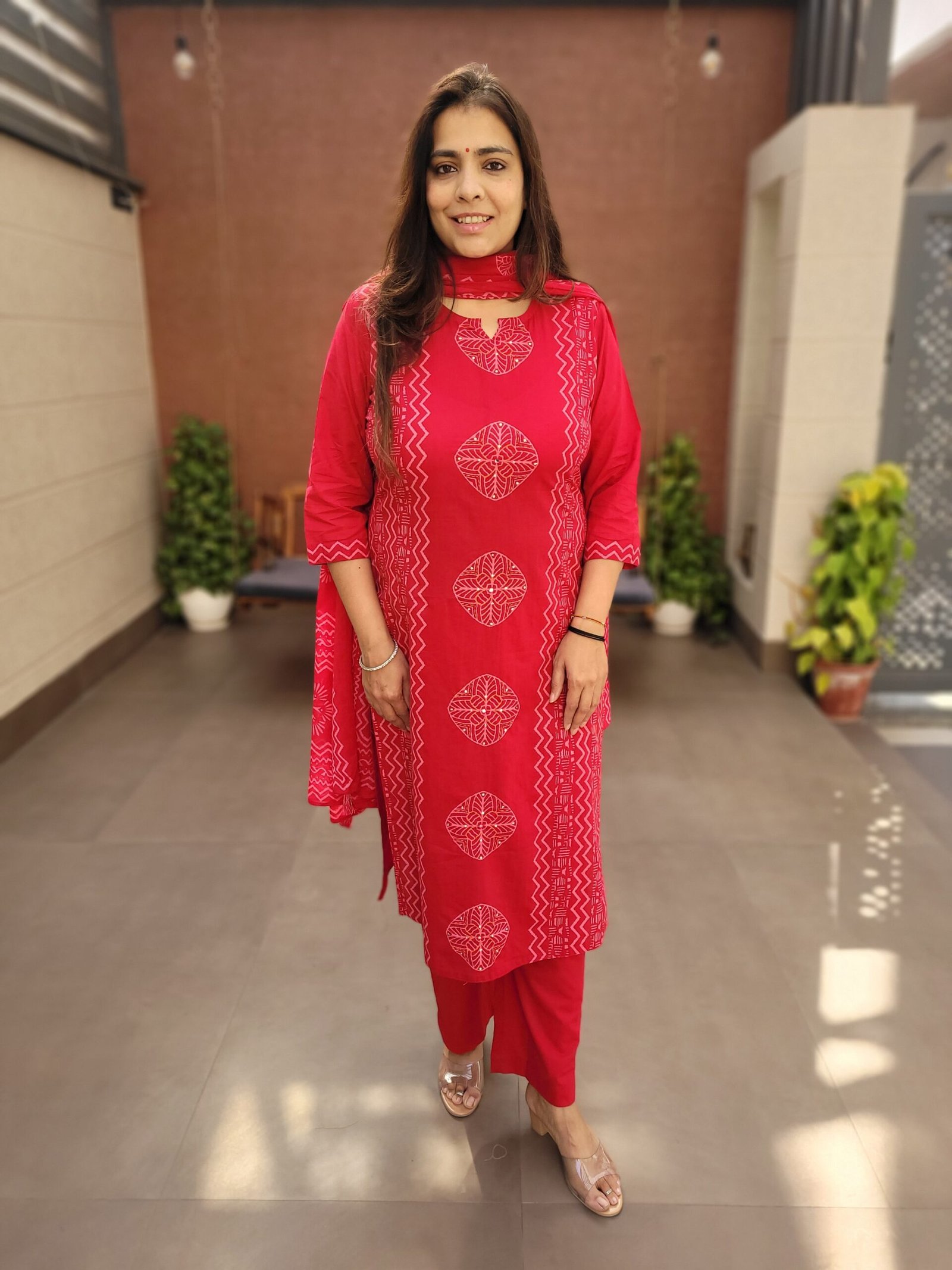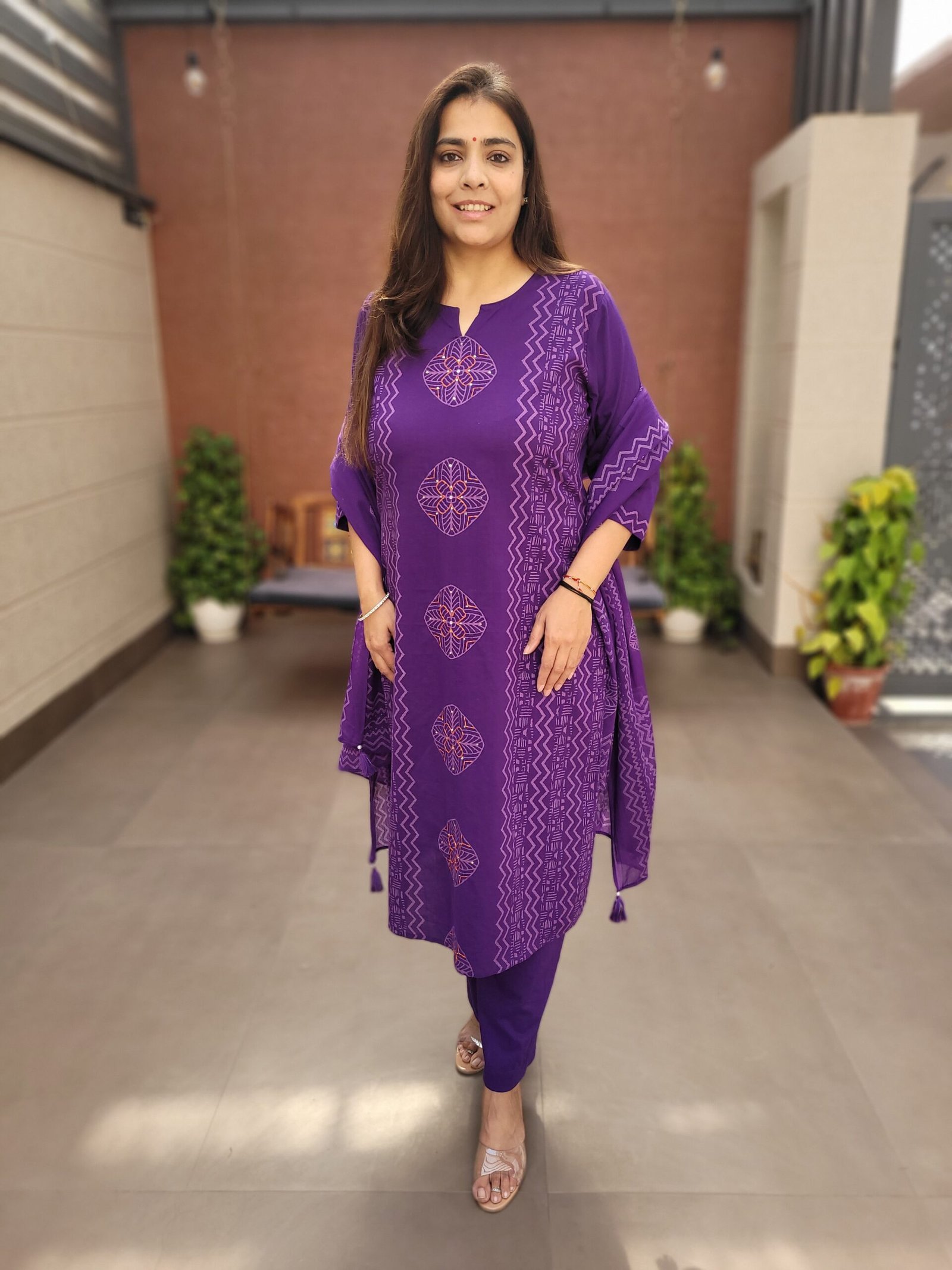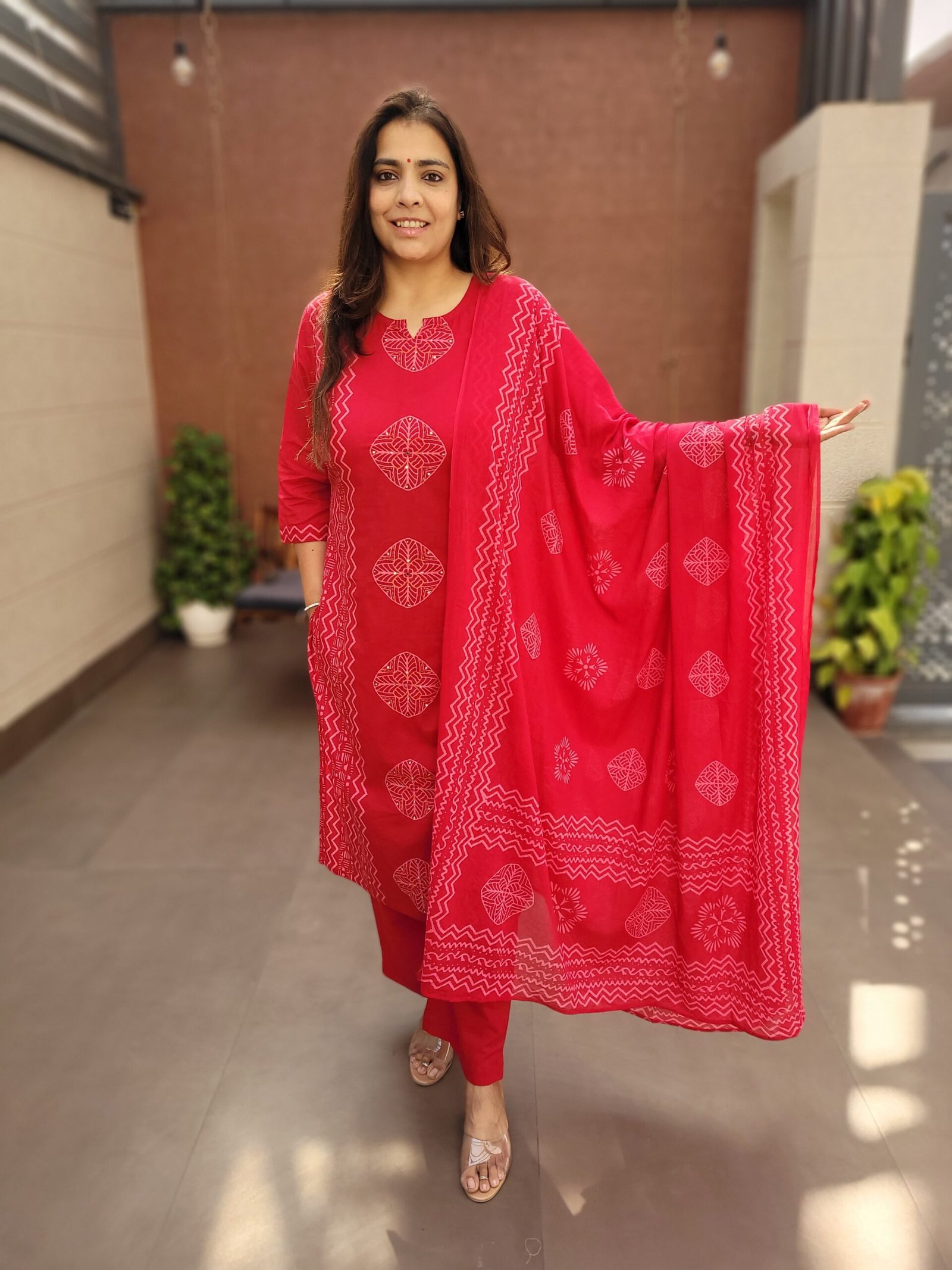 The kurta is enhanced with handwork on the front panel, adding subtle ethnic charm, while the full cotton dupatta completes the look with effortless grace. Perfect for daily wear, office styling, and relaxed ethnic occasions, this suit set combines simplicity with refined craftsmanship.