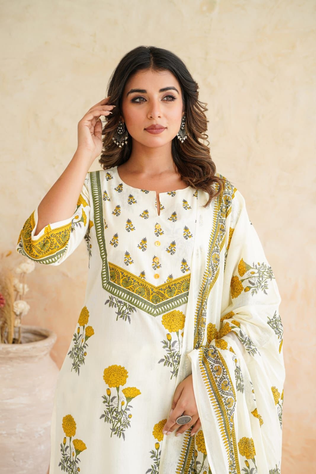 Cotton 3PC Set with Full Size Cotton Dupatta