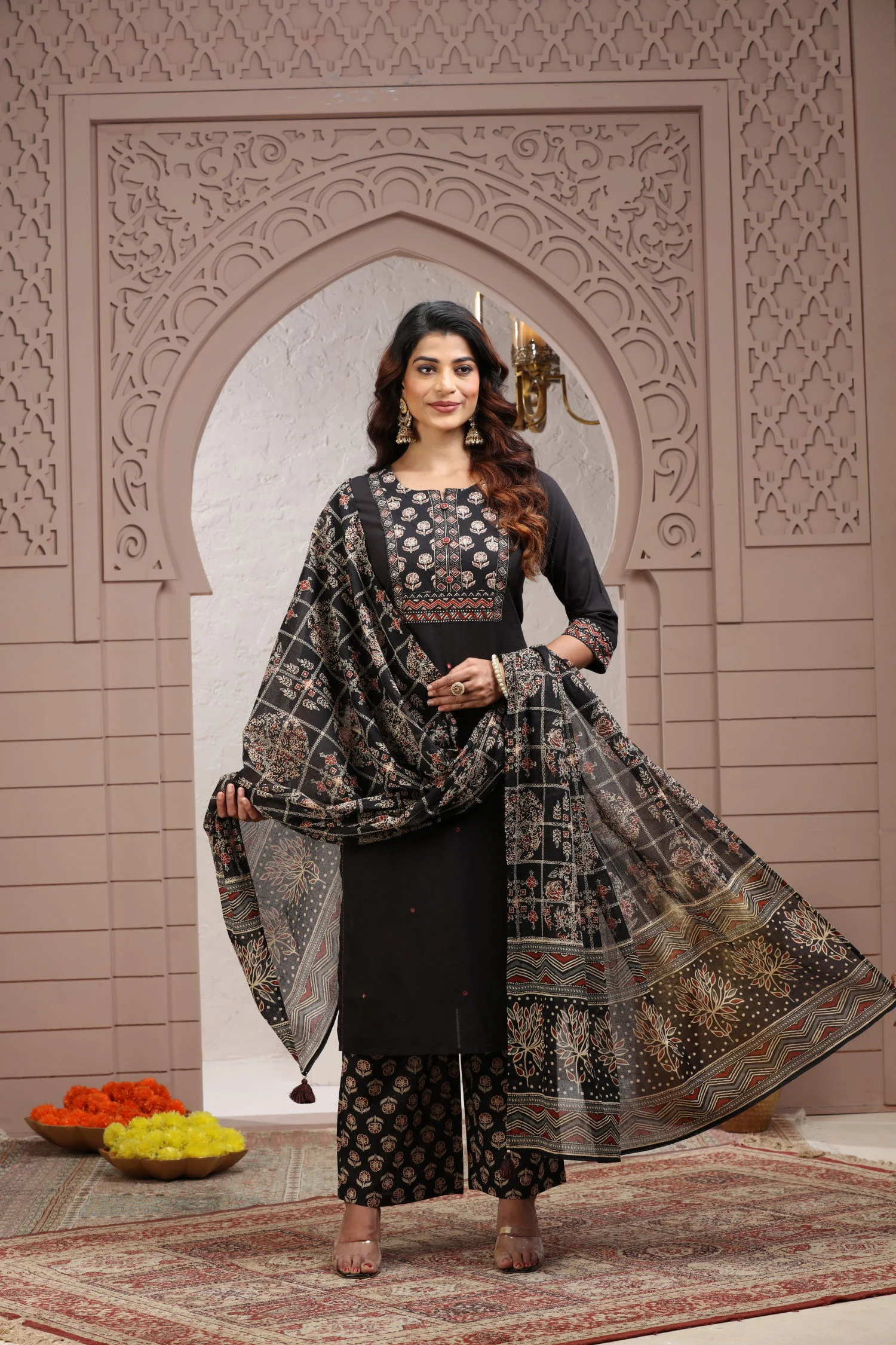 The DU-046 Cotton 3PC Set brings together simplicity, elegance, and festive charm. Crafted from soft cotton fabric, it ensures breathable comfort while maintaining a refined traditional look.