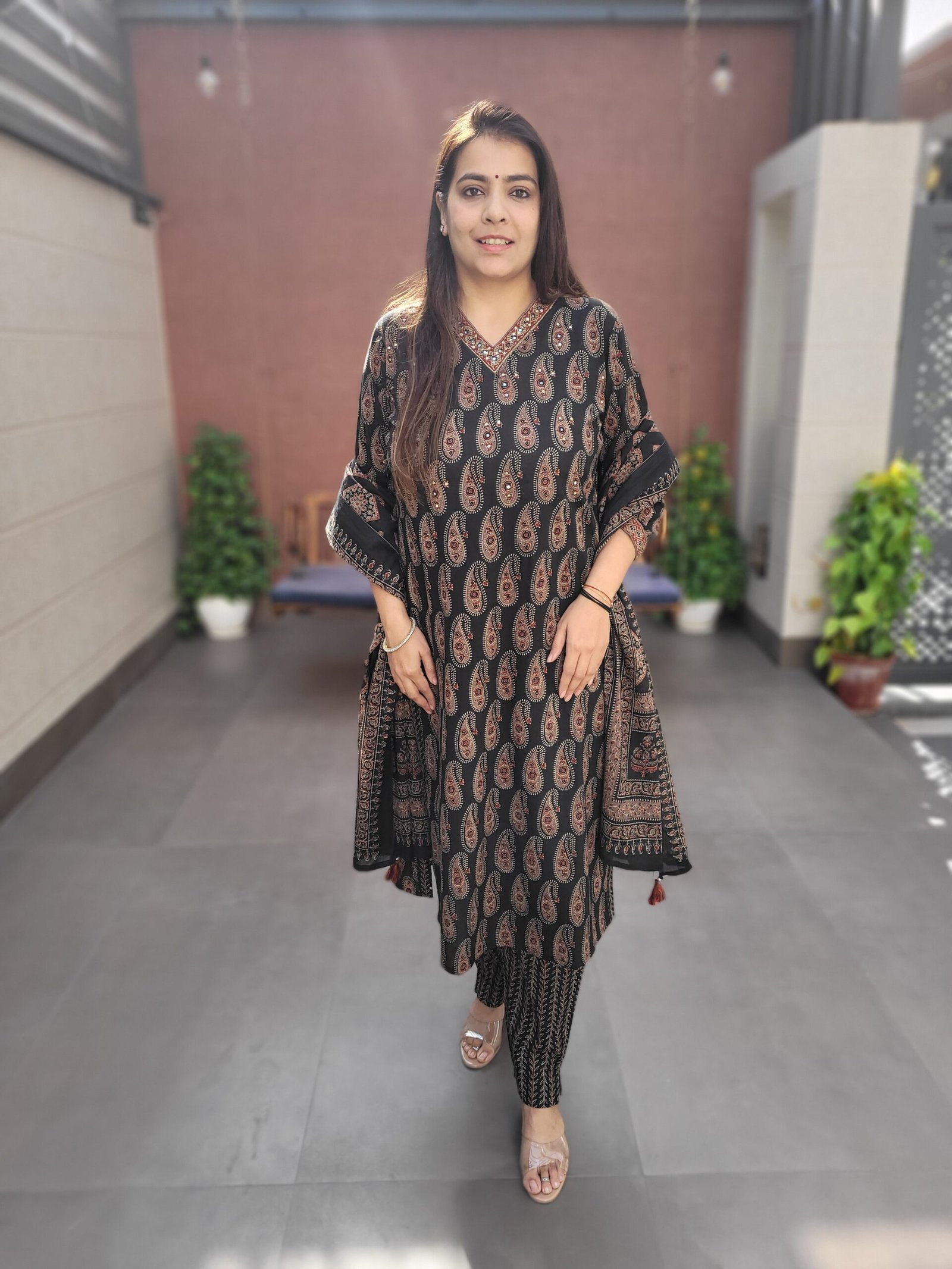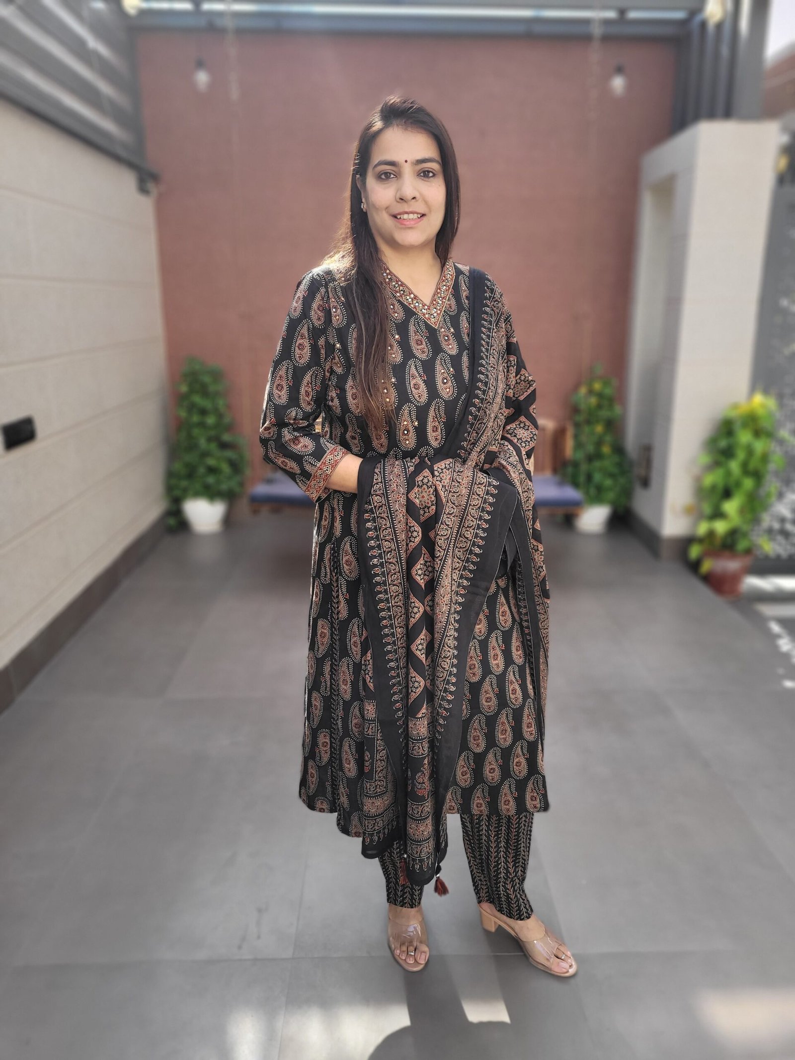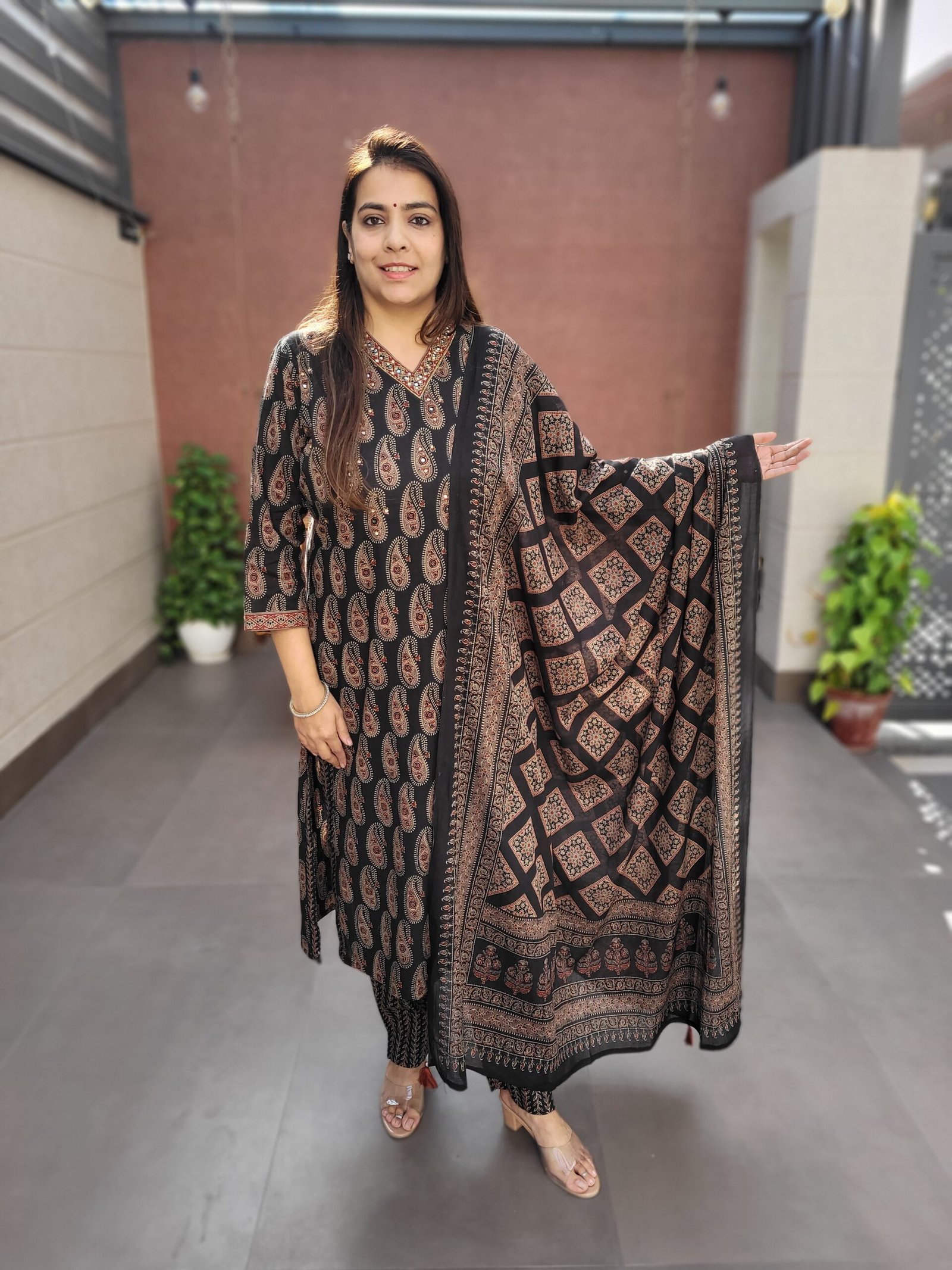 The set is paired with a full-size cotton dupatta that flows gracefully, completing the look with balance and sophistication. Ideal for daily wear, small gatherings, office settings, or festive mornings, this suit offers timeless appeal with handcrafted detailing.