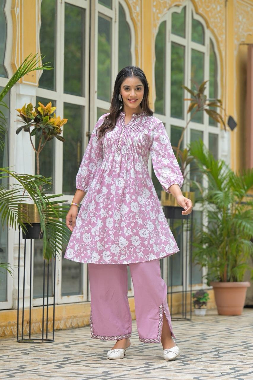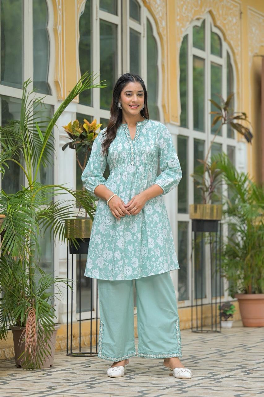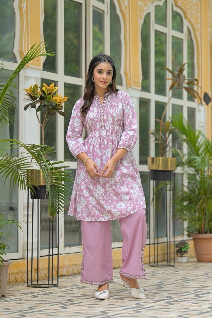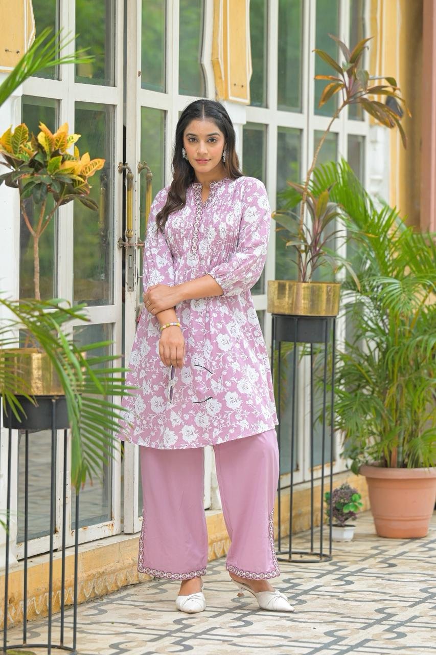 Cotton Co-ord Set with Pintucks & Embroidered Palazzo