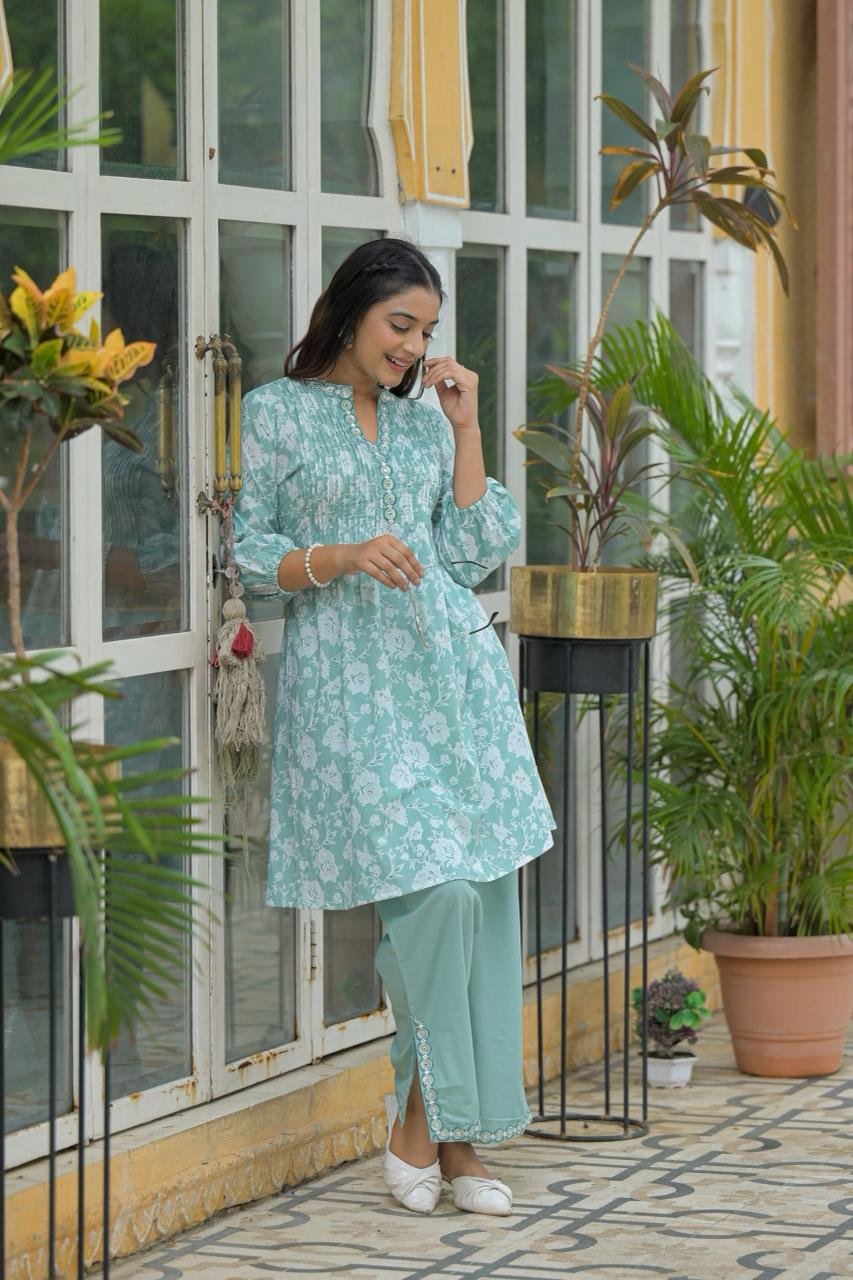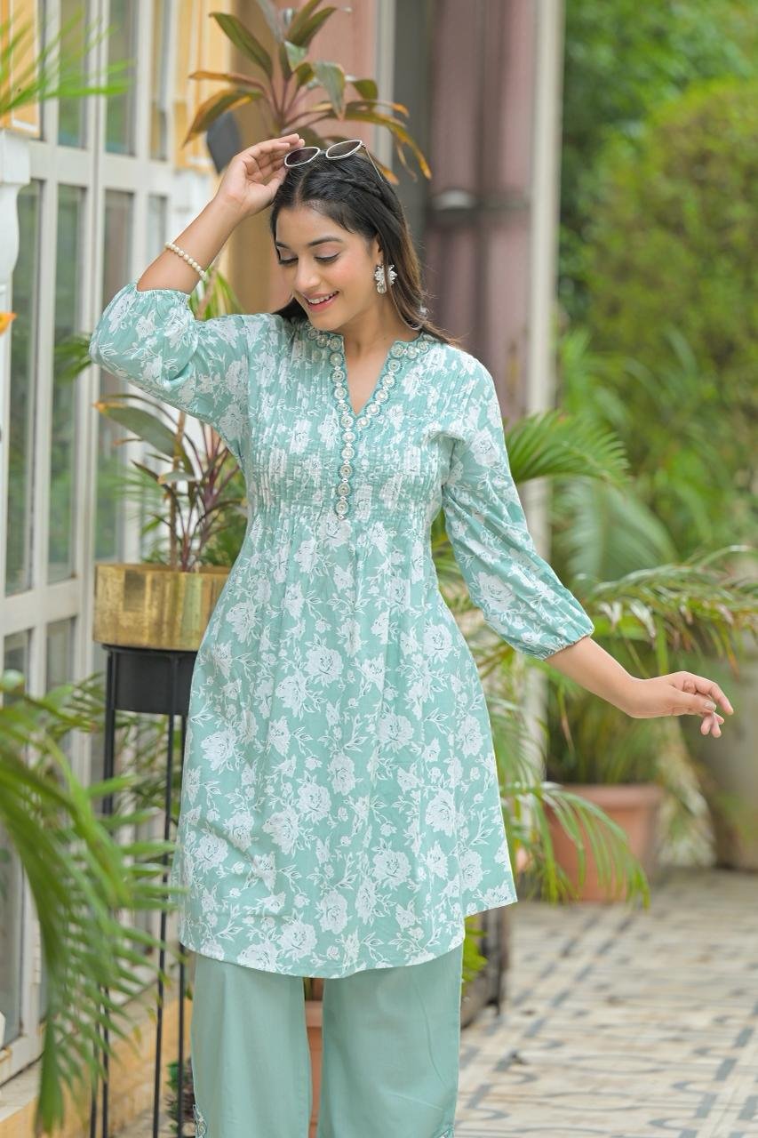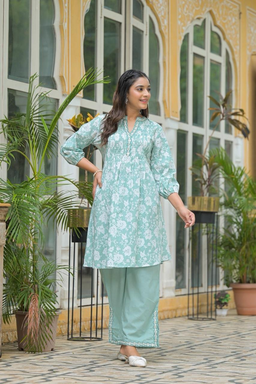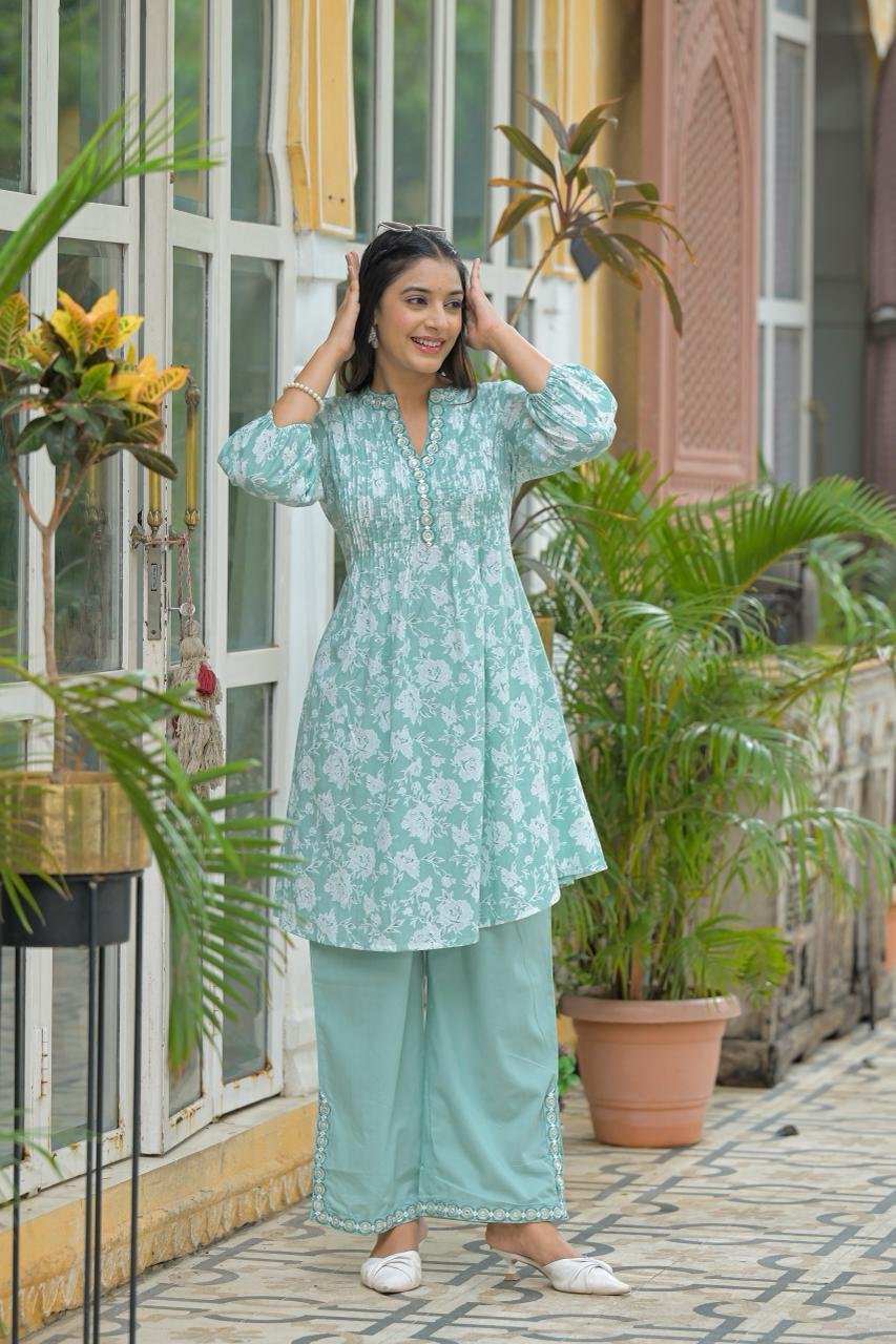 Cotton Co-ord Set with Pintucks & Embroidered Palazzo