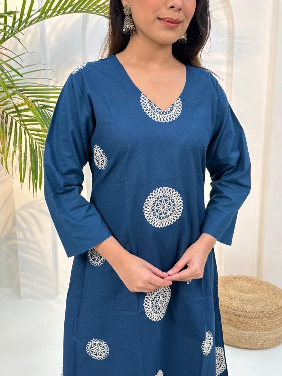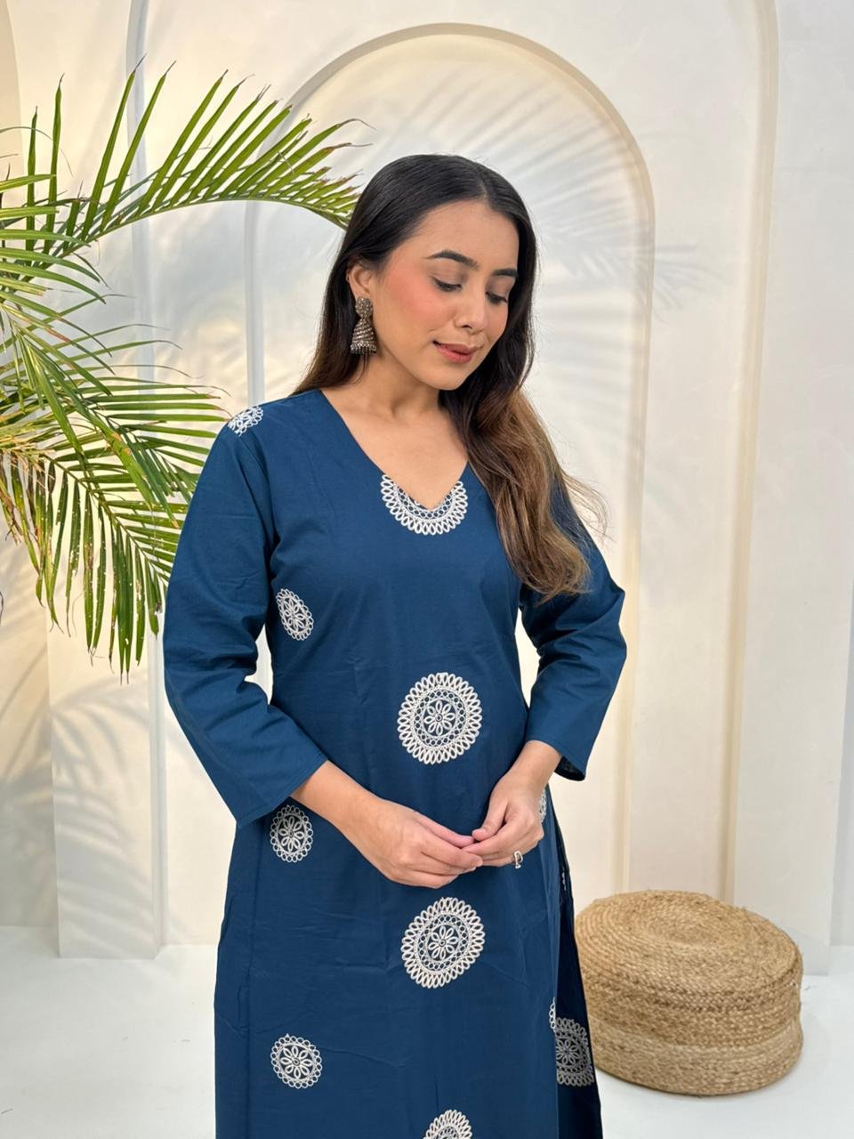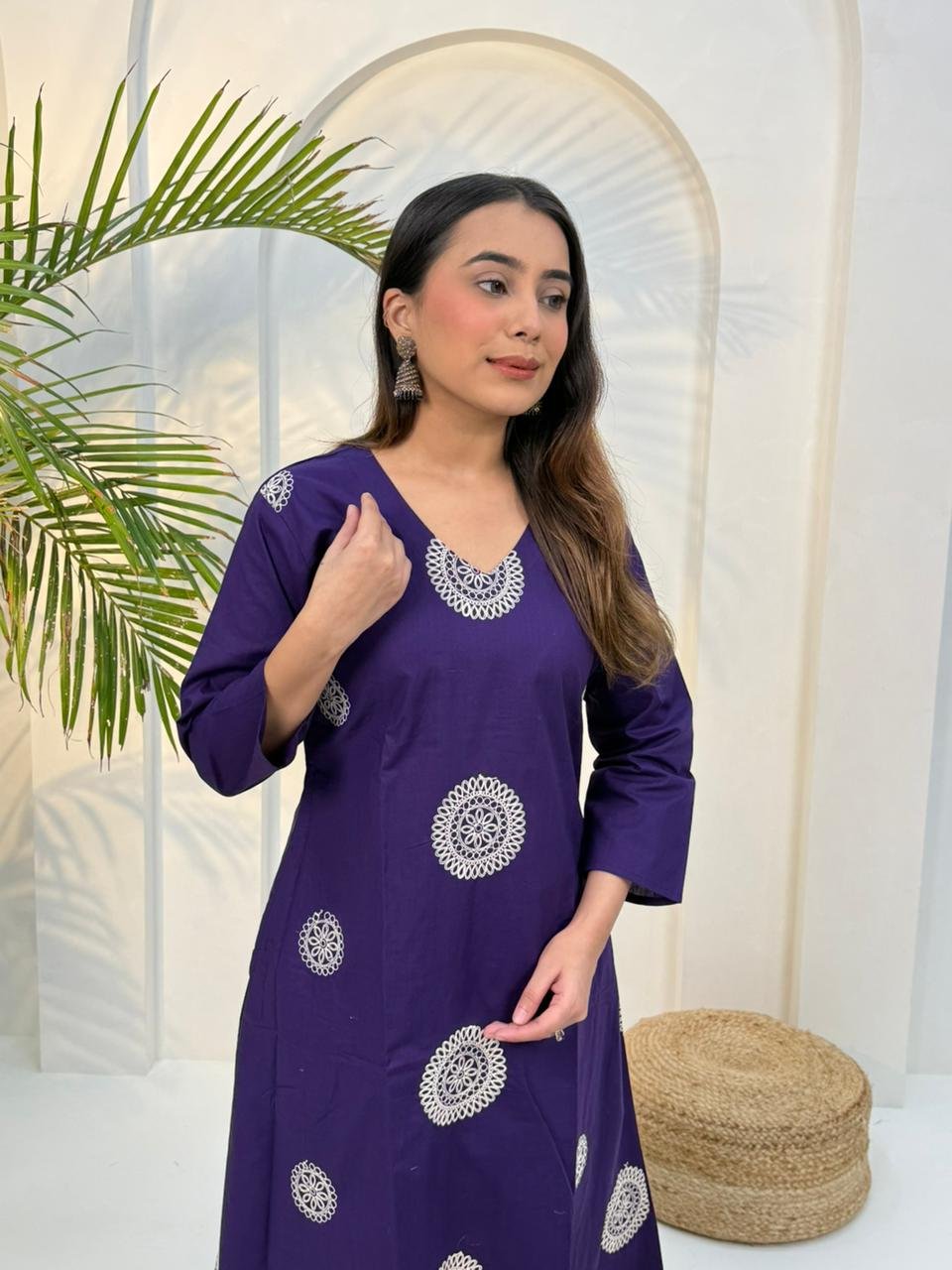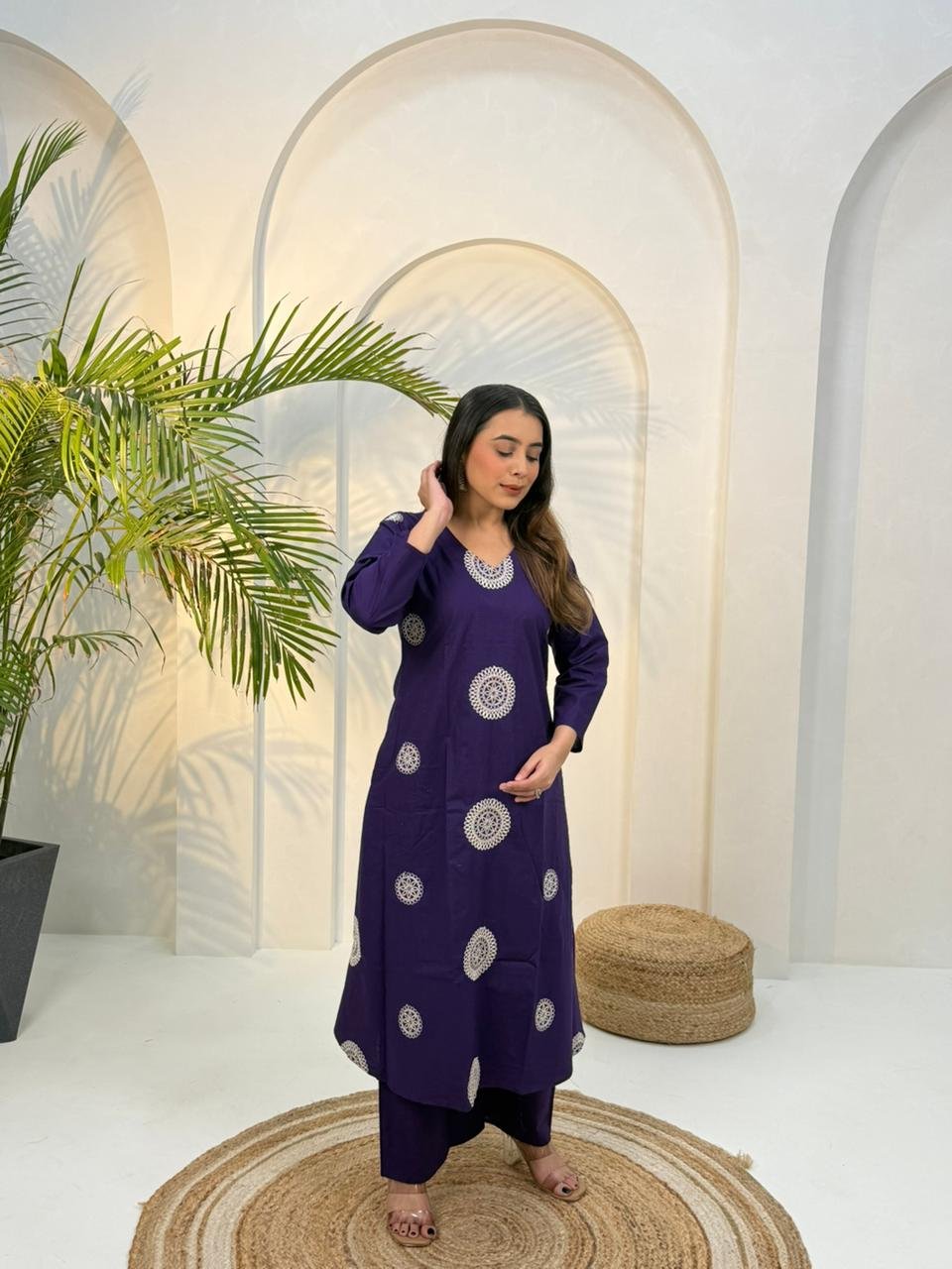 The PS-243 Cotton 2PC Suit Set is the epitome of understated elegance. Featuring beautiful embroidery on soft cotton fabric, it combines comfort and class. The A-line cut flatters every body shape, while the side pocket adds modern functionality.