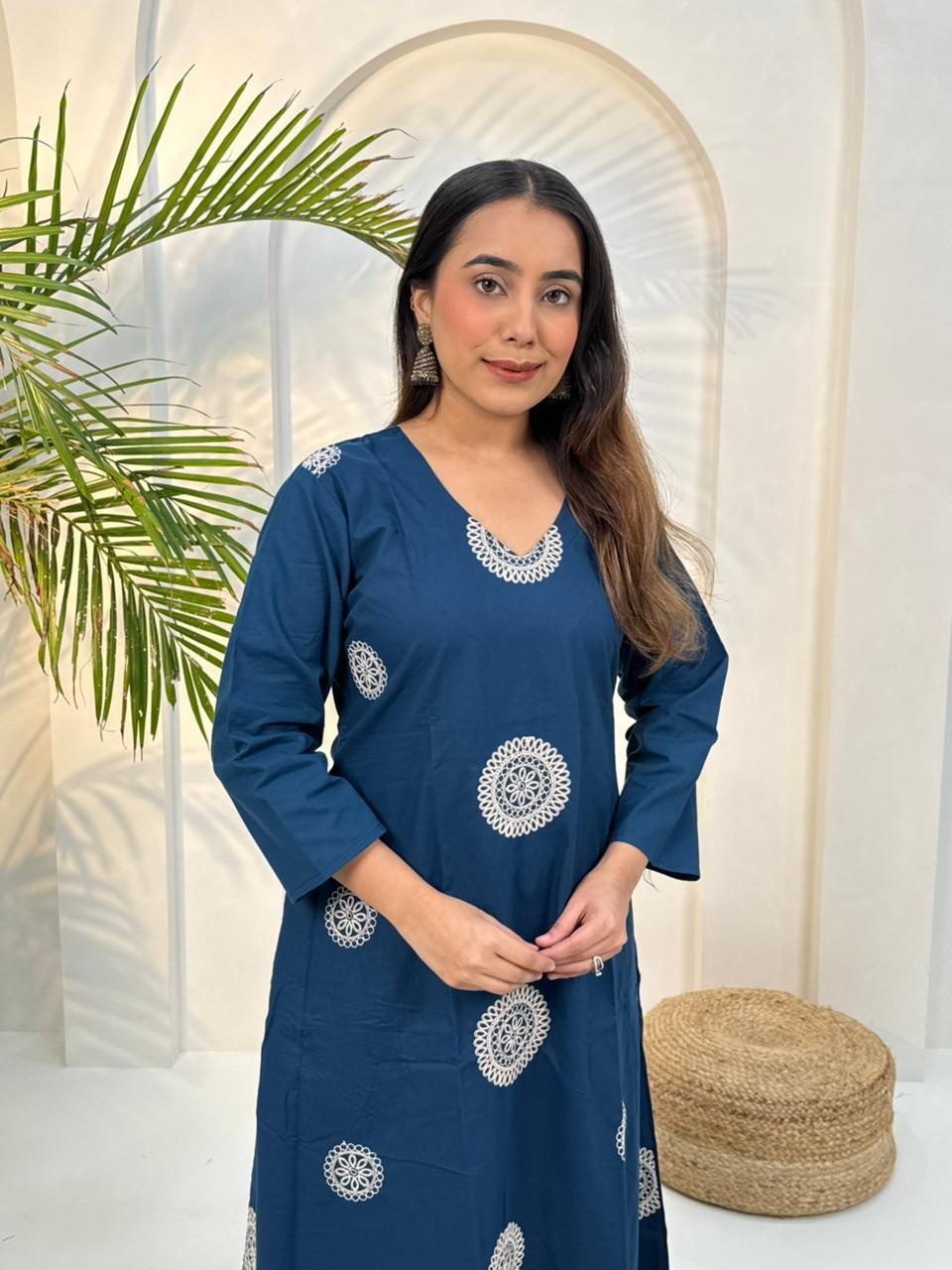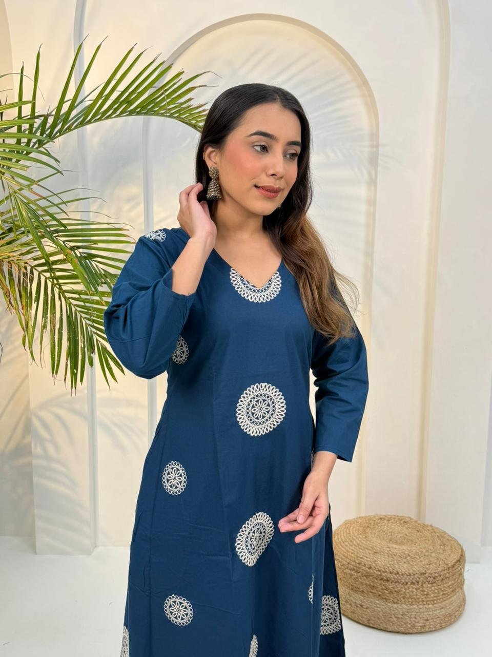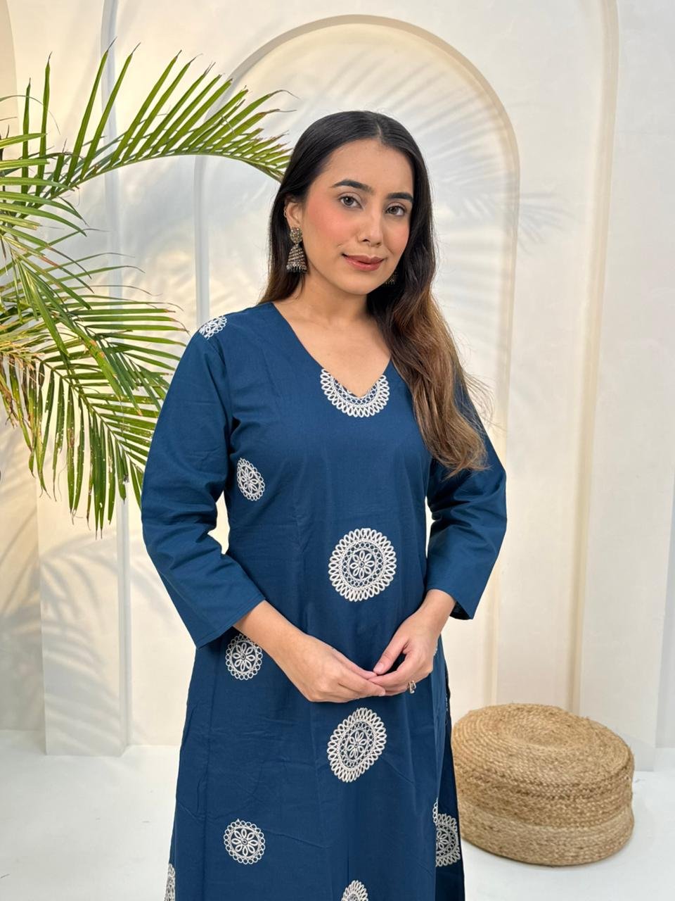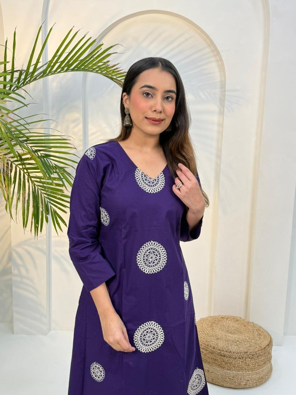 The PS-243 Cotton 2PC Suit Set is the epitome of understated elegance. Featuring beautiful embroidery on soft cotton fabric, it combines comfort and class. The A-line cut flatters every body shape, while the side pocket adds modern functionality.