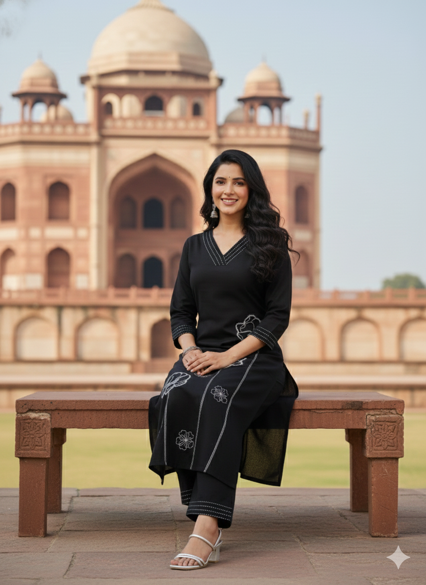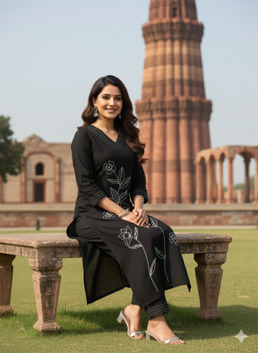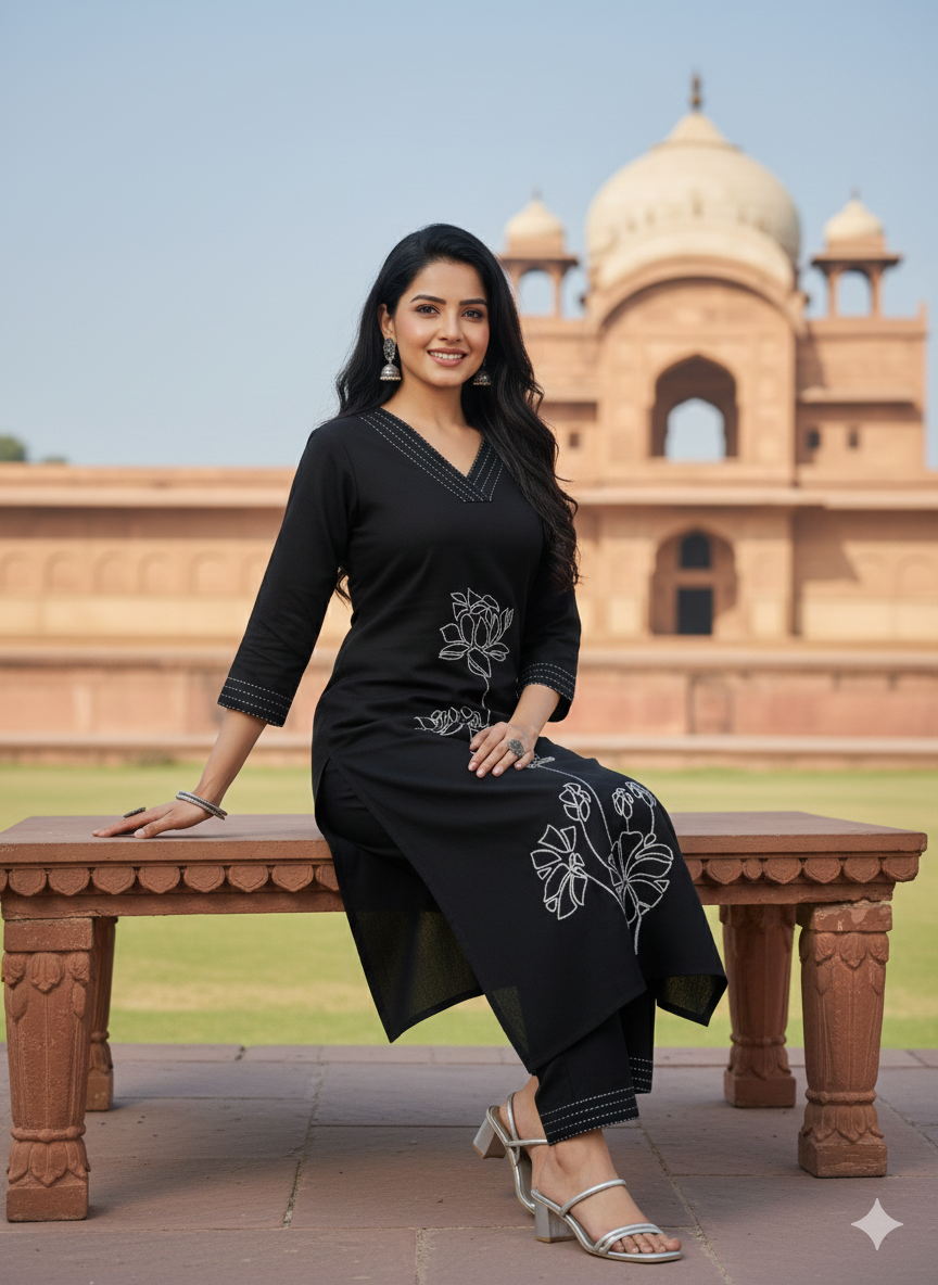Available in three striking shades — BLK 1, BLK 2, and BLK 3 — this outfit lets you choose the level of boldness and elegance that suits your style. Its timeless design and premium fabric make it a versatile addition to your ethnic wardrobe.