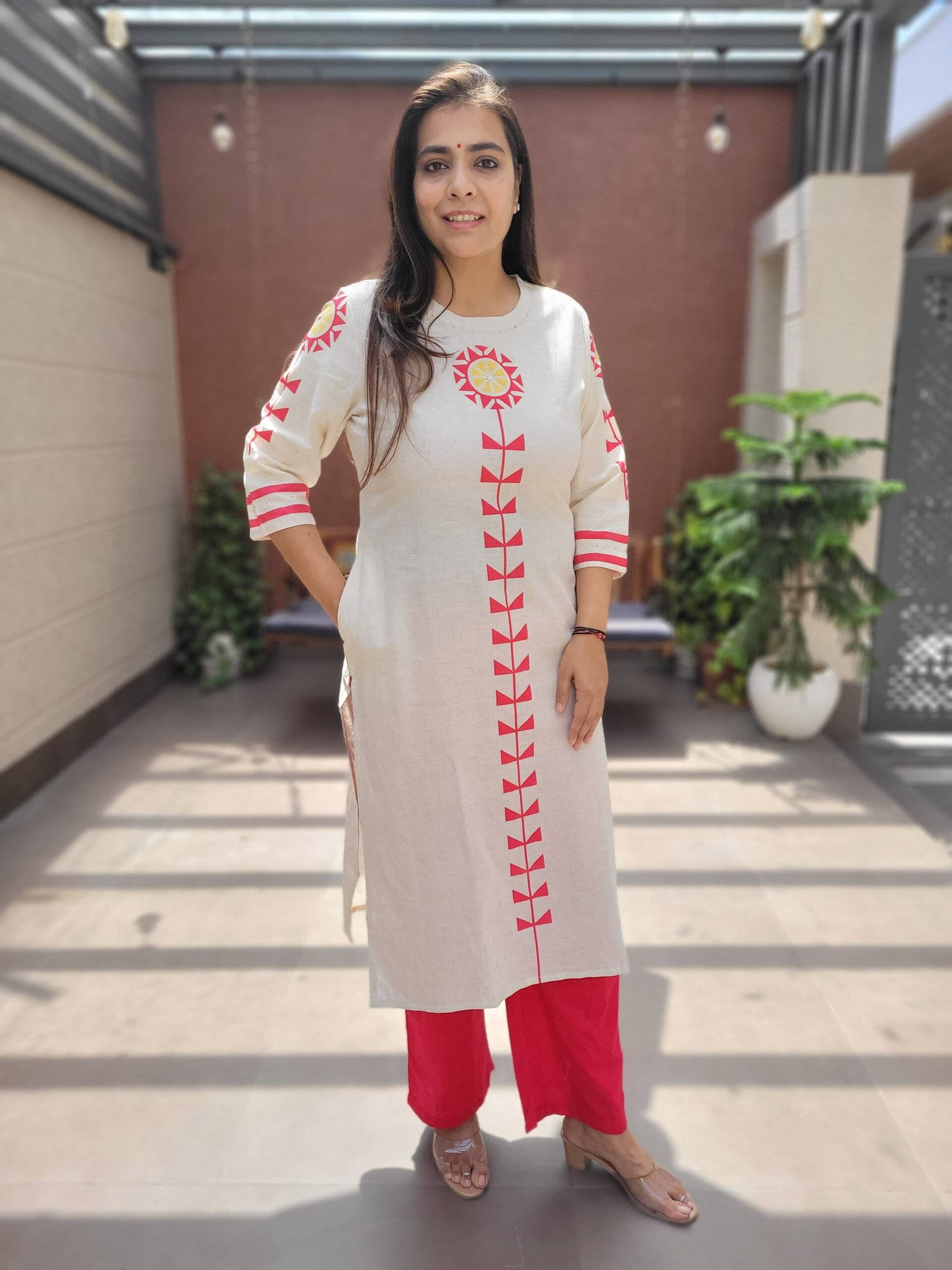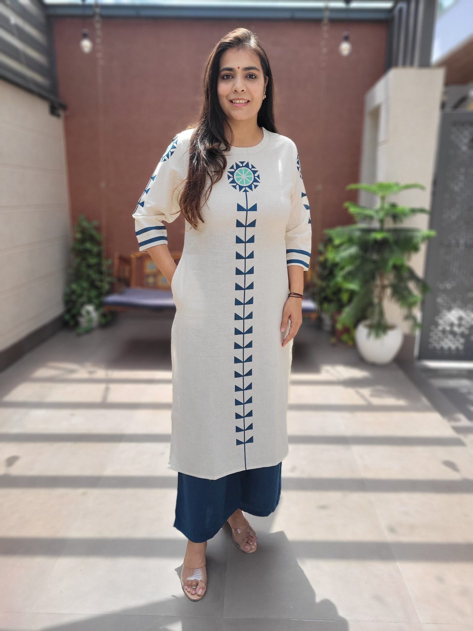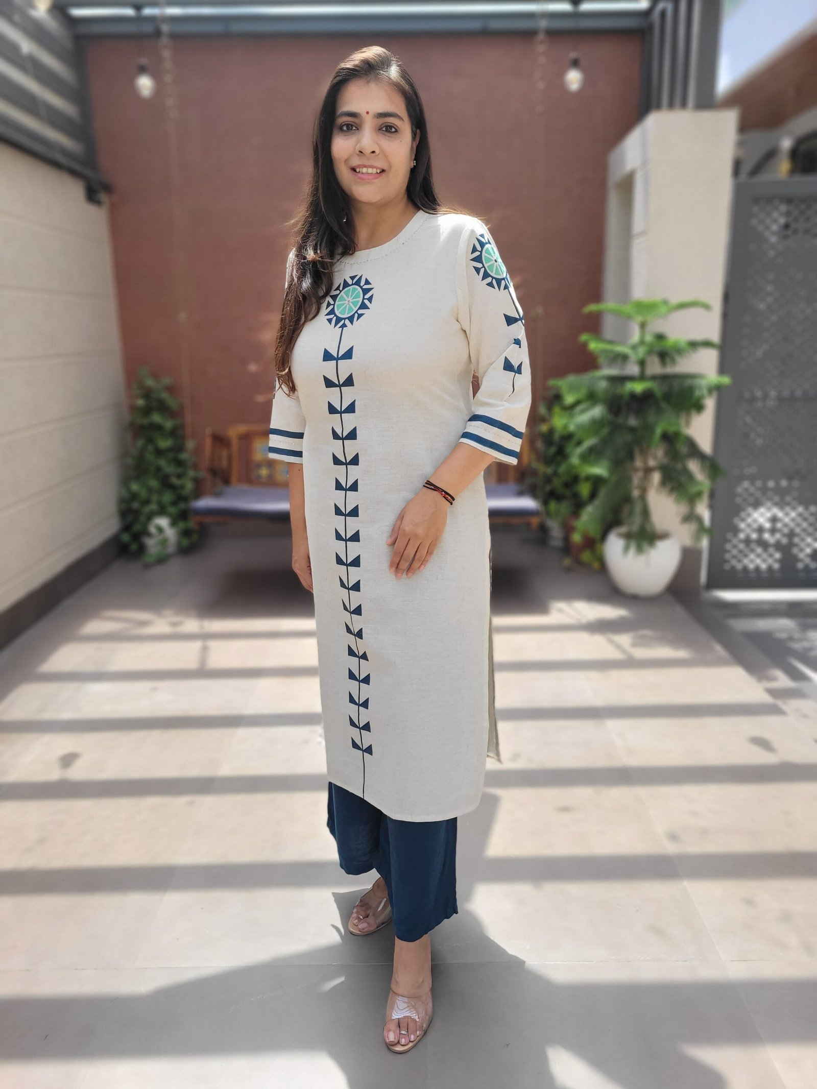 Cotton Flex Kurti with Kantha Work & Urban Print