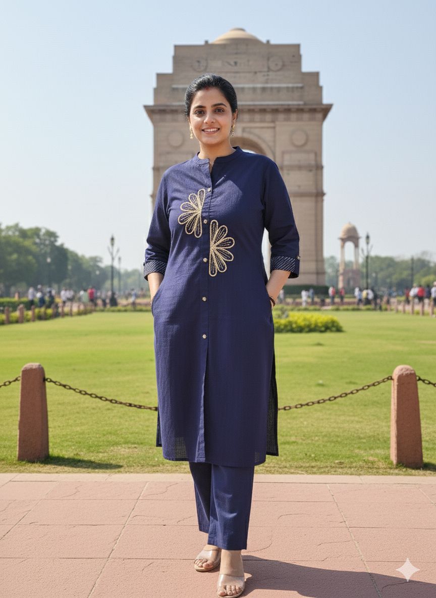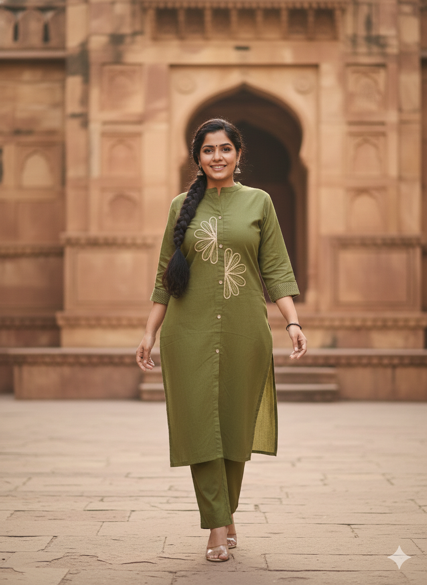 The kurta features subtle dori work, adding handcrafted charm without overpowering the design. This versatile set is perfect for daily wear, office routines, casual outings, or relaxed home wear, making it a wardrobe essential.