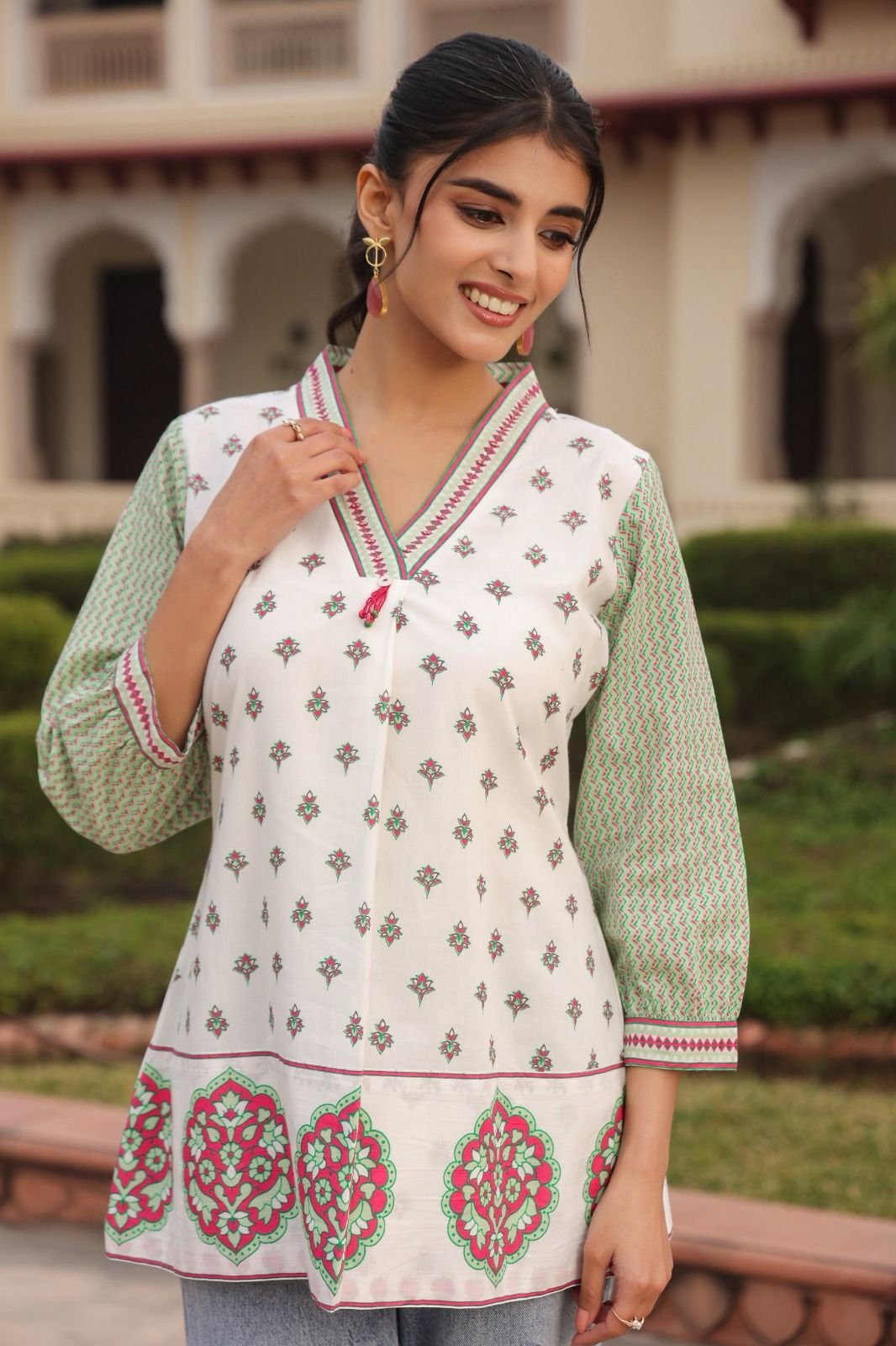 Care Tips: Gentle hand wash recommended to preserve handwork and fabric softness.