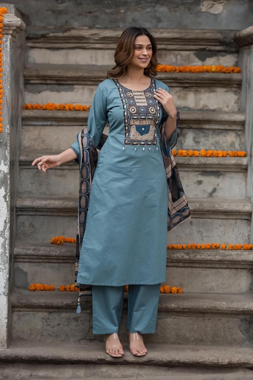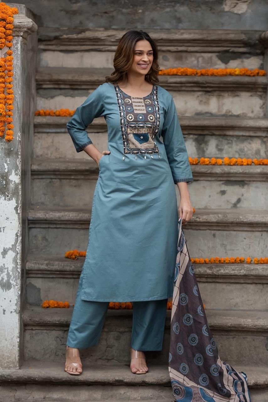 The kurta features handwork on the yoke, along with double pockets that add both style and functionality. Ideal for daily wear, office styling, and casual ethnic outings.