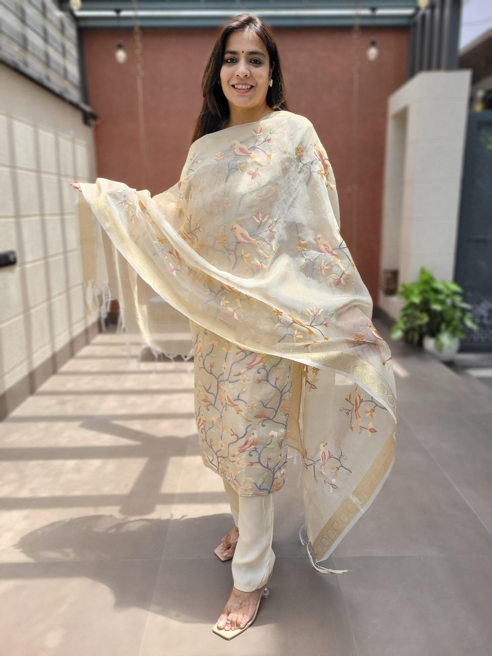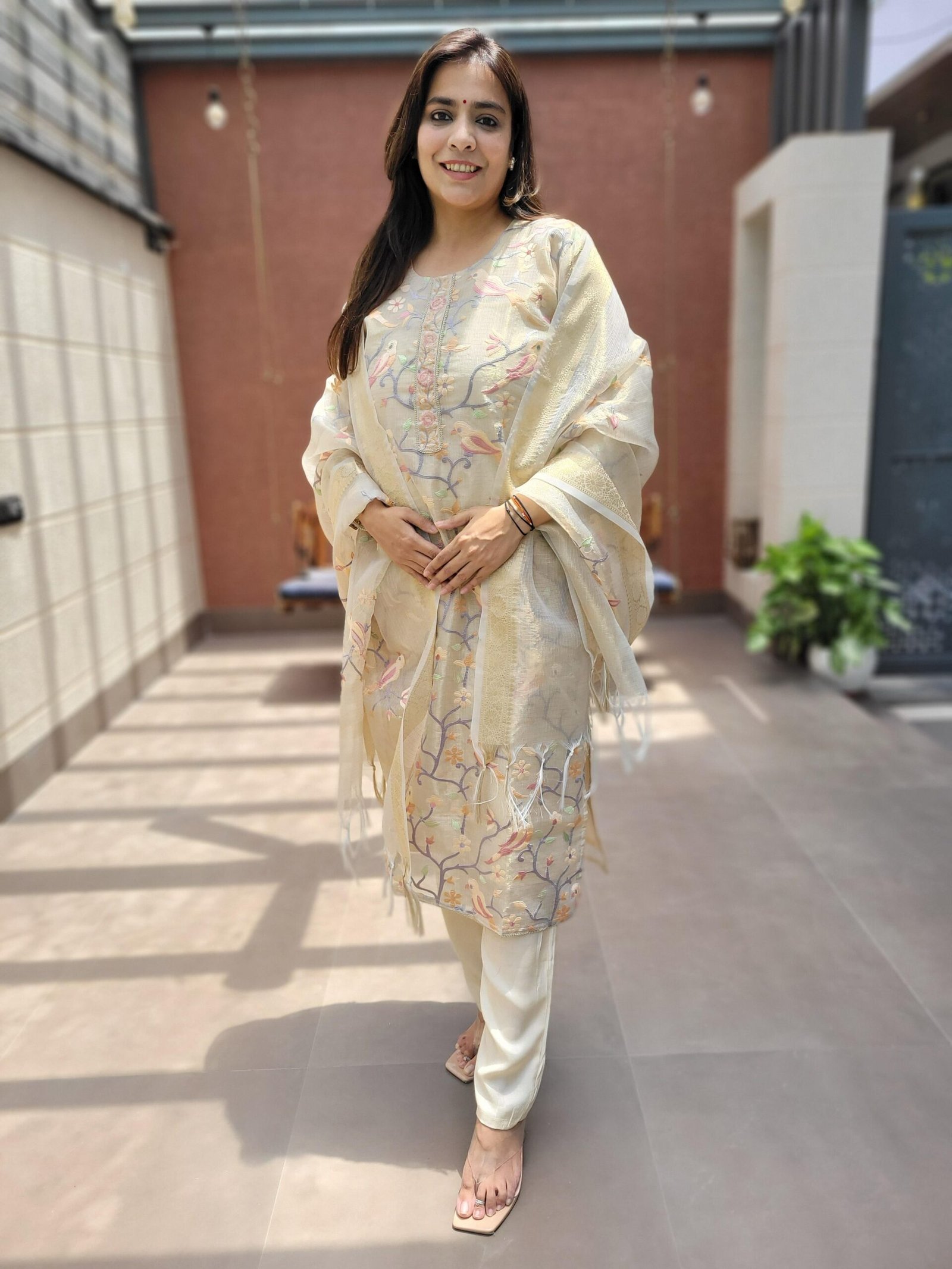 Designed with cotton lining, this set ensures comfort without compromising on elegance. Perfect for parties, festive gatherings, or traditional celebrations, its gold shimmer finish adds a radiant charm to your ethnic wardrobe.