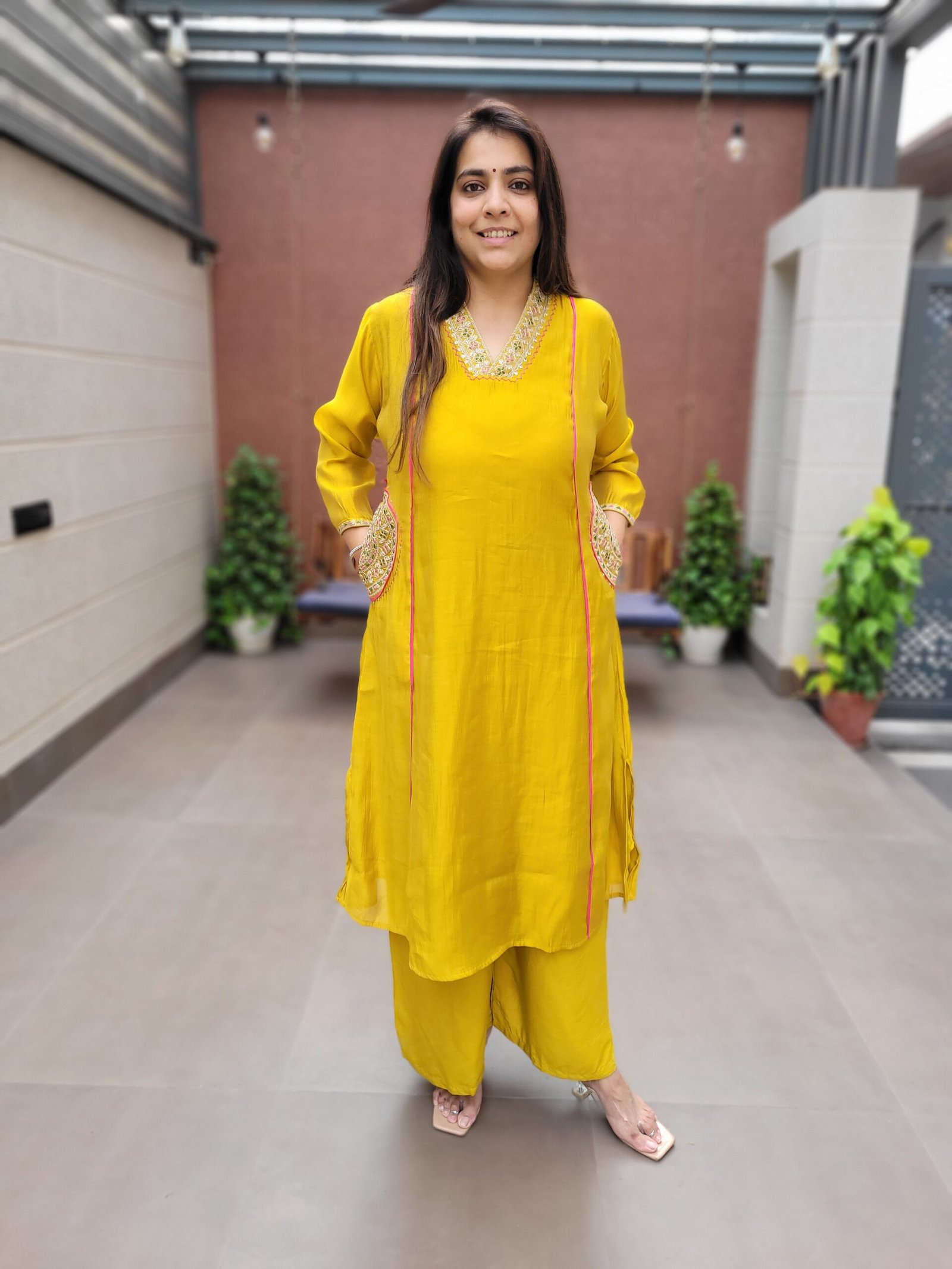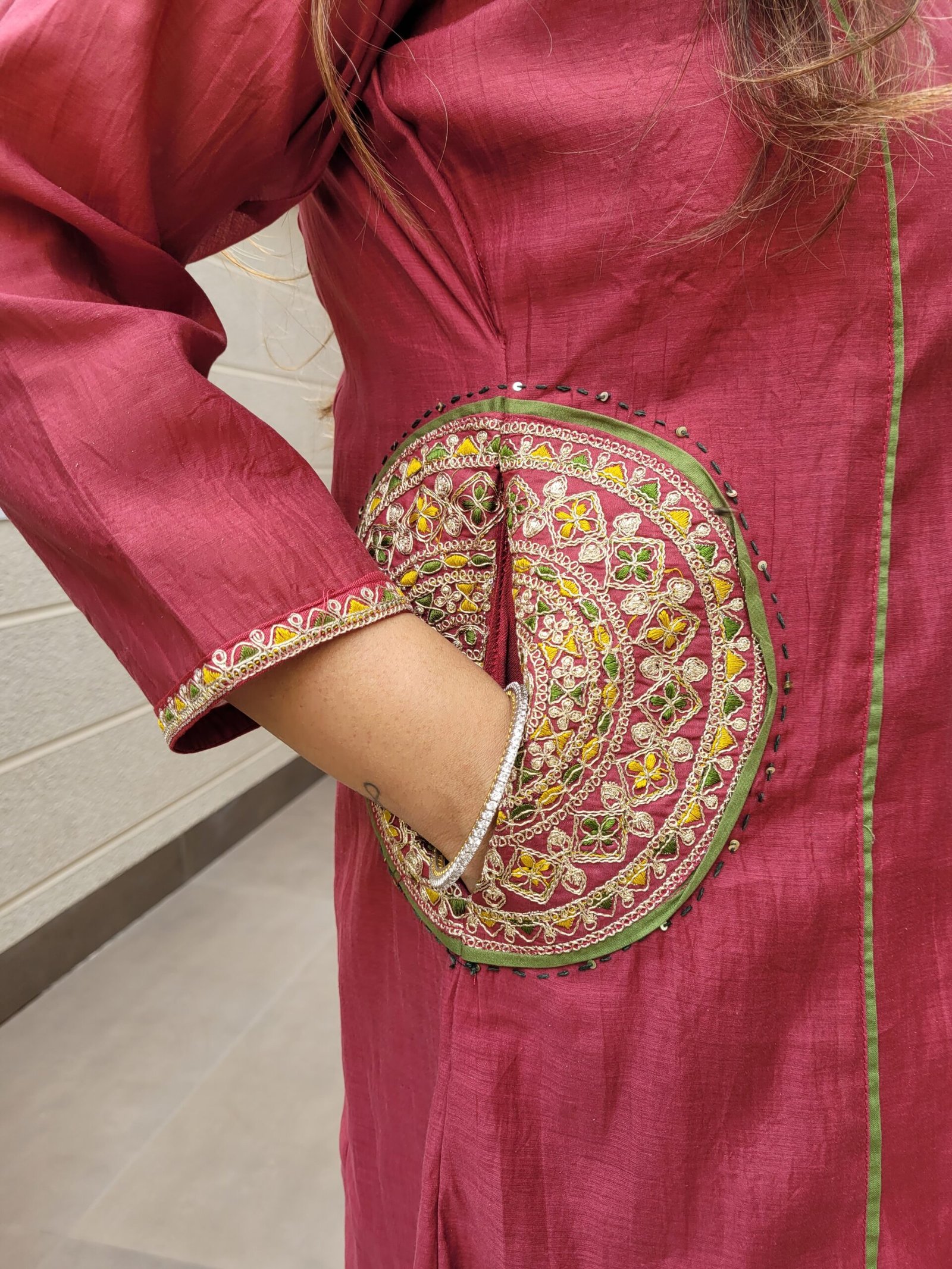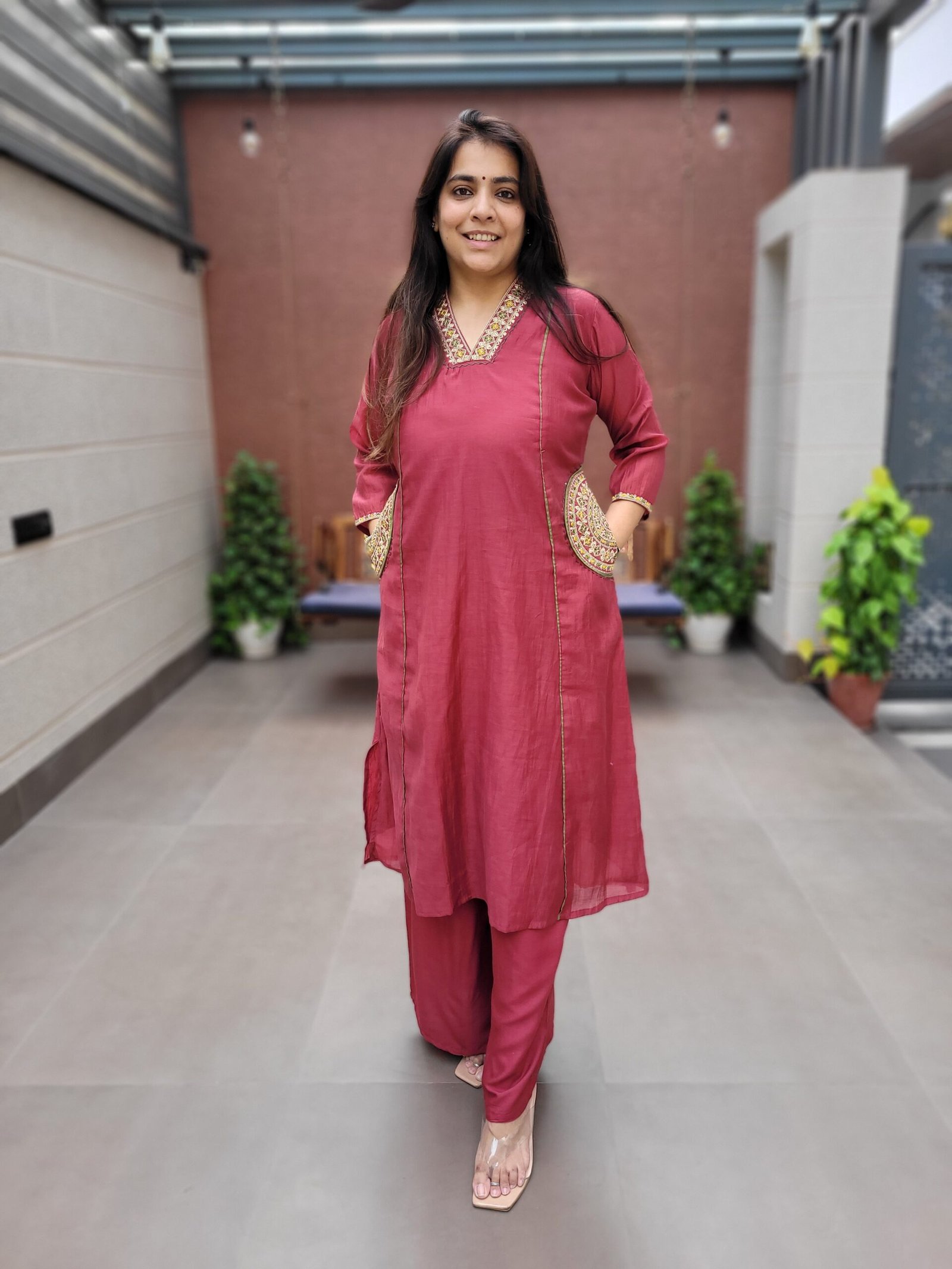 Care Instructions: Dry clean only to maintain the fabric’s sheen and embroidery details.
