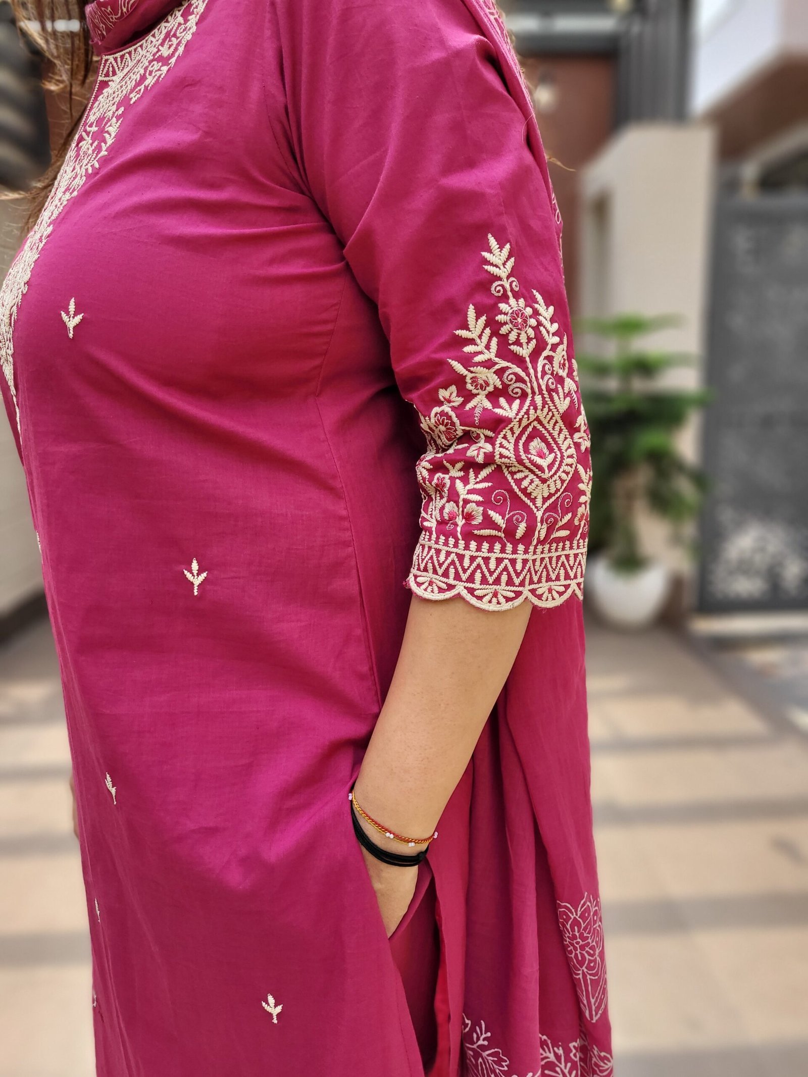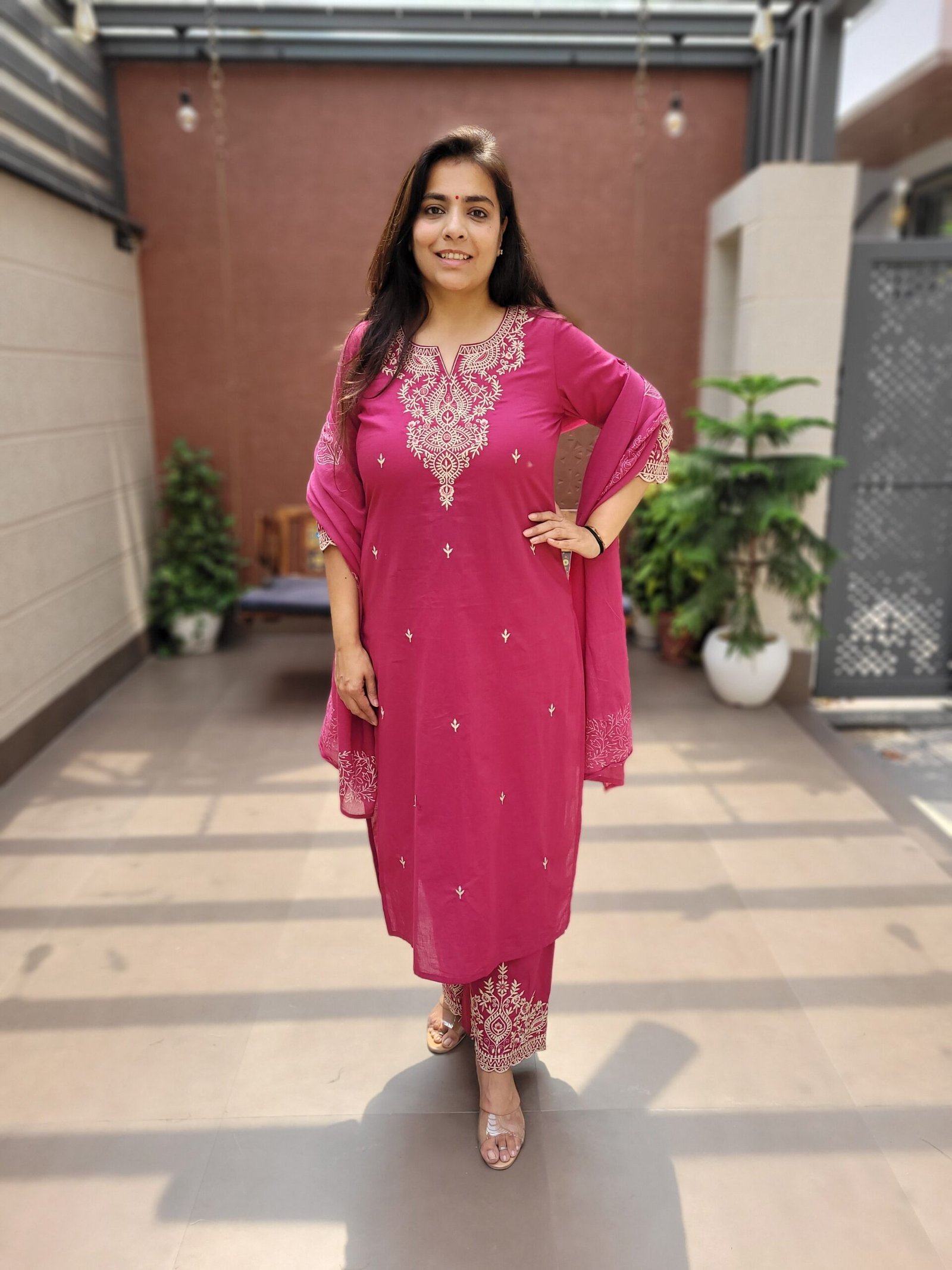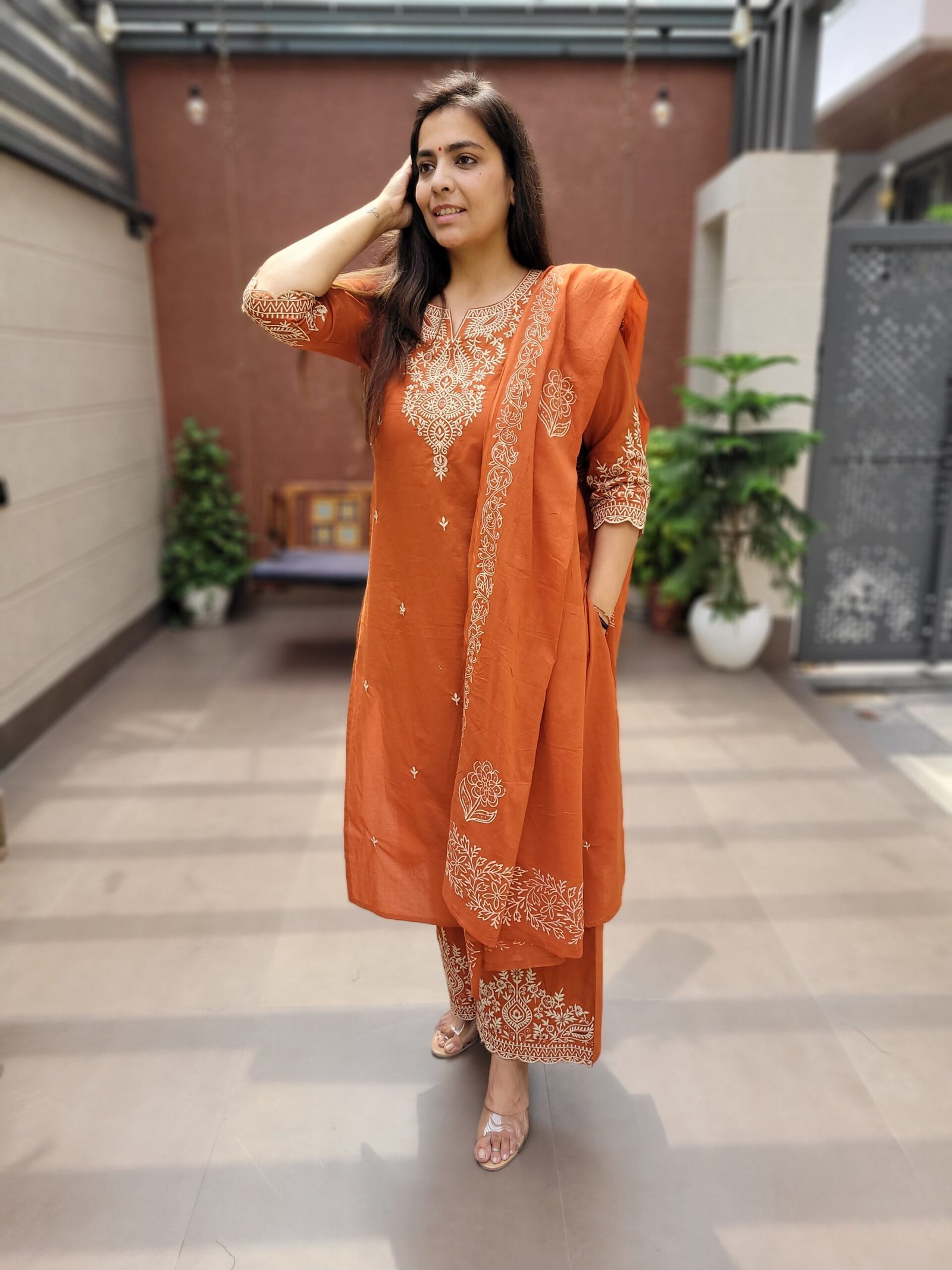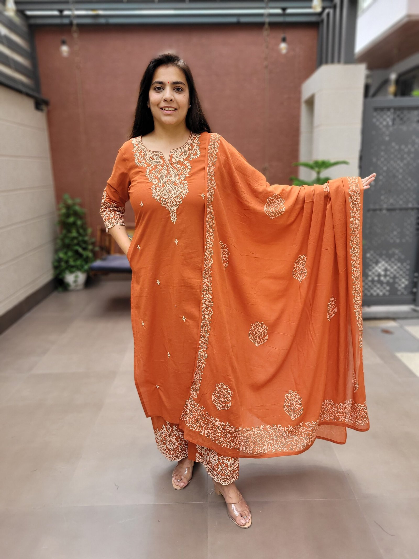 The DU-080 Embroidered 3PC Set is designed for a rich and elegant ethnic look. Crafted from cotton fabric, it ensures comfort along with style.