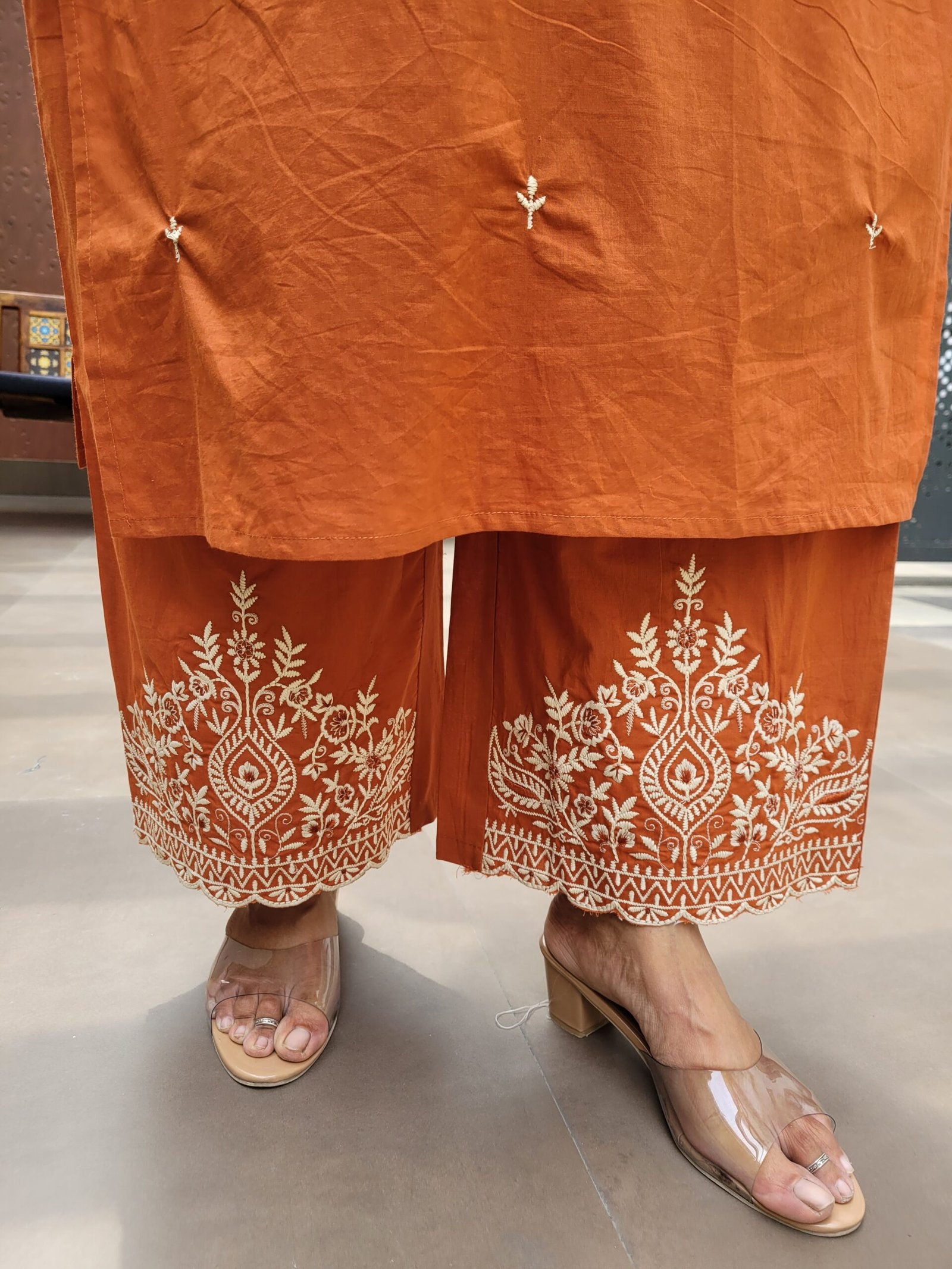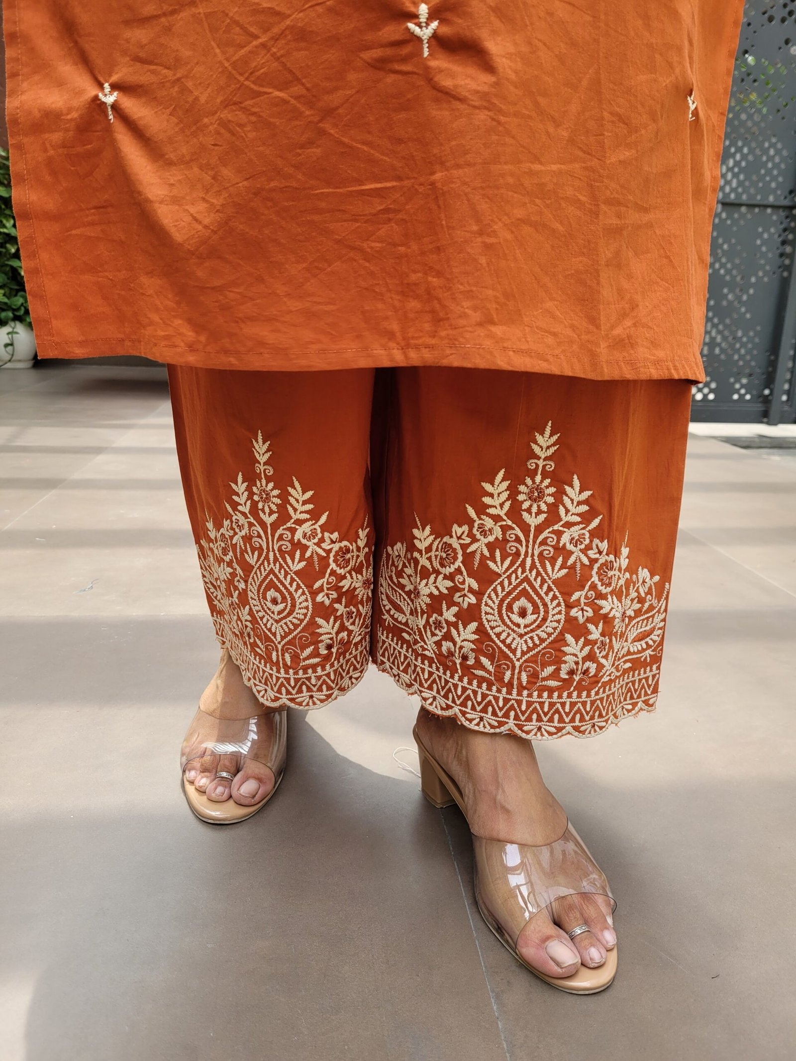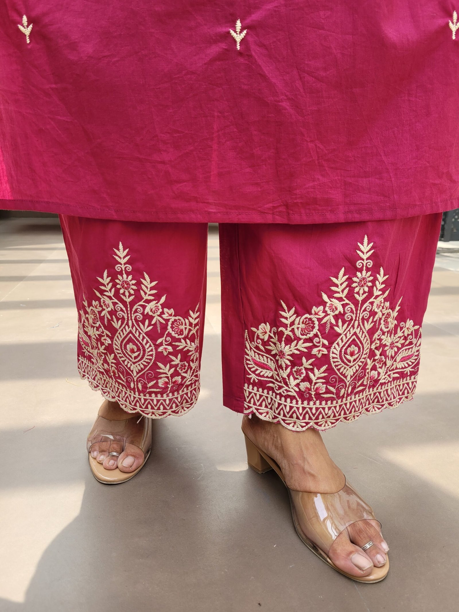 The kurta and palazzo feature beautiful embroidery, while the handblock dupatta adds a traditional touch. Ideal for festive occasions, family functions, and celebrations.