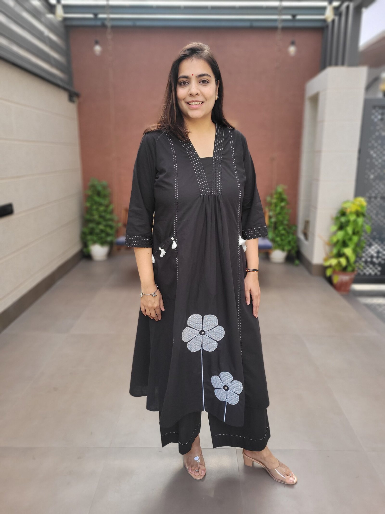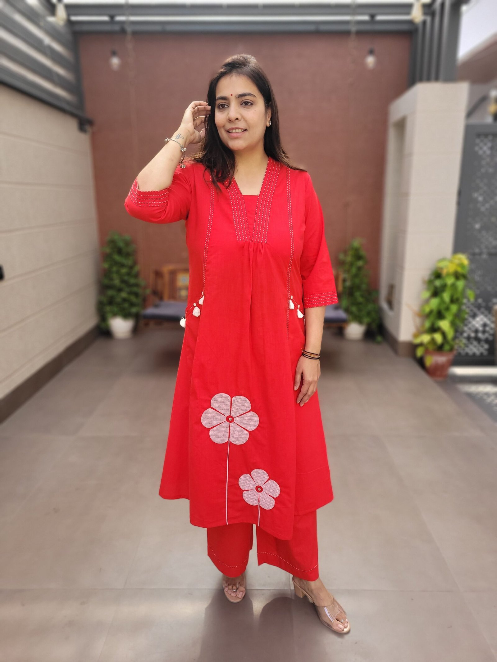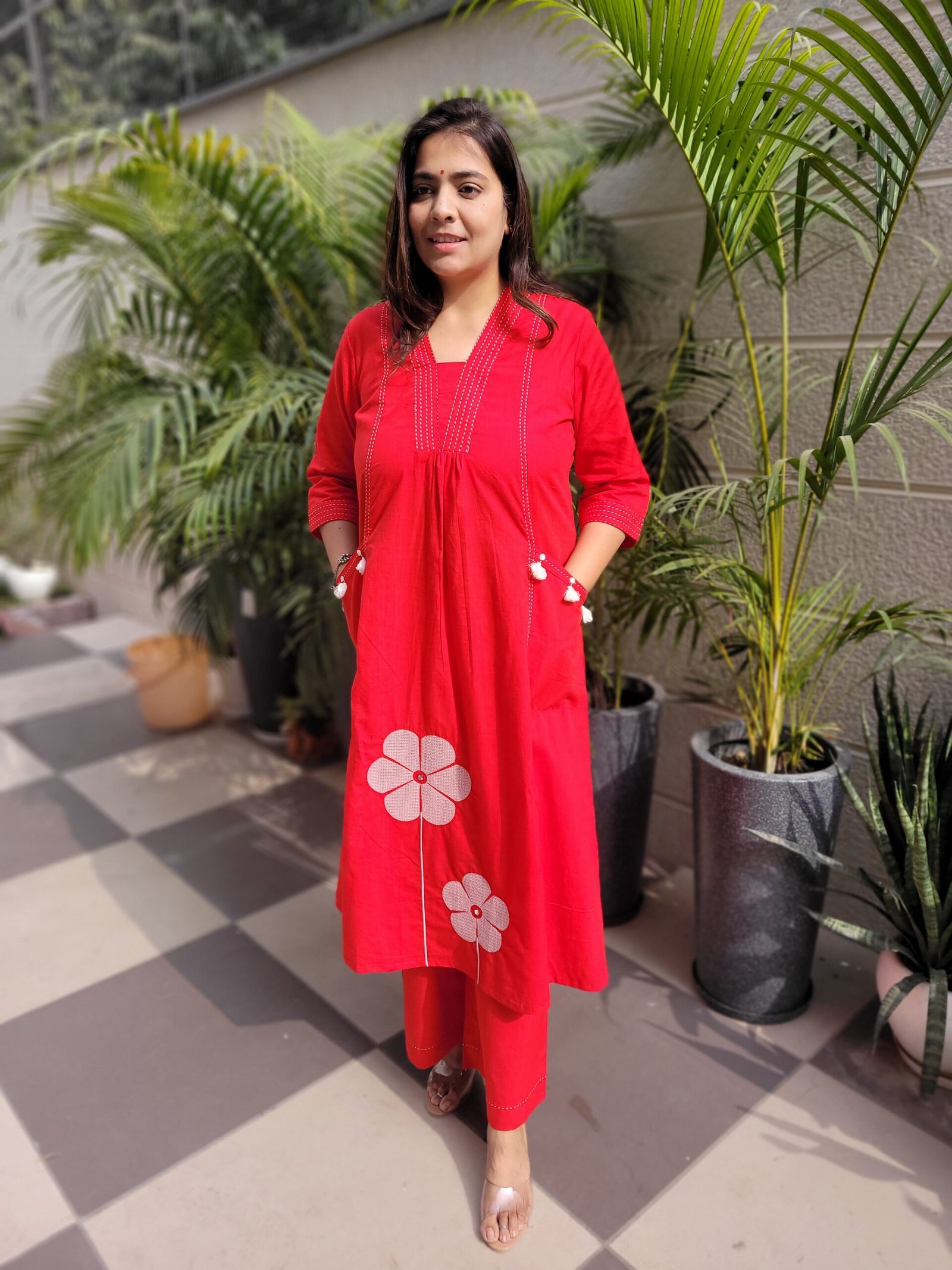 Designed with two front pockets for practicality and an A-line silhouette for elegance, this set is perfect for casual gatherings, workwear, and festive day events.