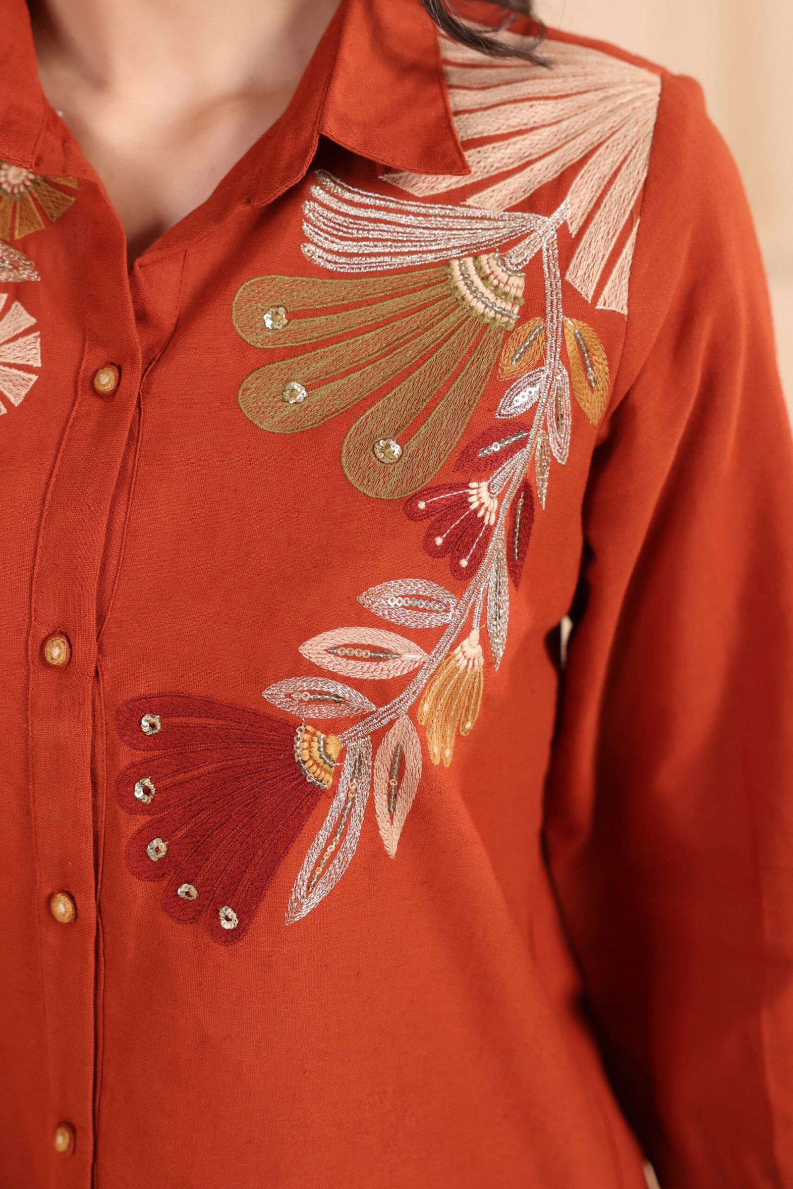 The CS-057 Embroidered Co-Ord Set blends contemporary styling with handcrafted detailing. Crafted from cotton flex fabric, this co-ord set features tasteful embroidery and handwork, offering a refined yet relaxed look.