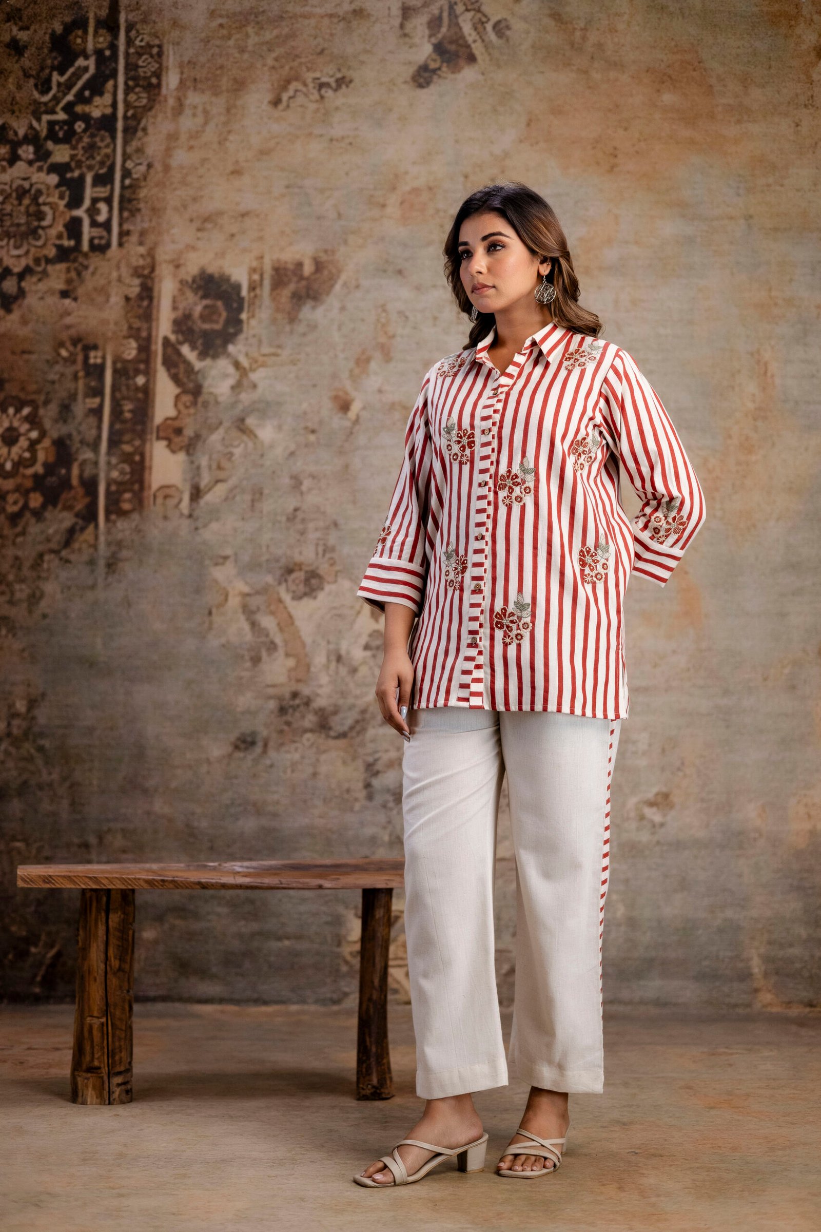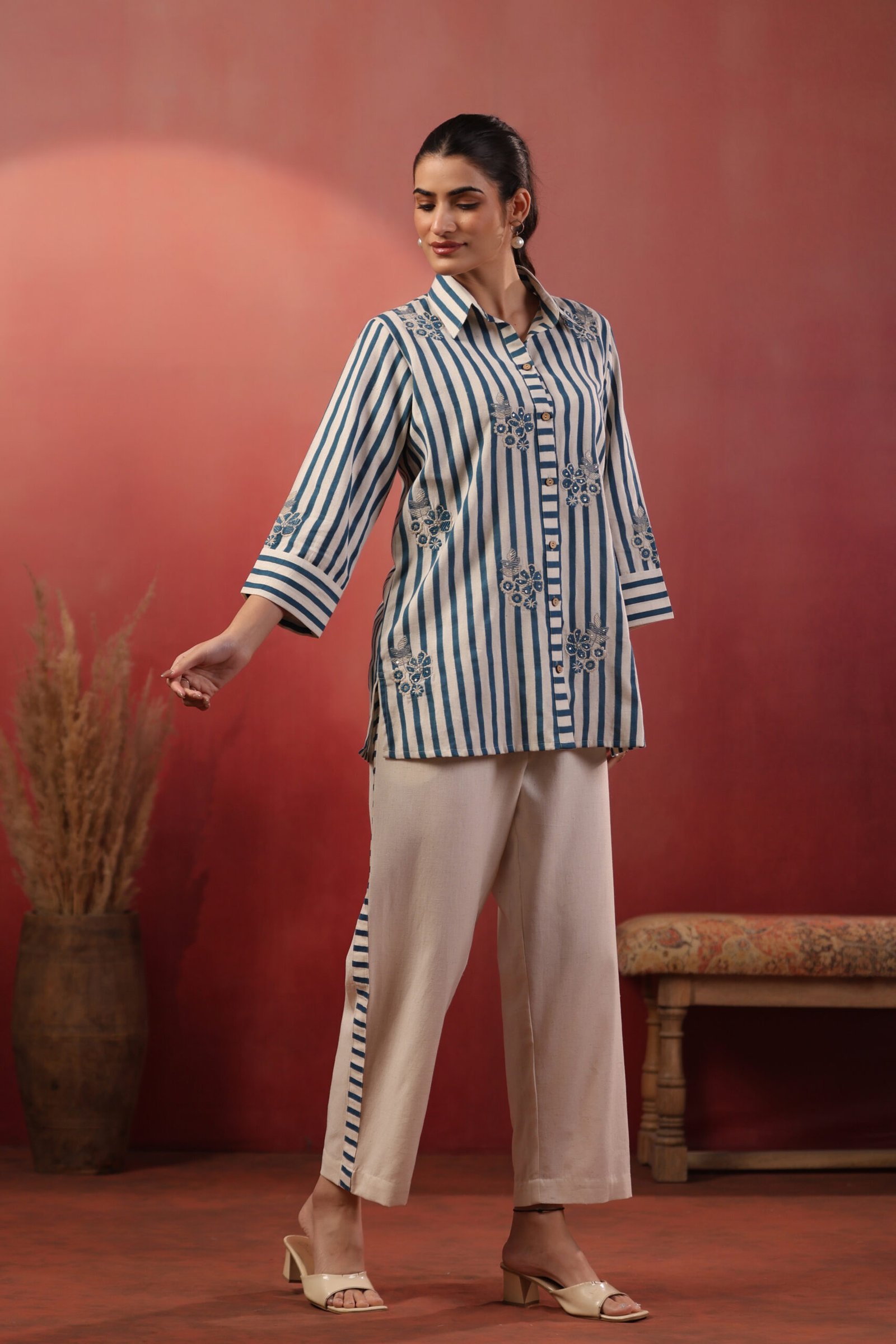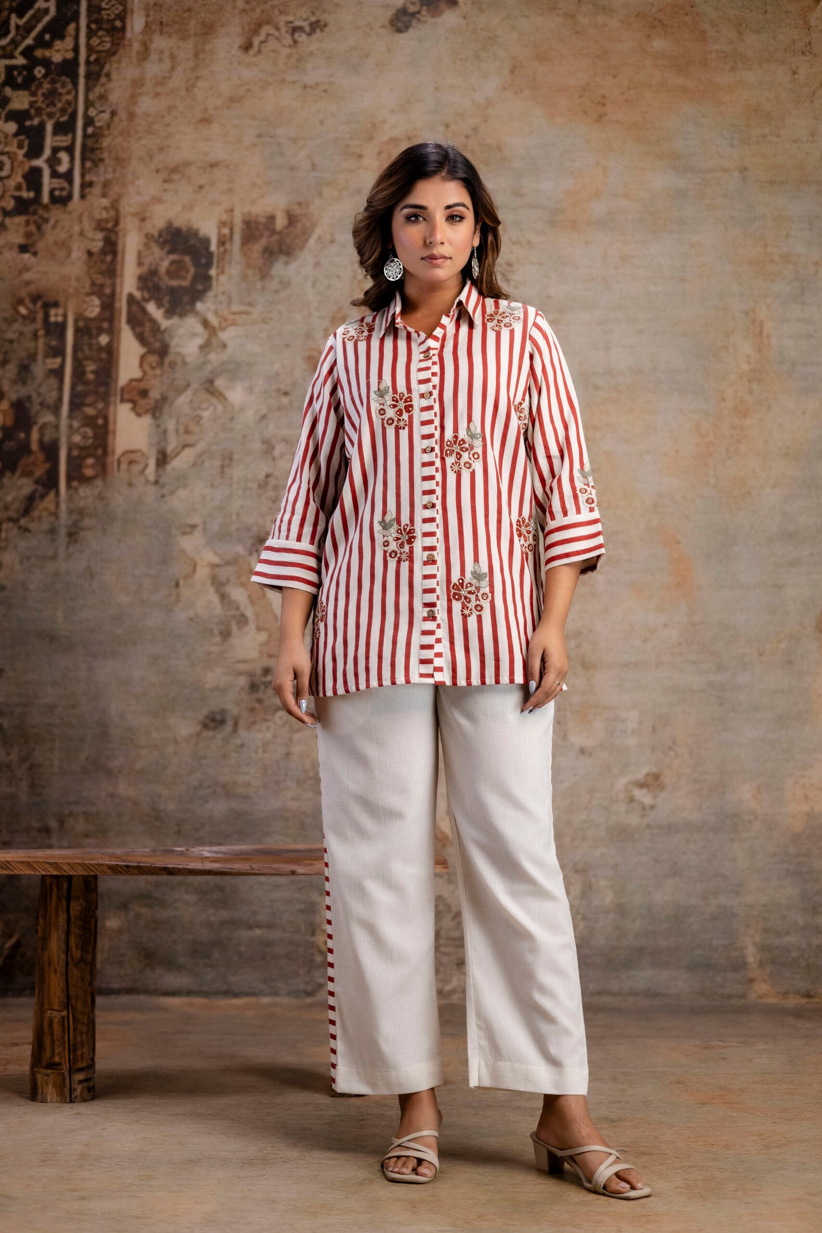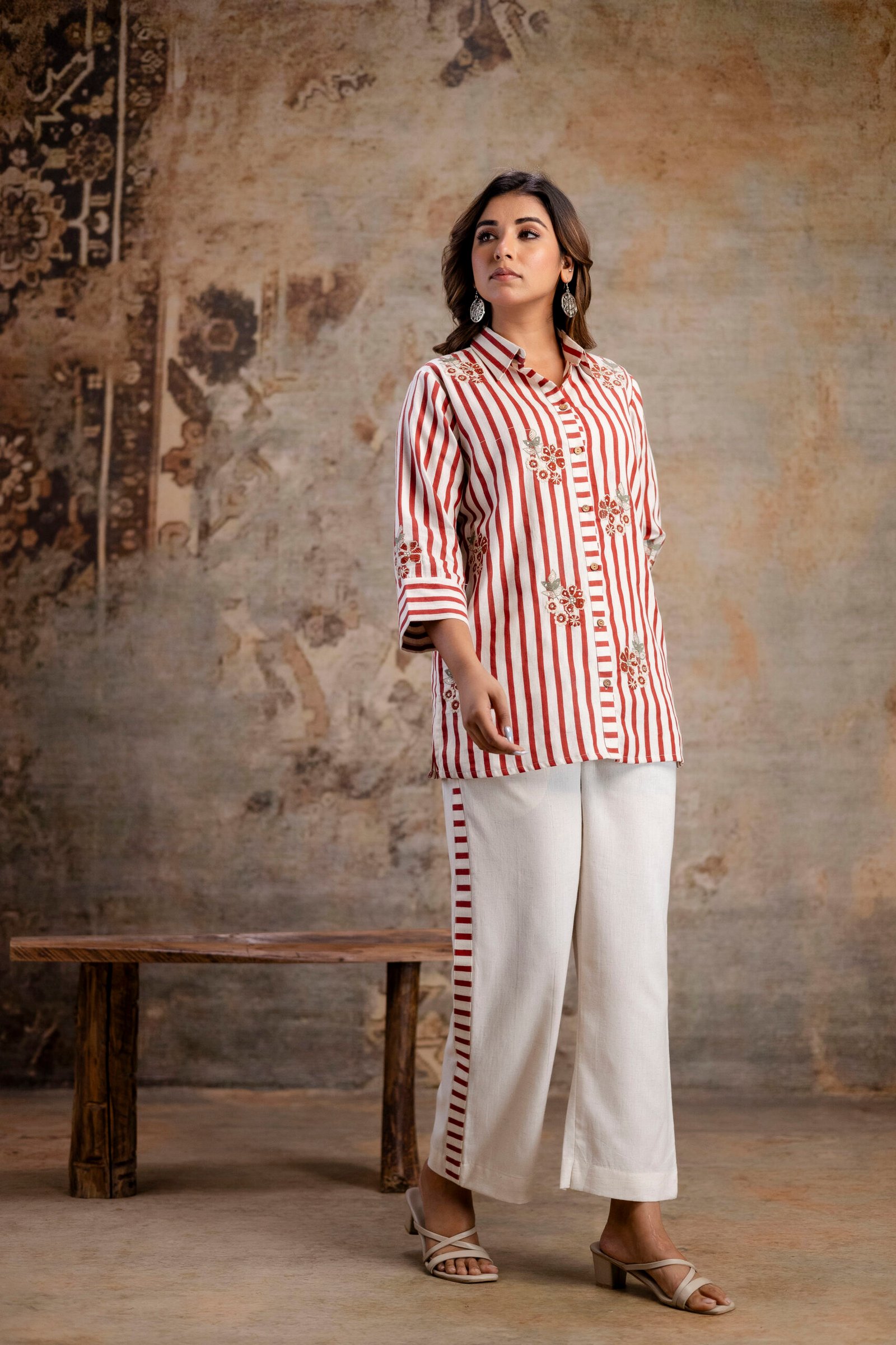 Enhanced with elegant embroidery, the set brings a refined ethnic touch while maintaining a modern silhouette. The coordinated design creates a polished, put-together look that works beautifully for casual outings, office wear, travel, and day events.