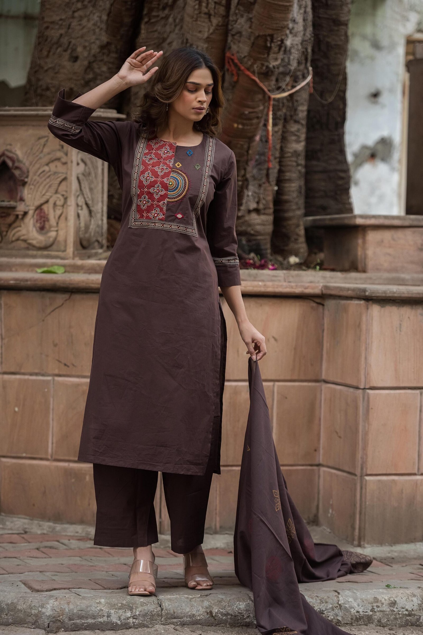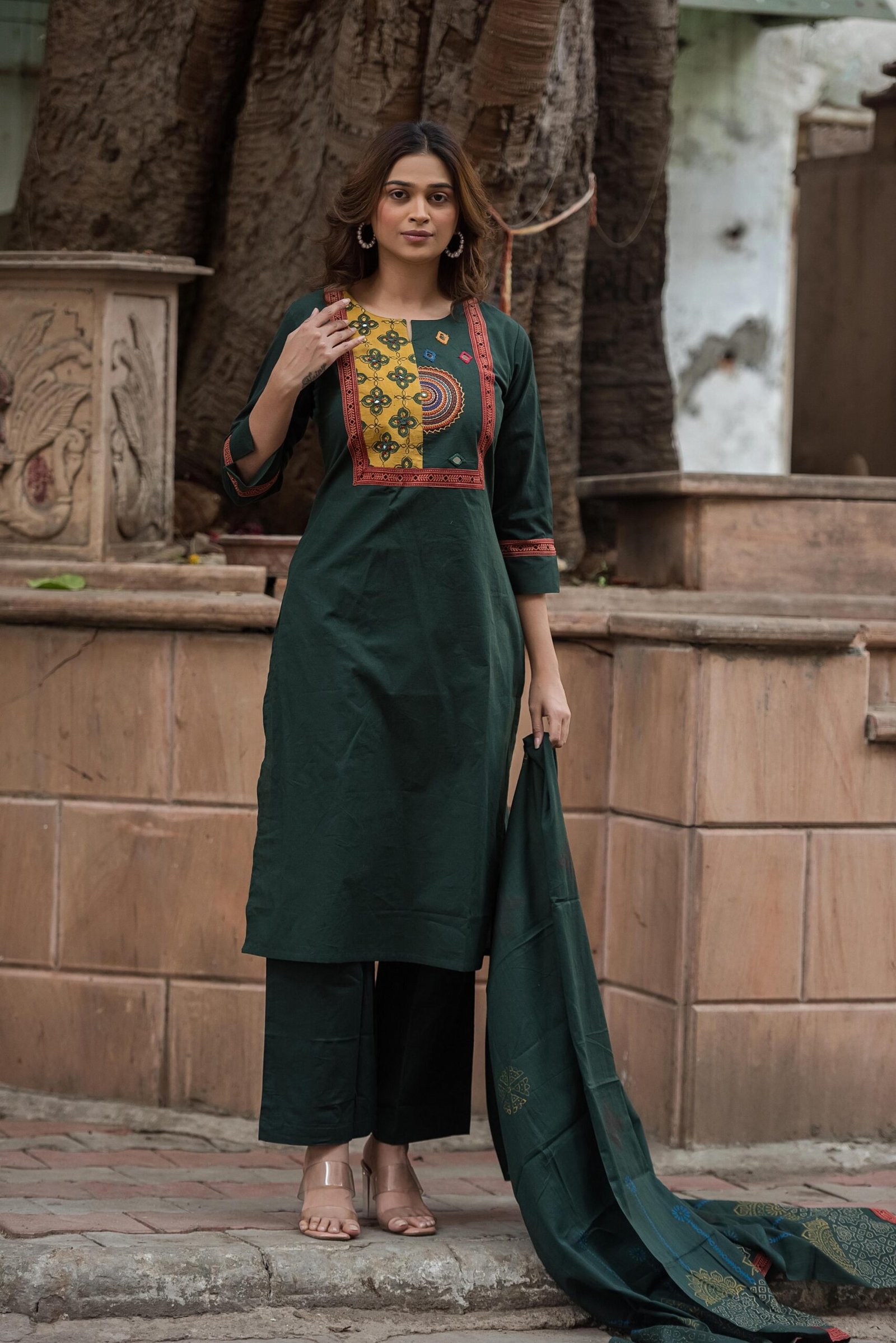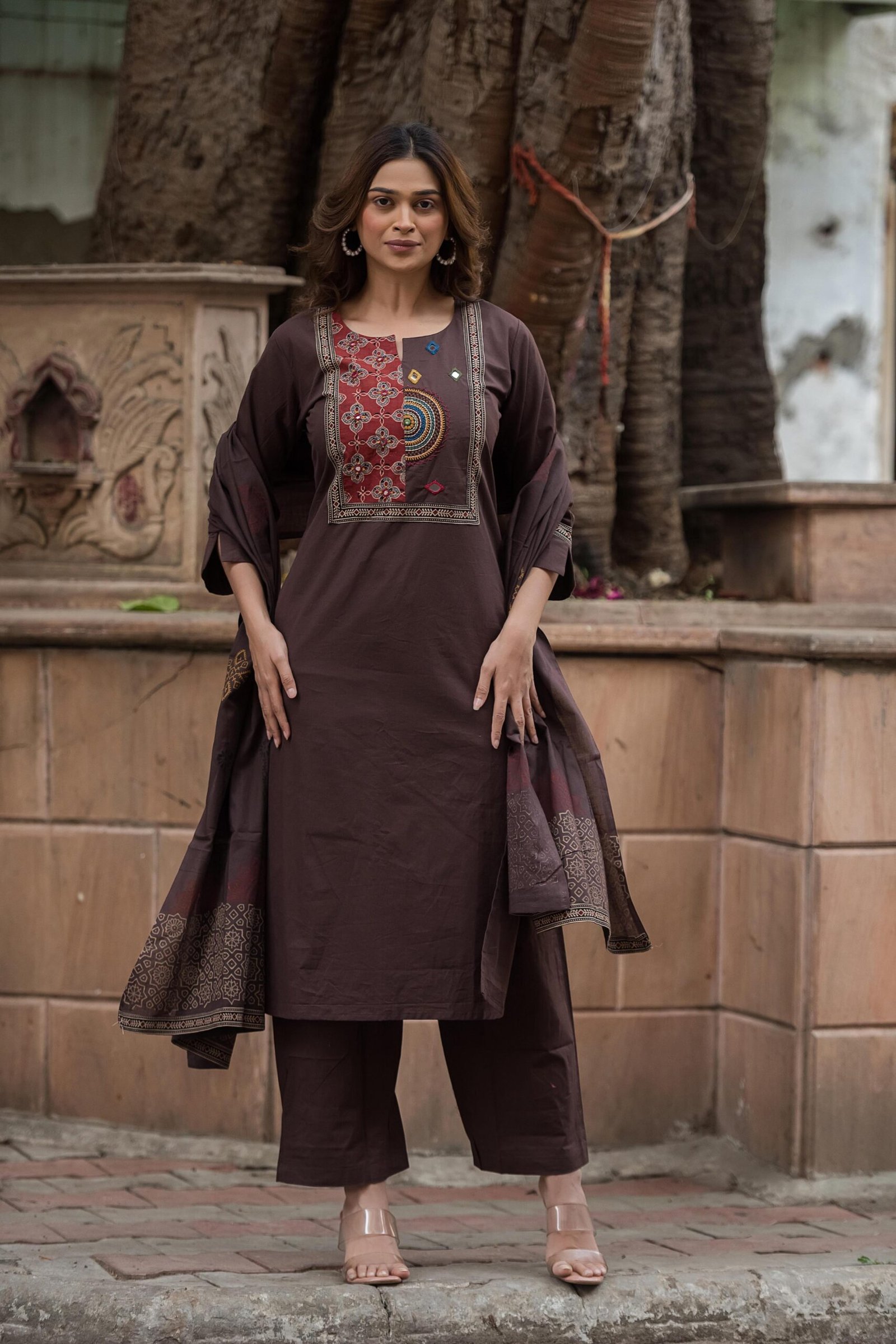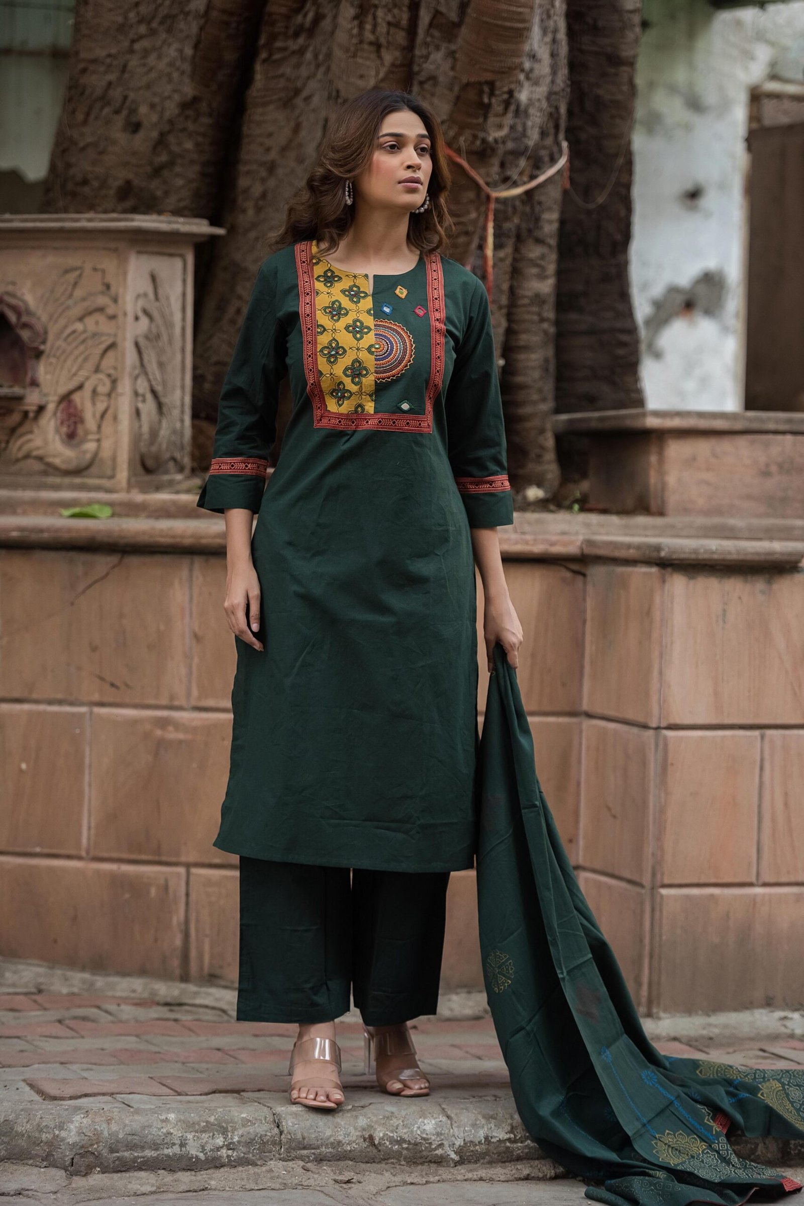 The DU-003 Gamthi 3PC Suit Set is a celebration of rich Indian heritage and handcrafted detailing. Crafted from breathable cotton fabric, this ensemble offers all-day comfort while showcasing traditional artistry.