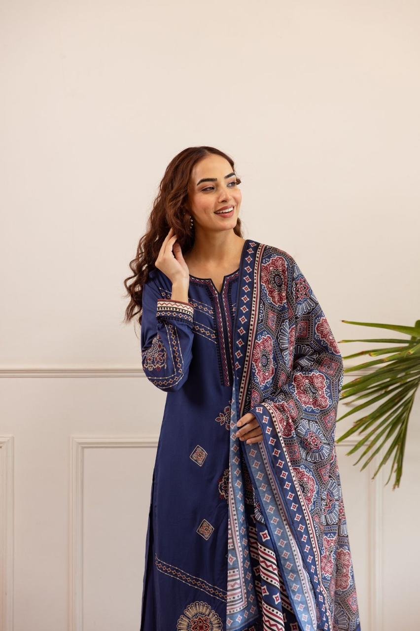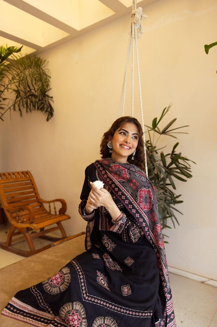 A striking digital printed dupatta enhances the set with eye-catching colors and patterns. Ideal for festive celebrations, parties, or family functions, this suit set promises elegance with effortless comfort.