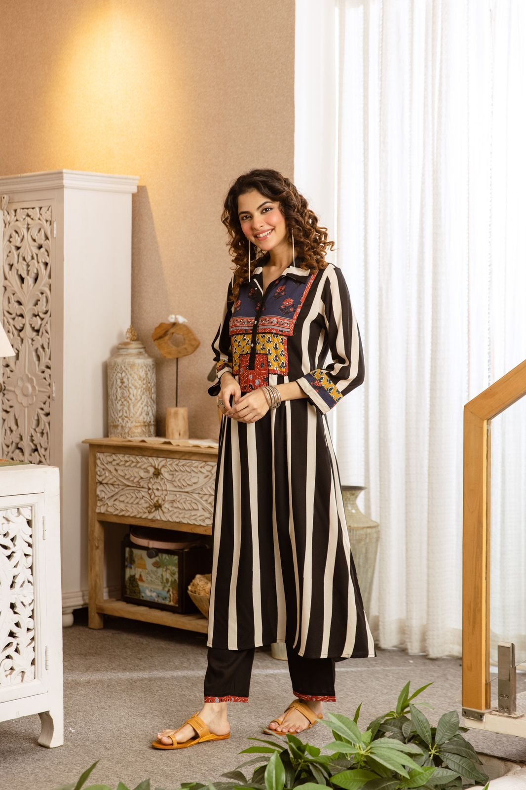 The A-line kurta creates a flattering silhouette, while the handwork on the yoke adds a touch of elegance. The addition of double pockets enhances functionality, making it ideal for daily wear, office wear, and casual outings.