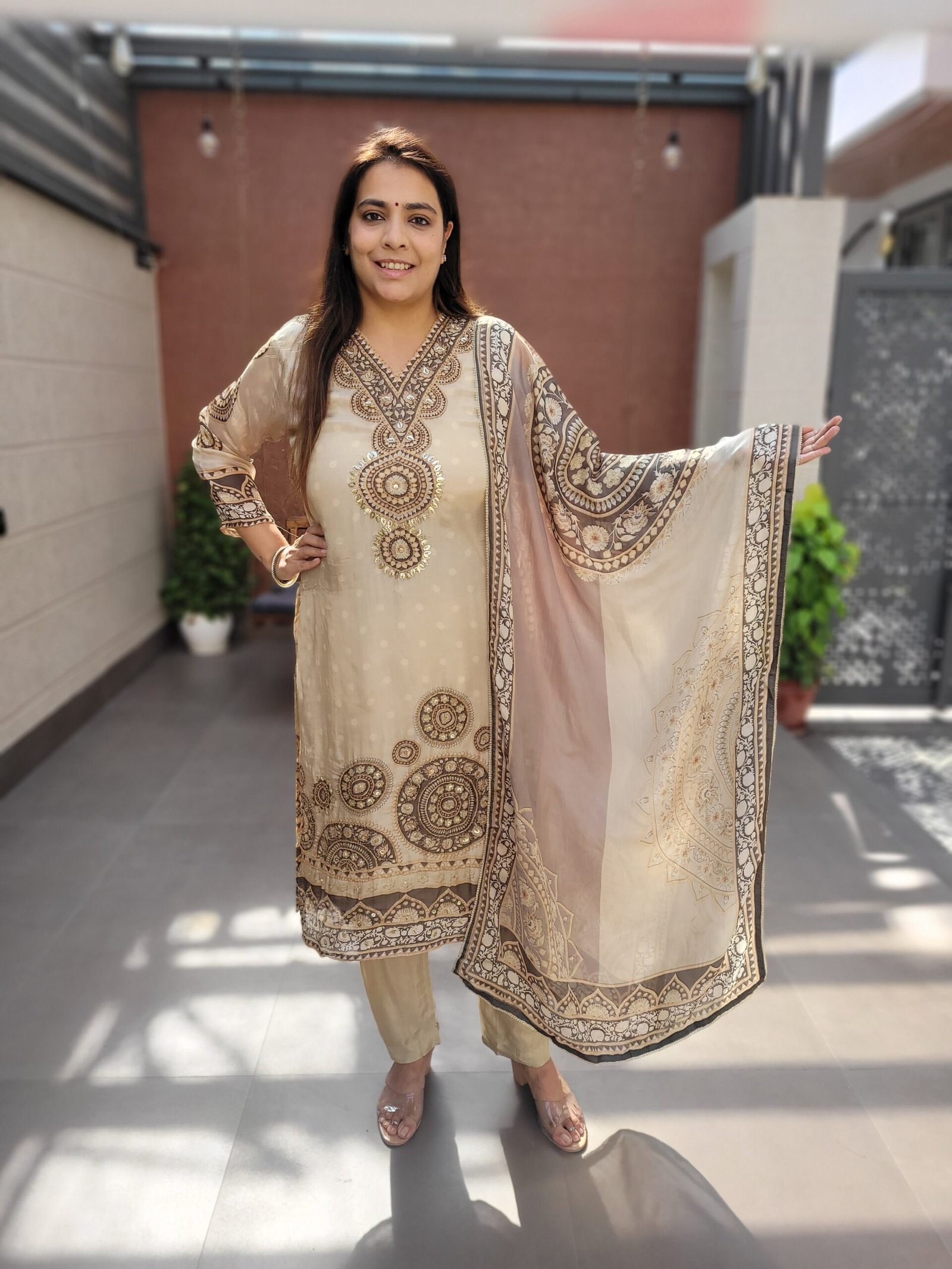 Perfect for weddings, receptions, and grand festive occasions, this partywear suit set exudes timeless grace and modern sophistication.