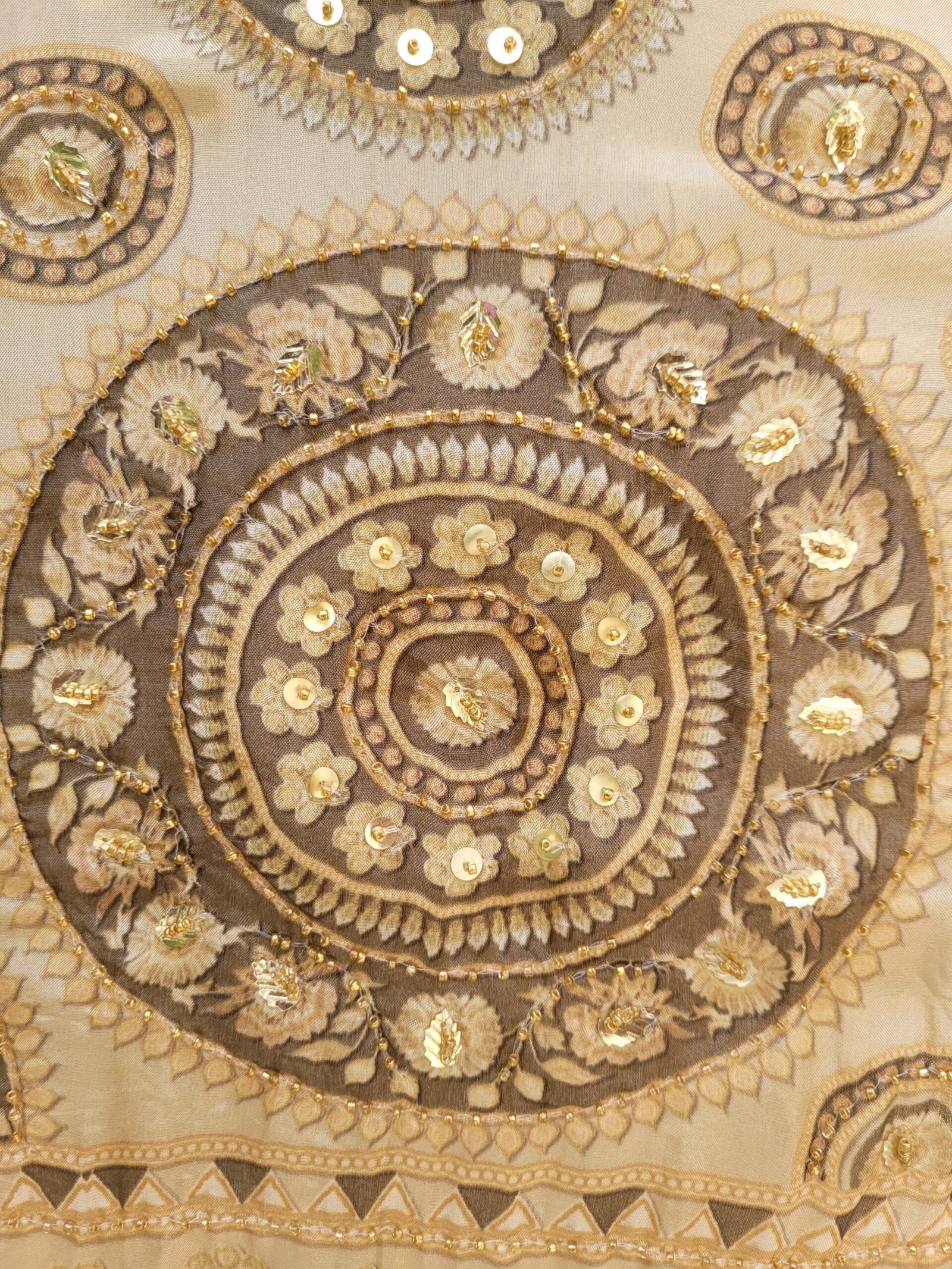 Care Instructions: Dry clean only to preserve fabric texture and heavy handwork detailing.