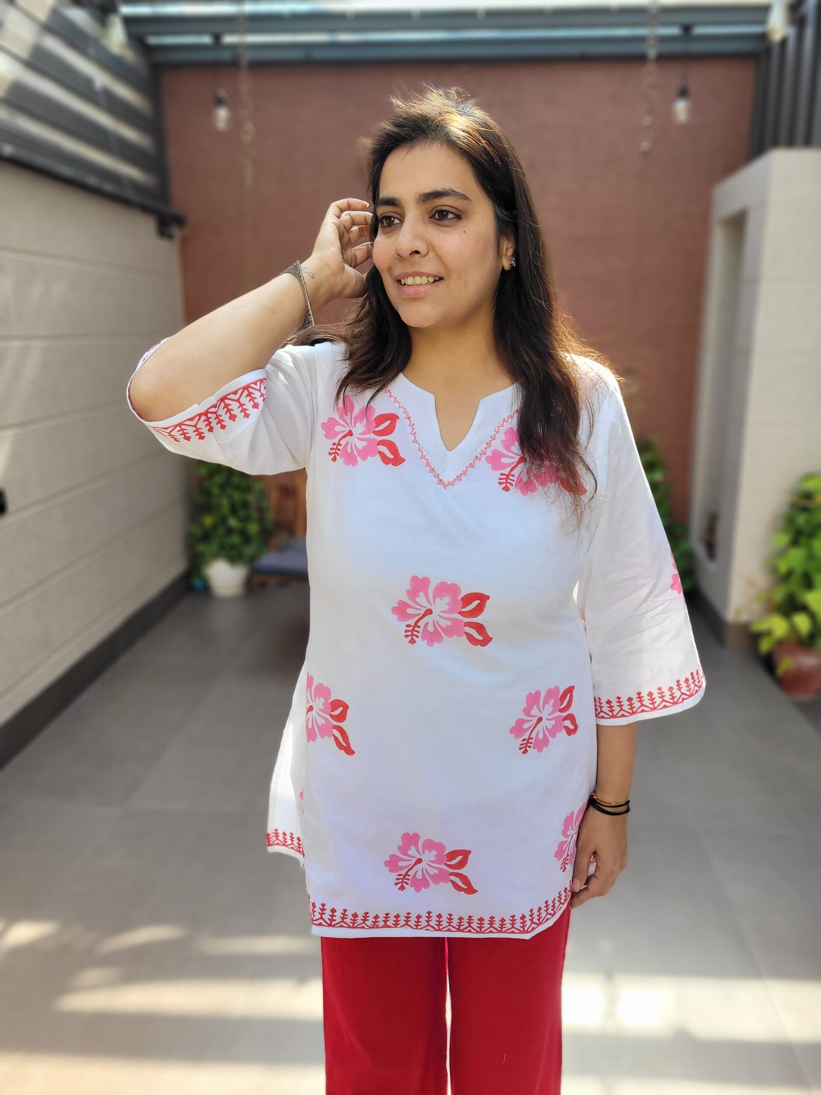 The TU-061 Handblock Tunic blends traditional craftsmanship with everyday comfort. Crafted from breathable cotton fabric, this tunic features authentic handblock printing that adds a timeless ethnic charm.