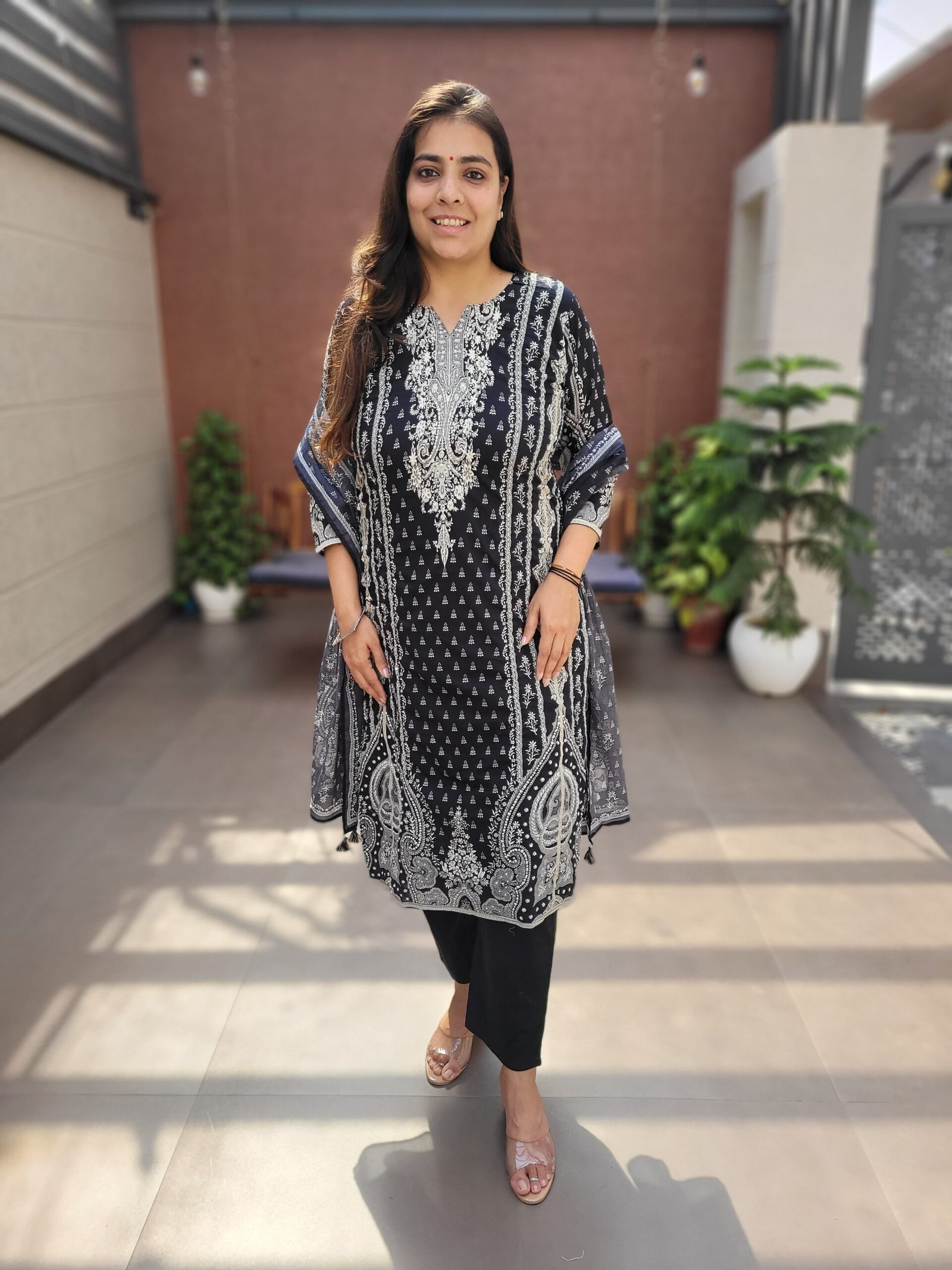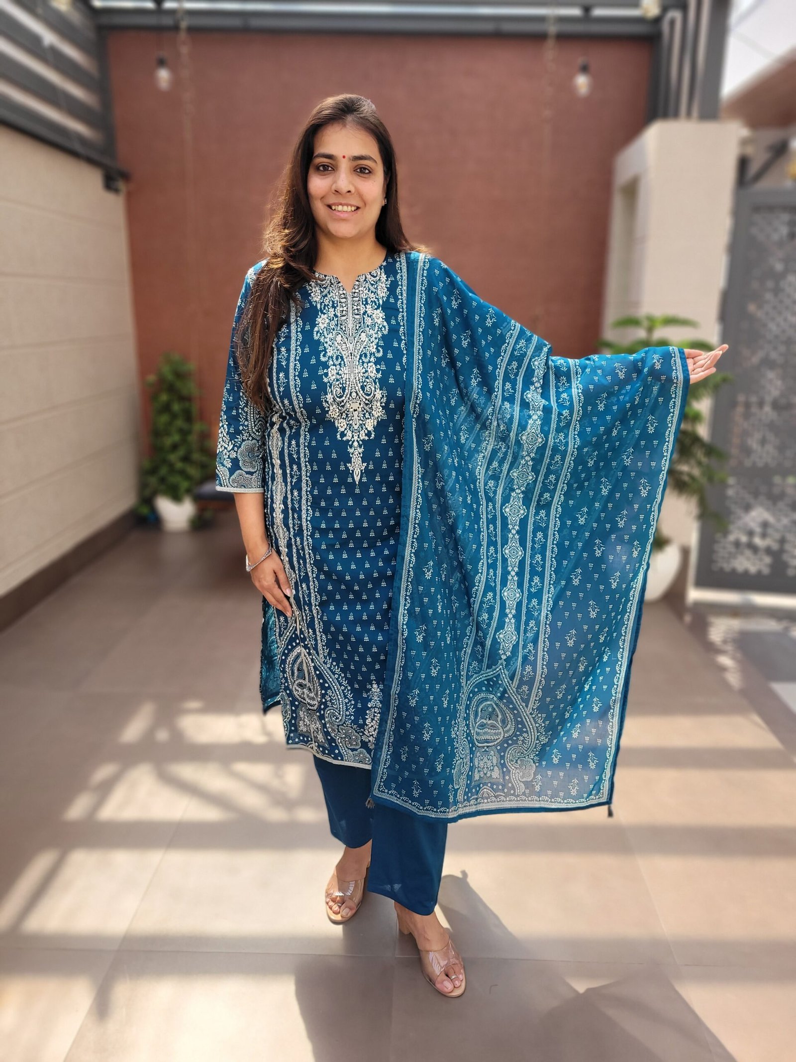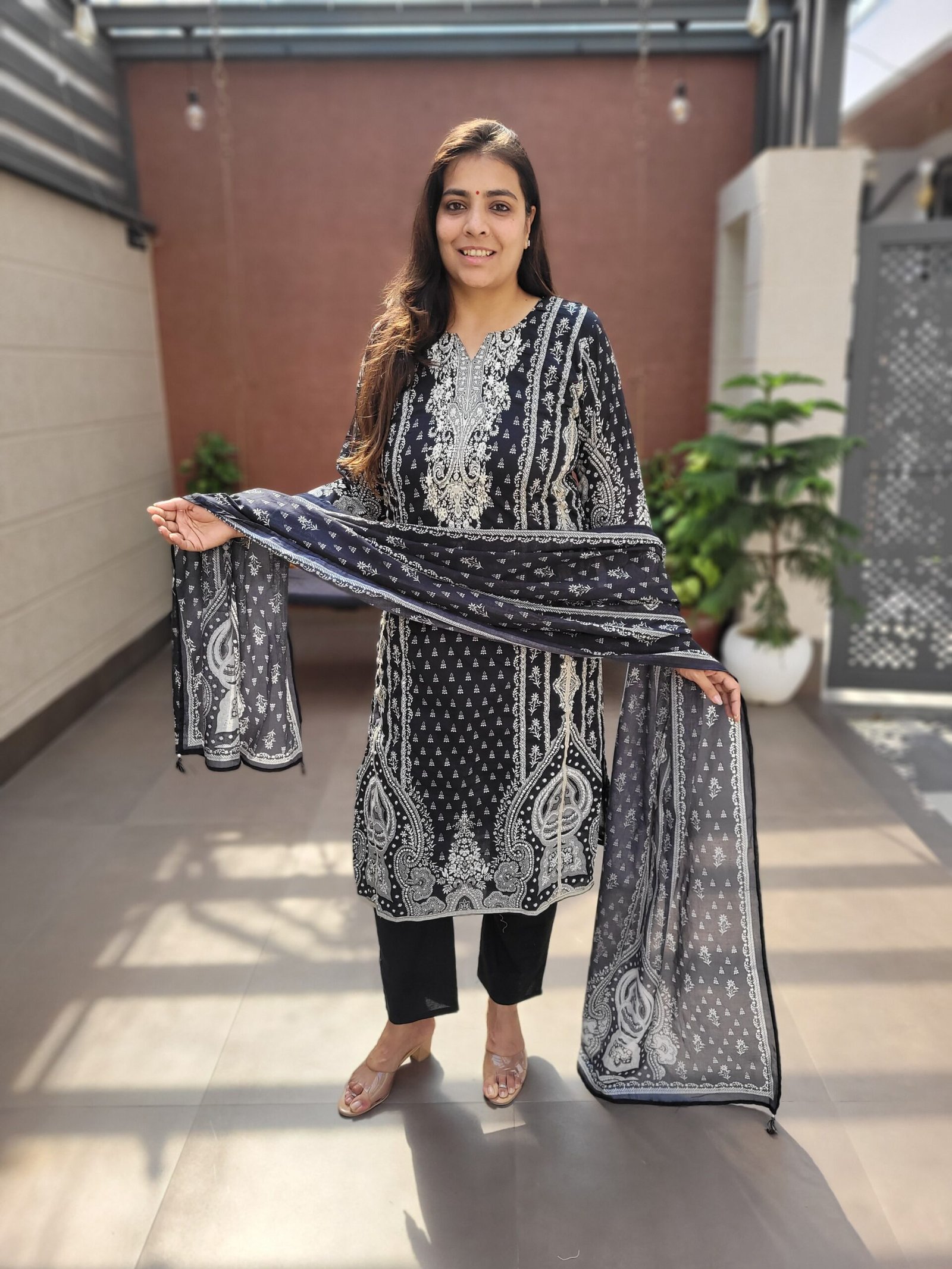 The DU-687 Cotton 3PC Set showcases timeless craftsmanship with heavy Kantha work on the kurta panel. Made from soft breathable cotton, this ensemble offers both comfort and traditional elegance.