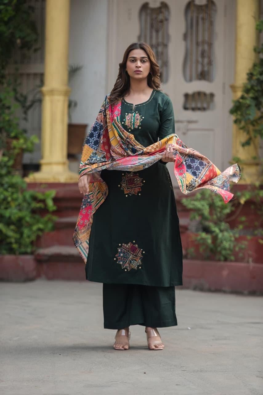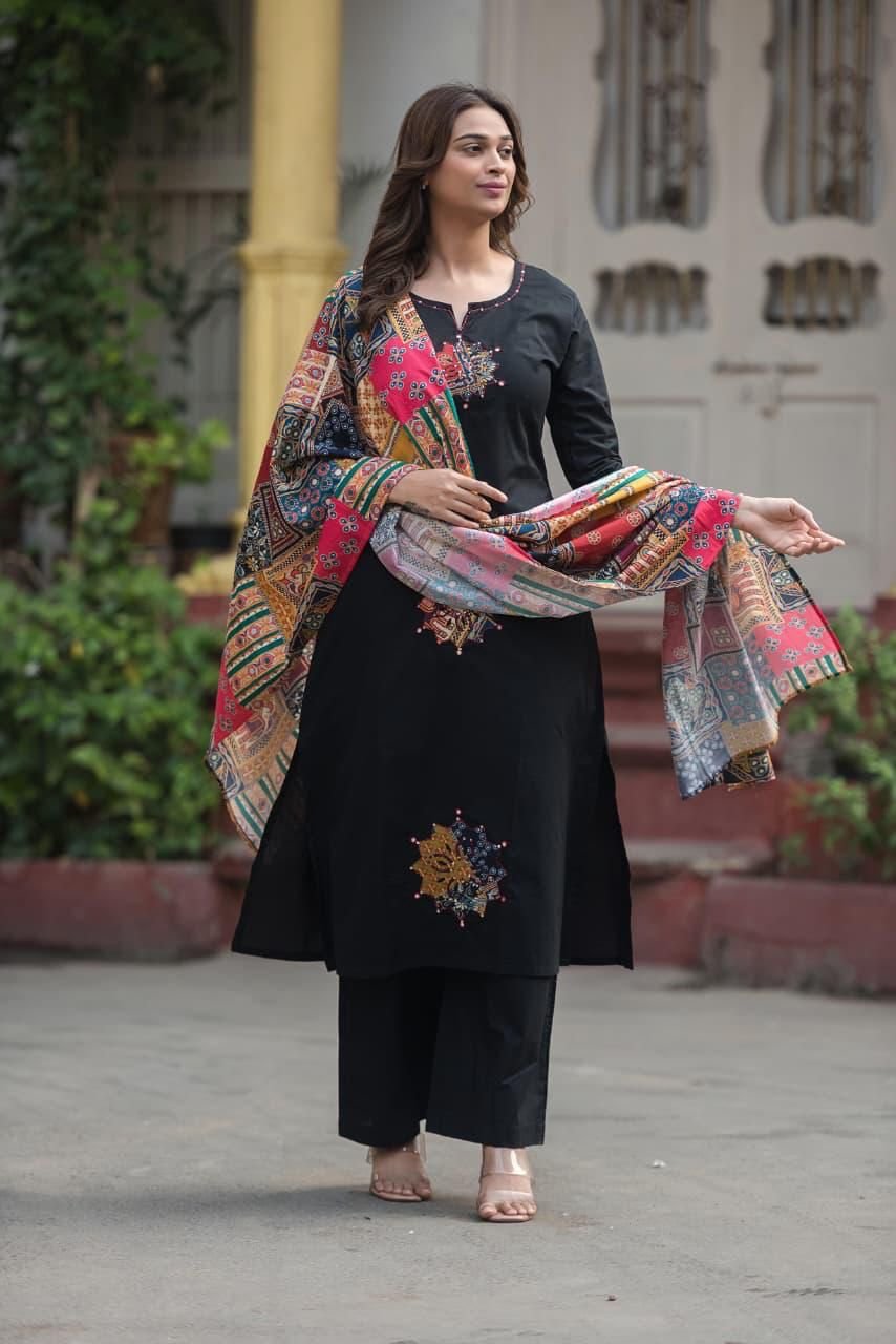 Kalamkari Cotton 3PC Set with Appliqué & Handwork
