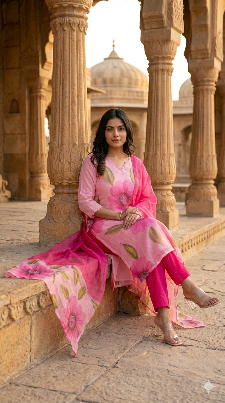 Style it with minimal jewelry and classic juttis for a daytime look, or dress it up with statement earrings and heels for evening wear. This Kota Doriya set is your go-to choice for effortless elegance with a touch of tradition.