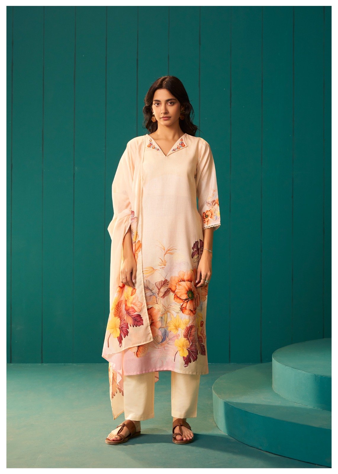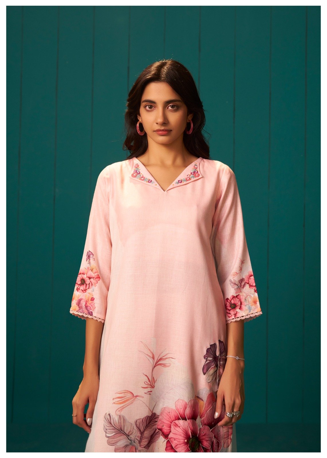 The kurta features delicate handwork detailing and a stylish collar neckline, giving it a modern and sophisticated appearance. Paired with a digital printed dupatta, the ensemble becomes perfect for festive gatherings and elegant day events.