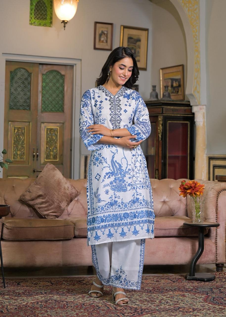 The kurta features an embroidered yoke, adding subtle detailing. The cotton lining ensures comfort, making it ideal for daily wear and office styling.
