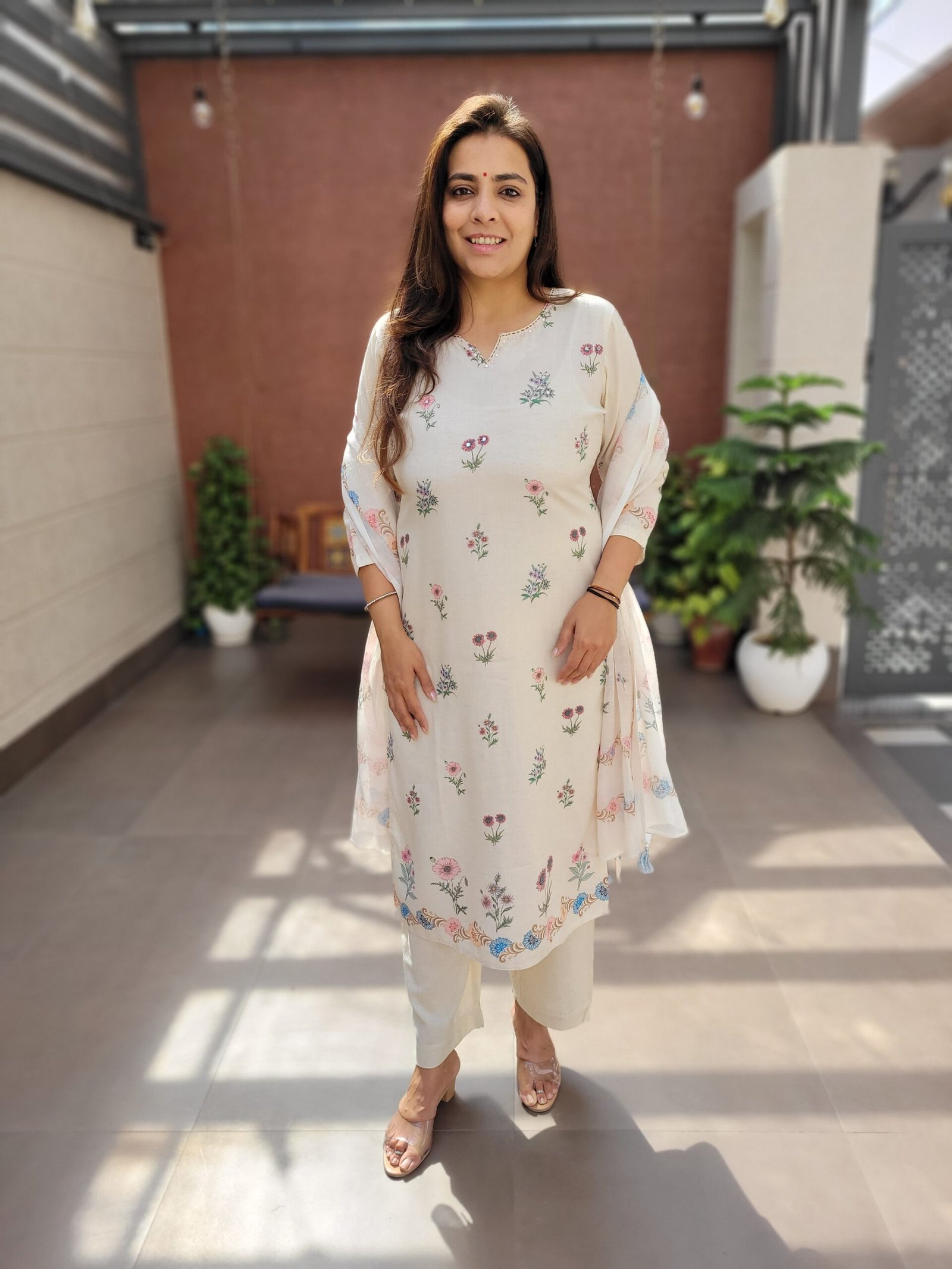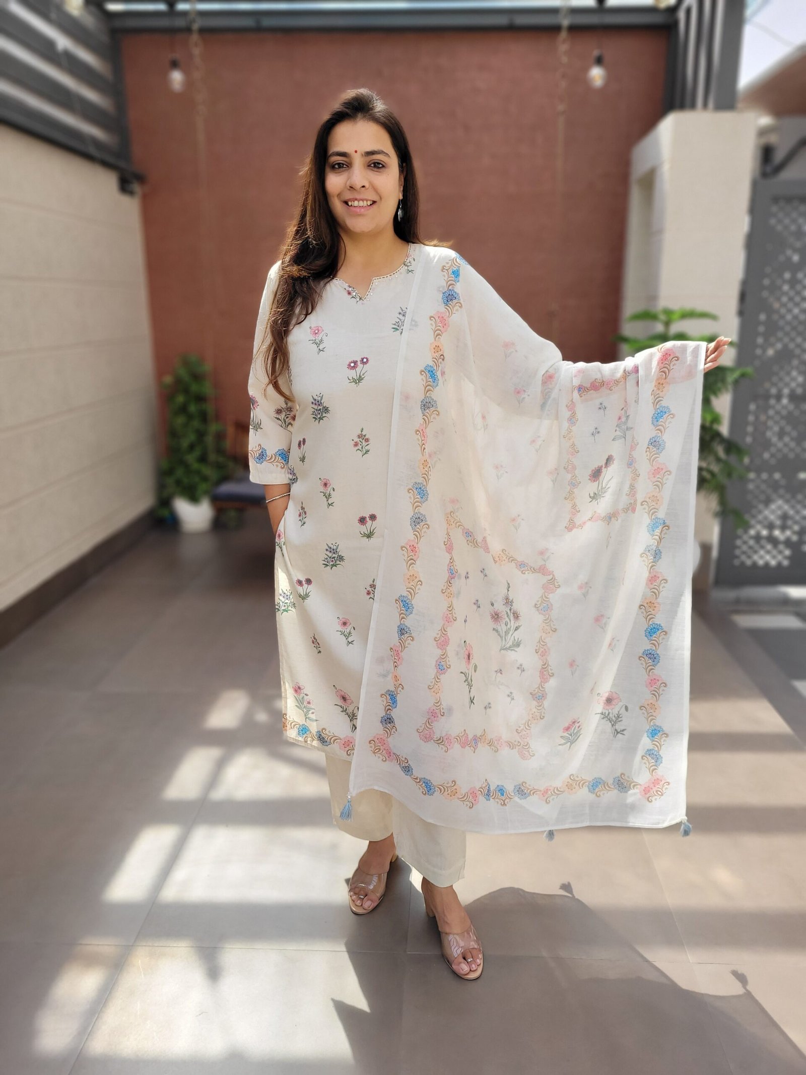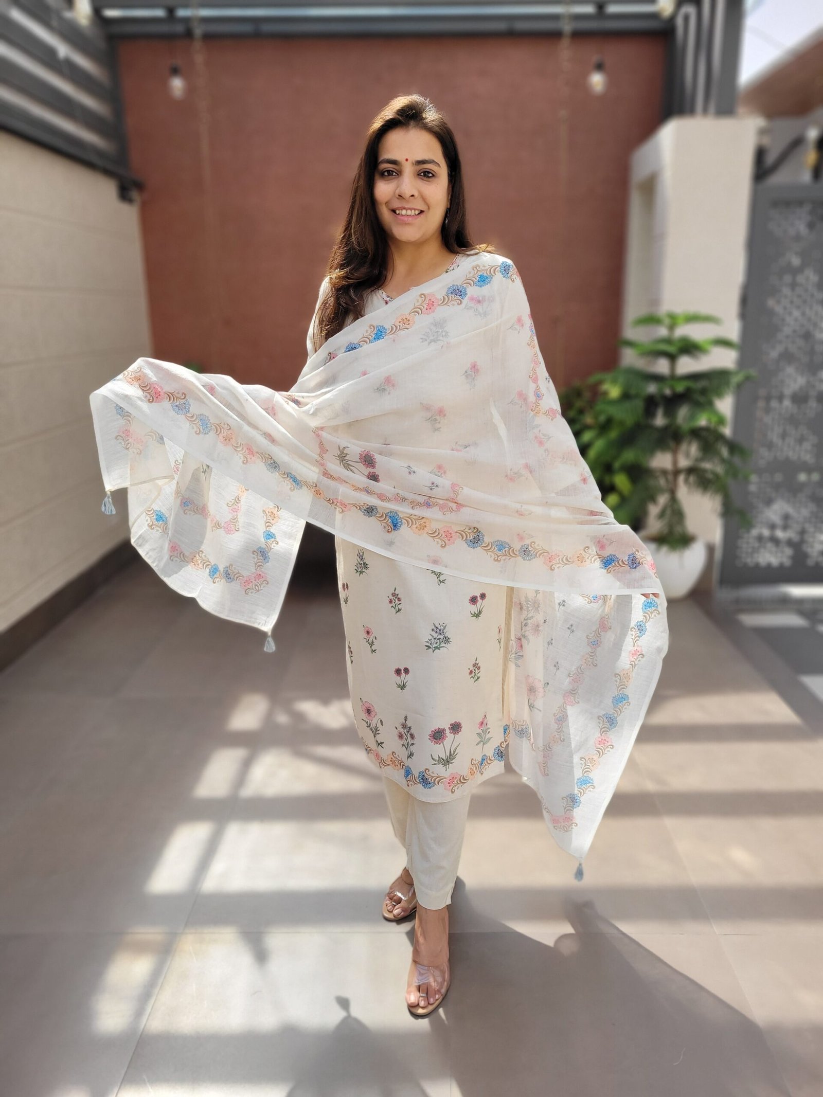 The kurta features delicate handwork on the yoke, adding subtle sophistication, while the digital print dupatta enhances the ensemble with modern charm. Ideal for office wear, daytime outings, casual gatherings, and effortless ethnic styling.