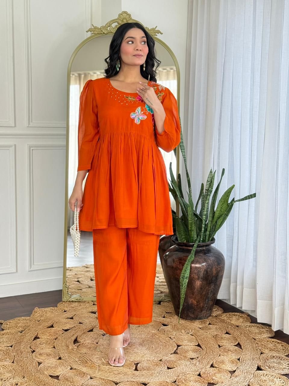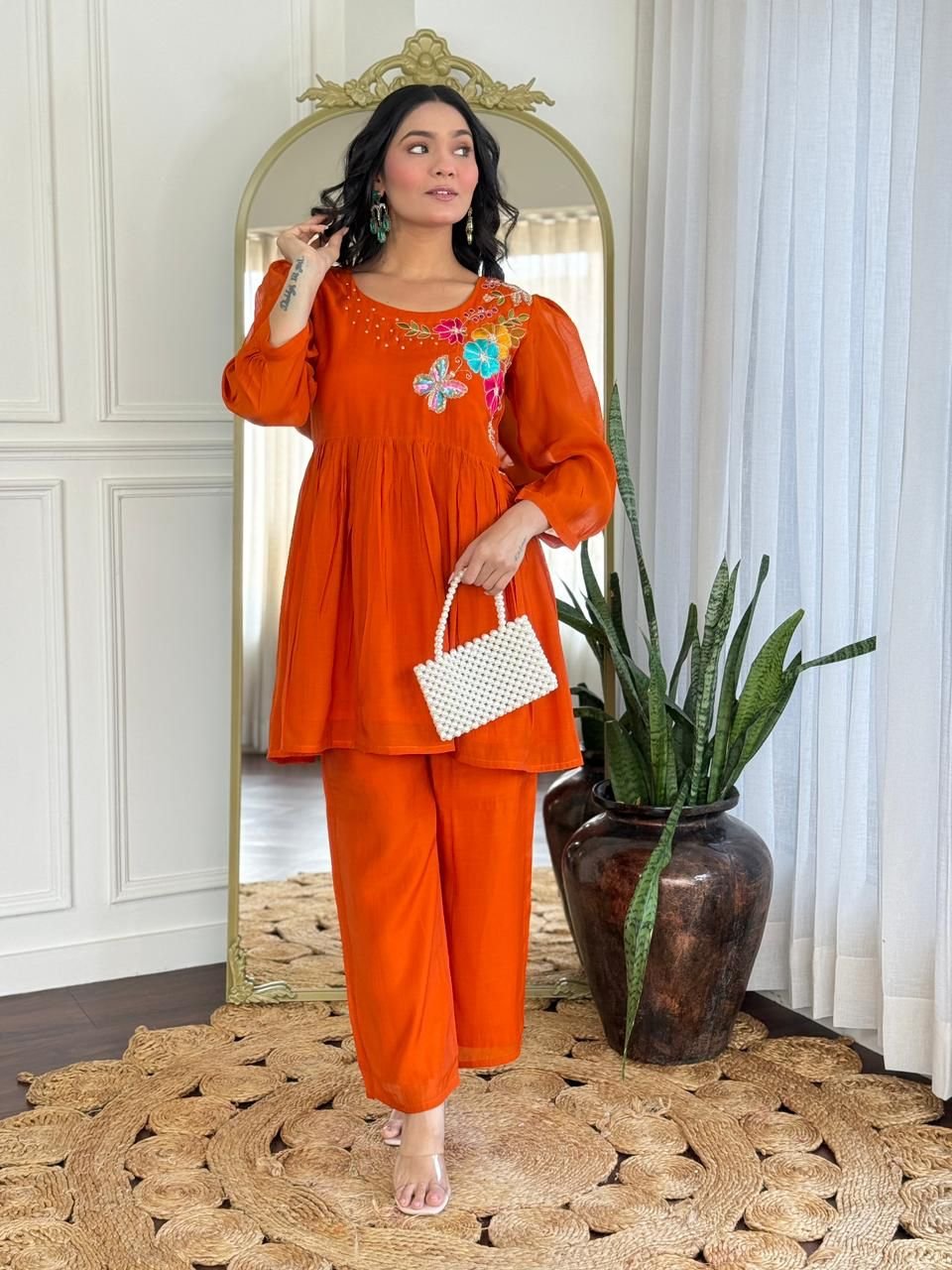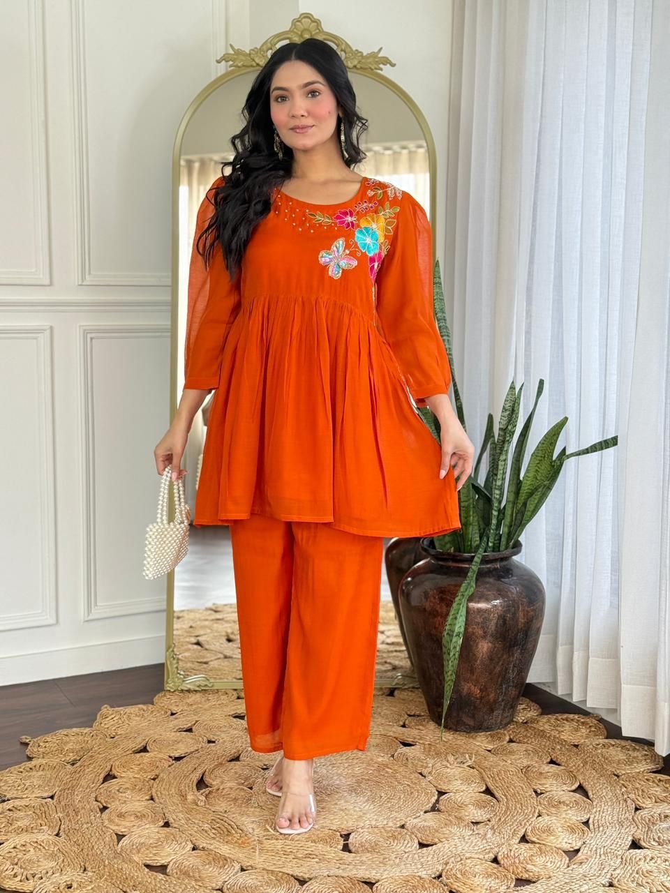 The CS-139 Mal Chanderi Co-Ord Set blends traditional charm with modern comfort. Crafted from fine mal chanderi fabric, this set offers a soft sheen and graceful finish.